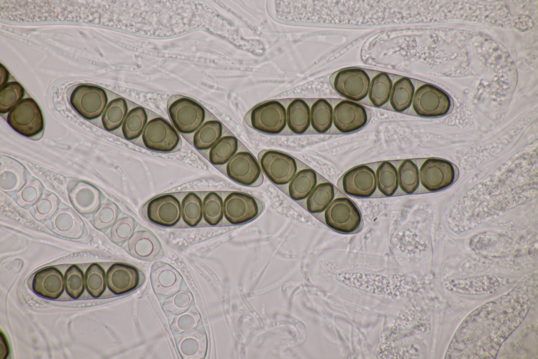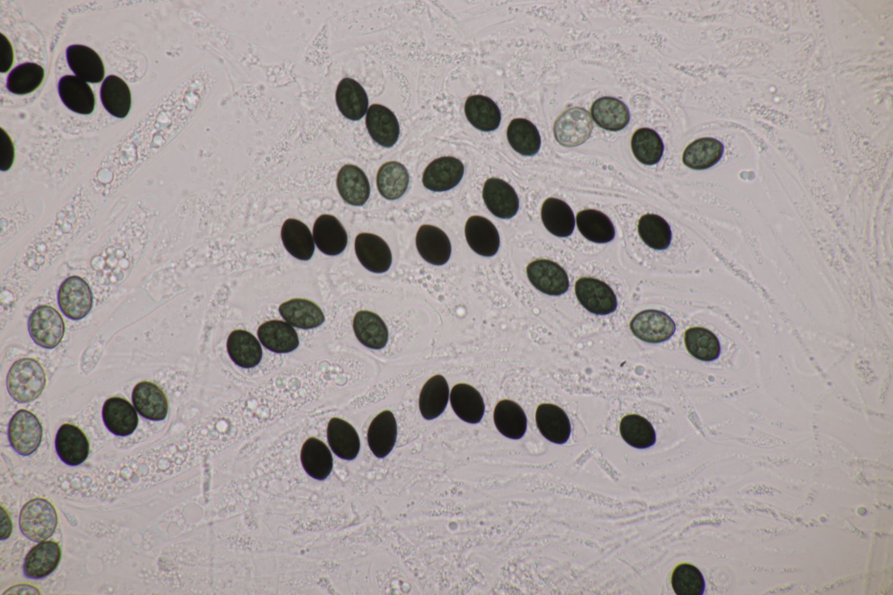 3. Auf Pferd: Eine Sporormiella, bei der die Sporen 39.5-43.5 µm x 7.5-8 µm messen. Hier tendiere ich zu S. lageniformis