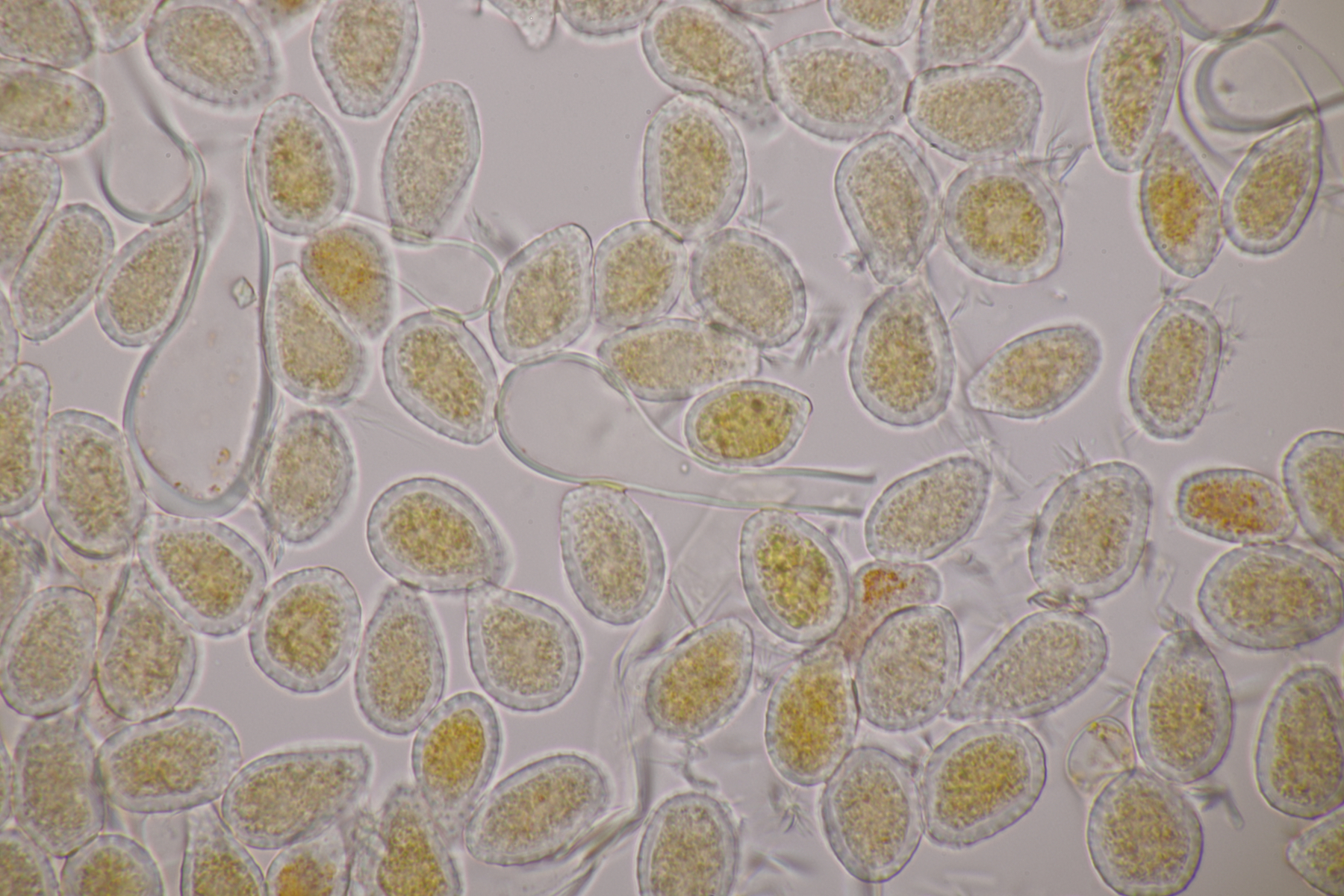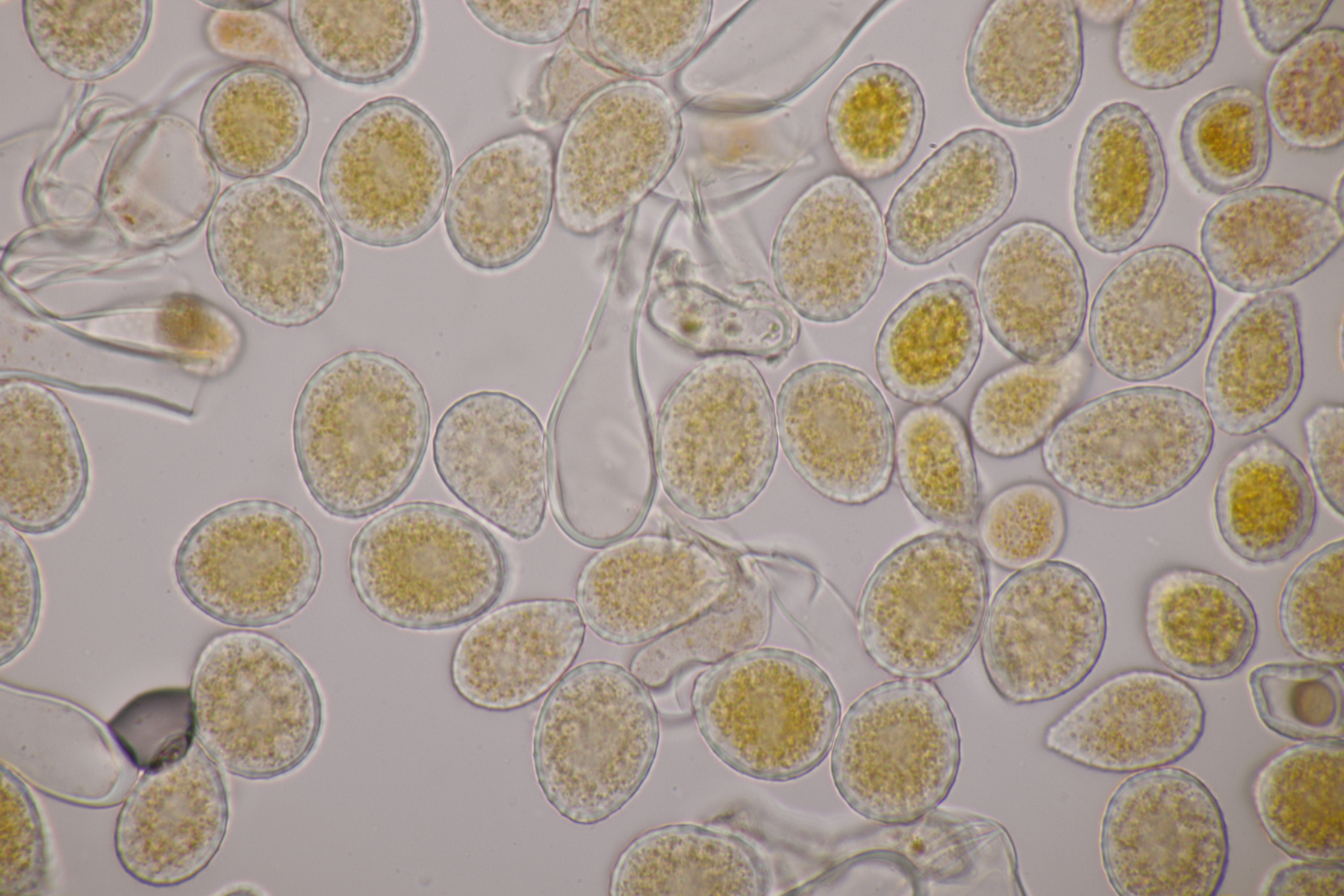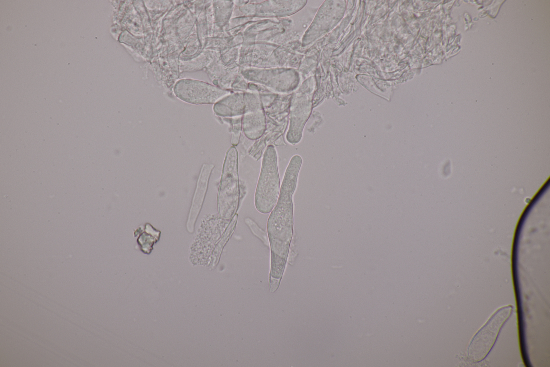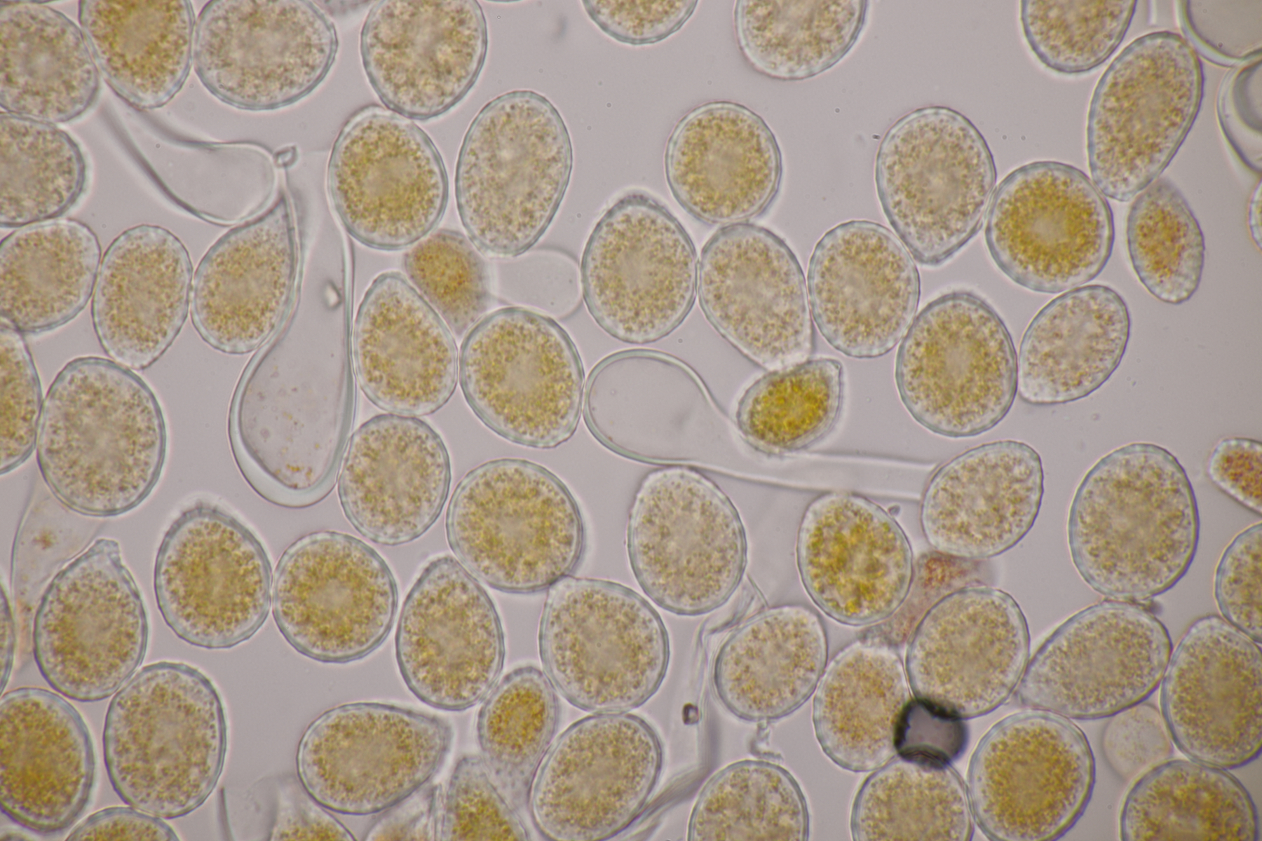 Ansonsten was das Mikroskopieren dieser Glibberpilze angeht: Man muß nur wenig genug Pilzmaterial nehmen, dann läßt sich das gut quetschen und man bekommt schöne Präparate.