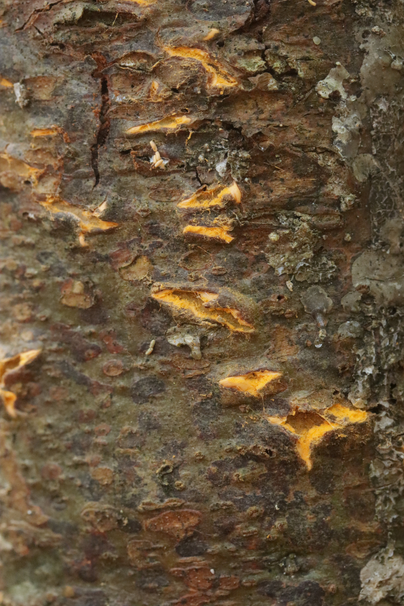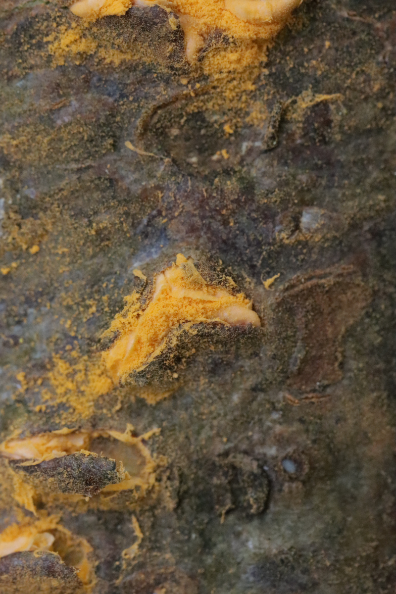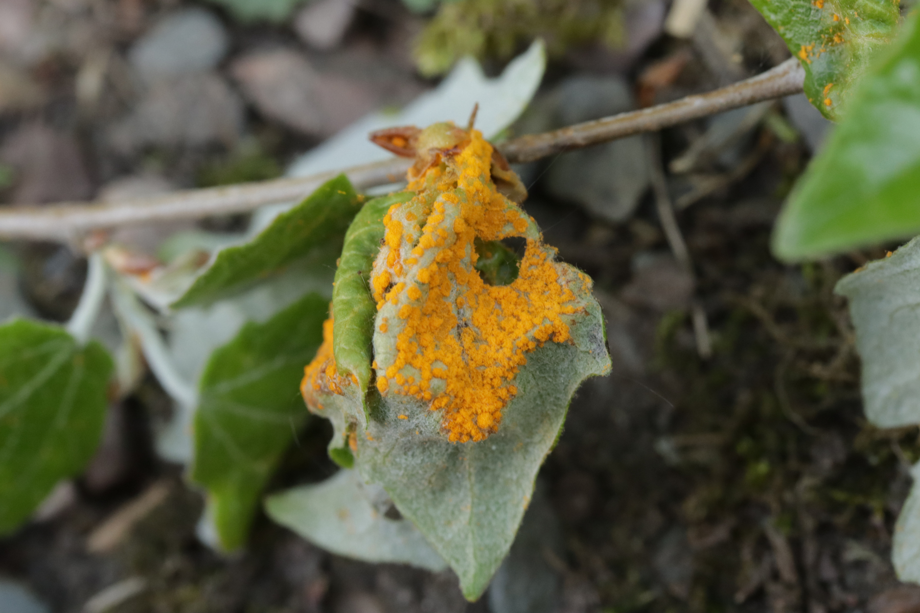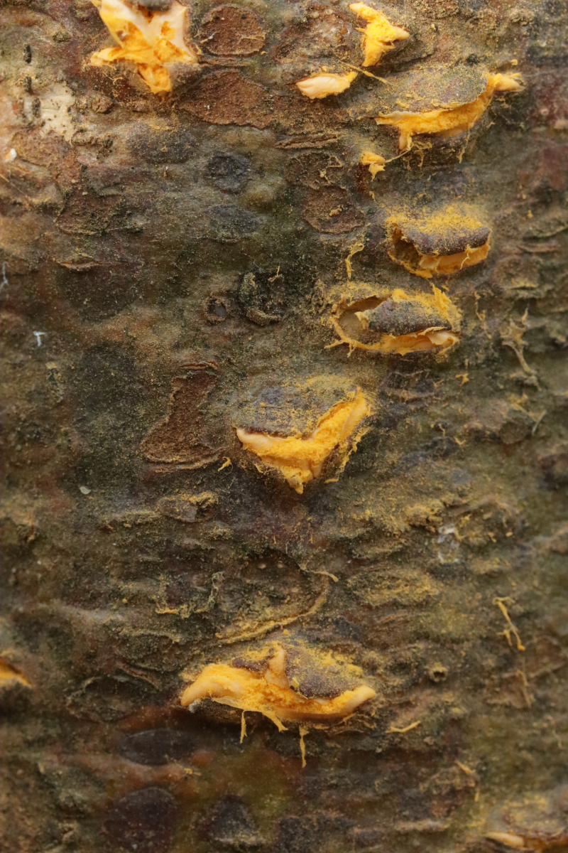 7. Melampsora aecidioides ex Populus sp. An und für sich sind Roste auf Leuce-Pappeln ja sehr schwer zu bestimmen, dieser hier ist nach Aussage von Pascal Frey aber sehr gut charakterisiert durch die großen Paraphysen und das frühe Auftreten an frischen Austrieben durch in den Knospen überwinternde Uredosporen.