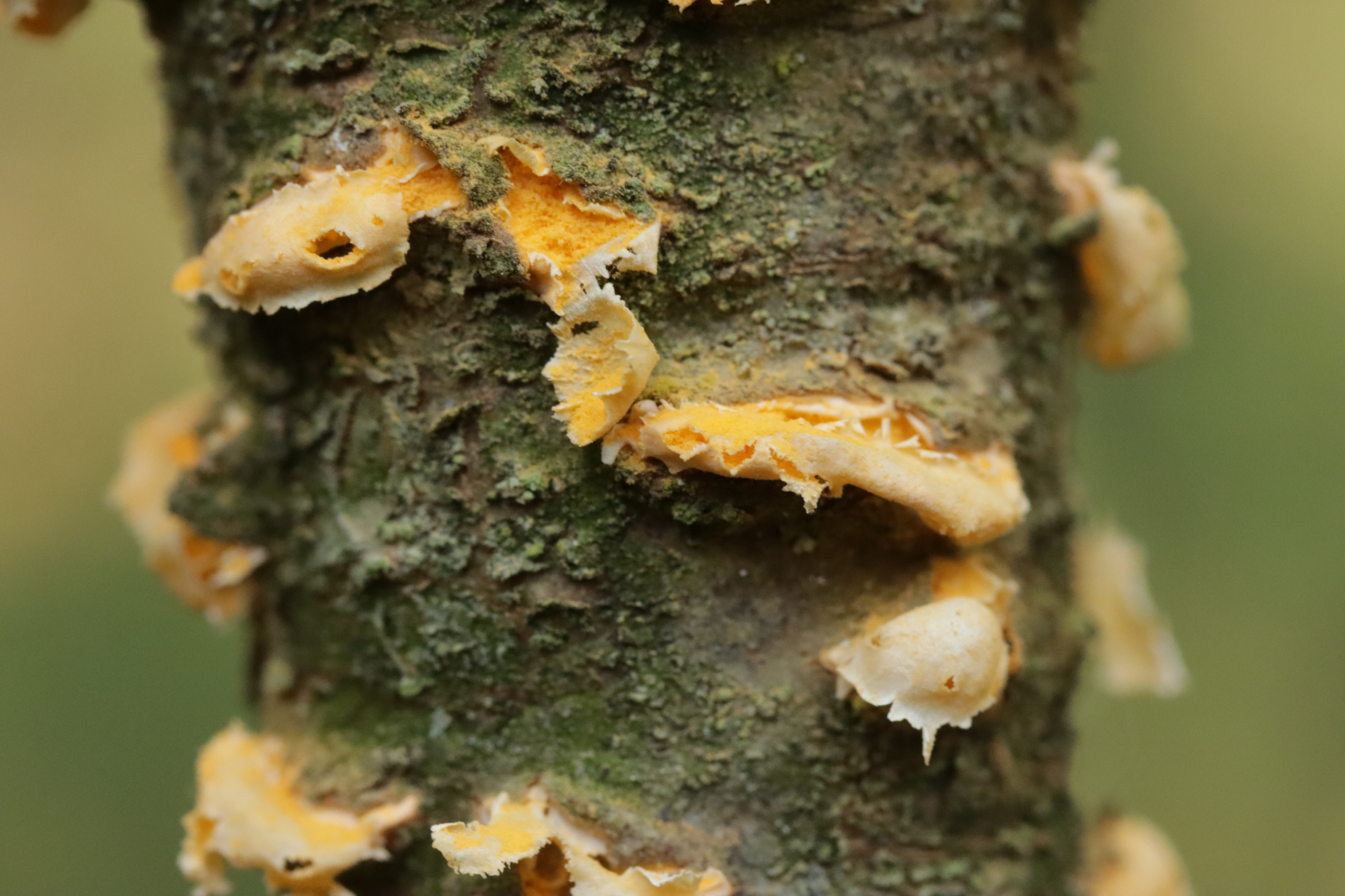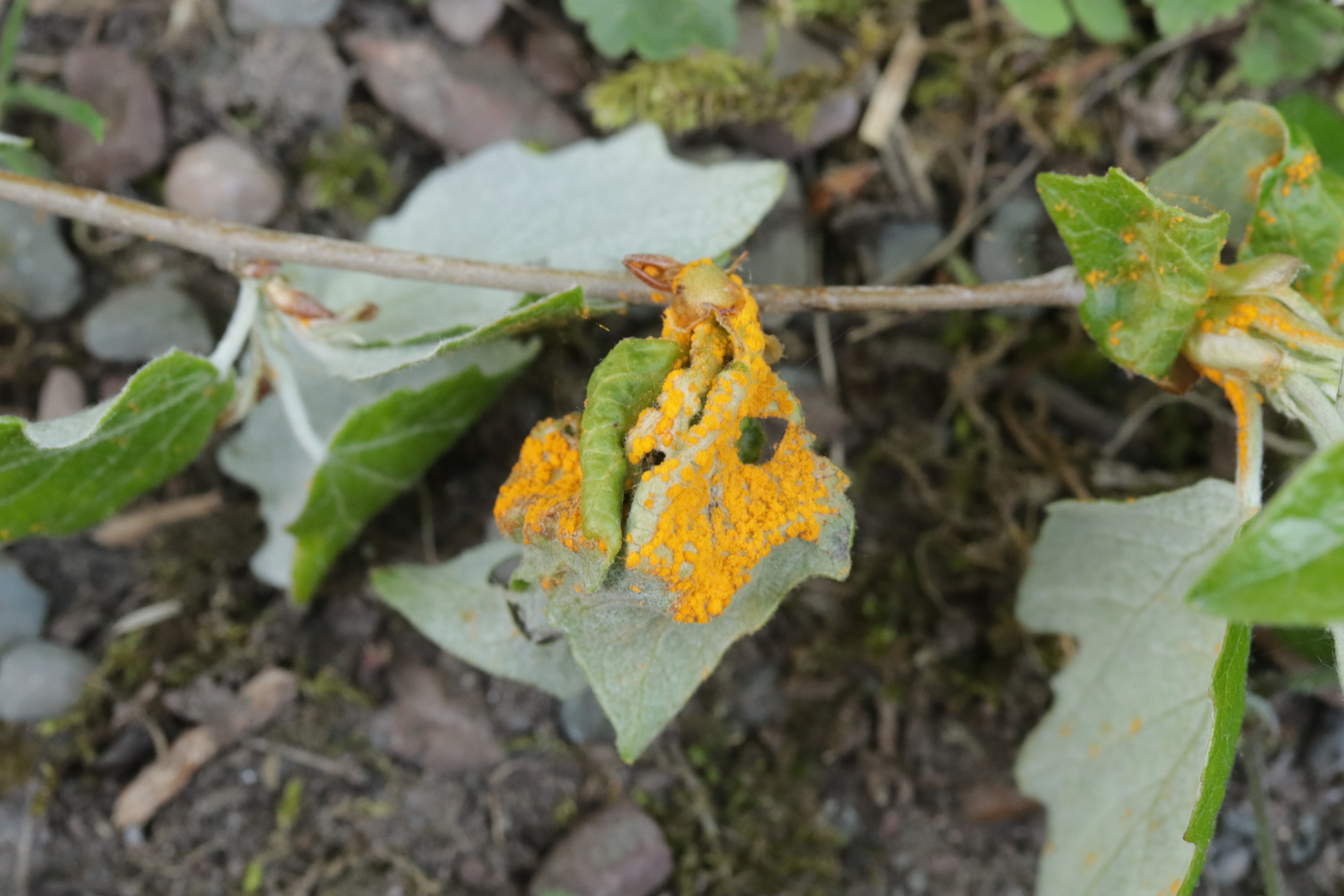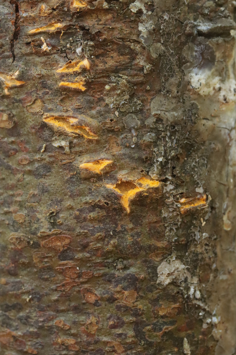 7. Melampsora aecidioides ex Populus sp. An und für sich sind Roste auf Leuce-Pappeln ja sehr schwer zu bestimmen, dieser hier ist nach Aussage von Pascal Frey aber sehr gut charakterisiert durch die großen Paraphysen und das frühe Auftreten an frischen Austrieben durch in den Knospen überwinternde Uredosporen.