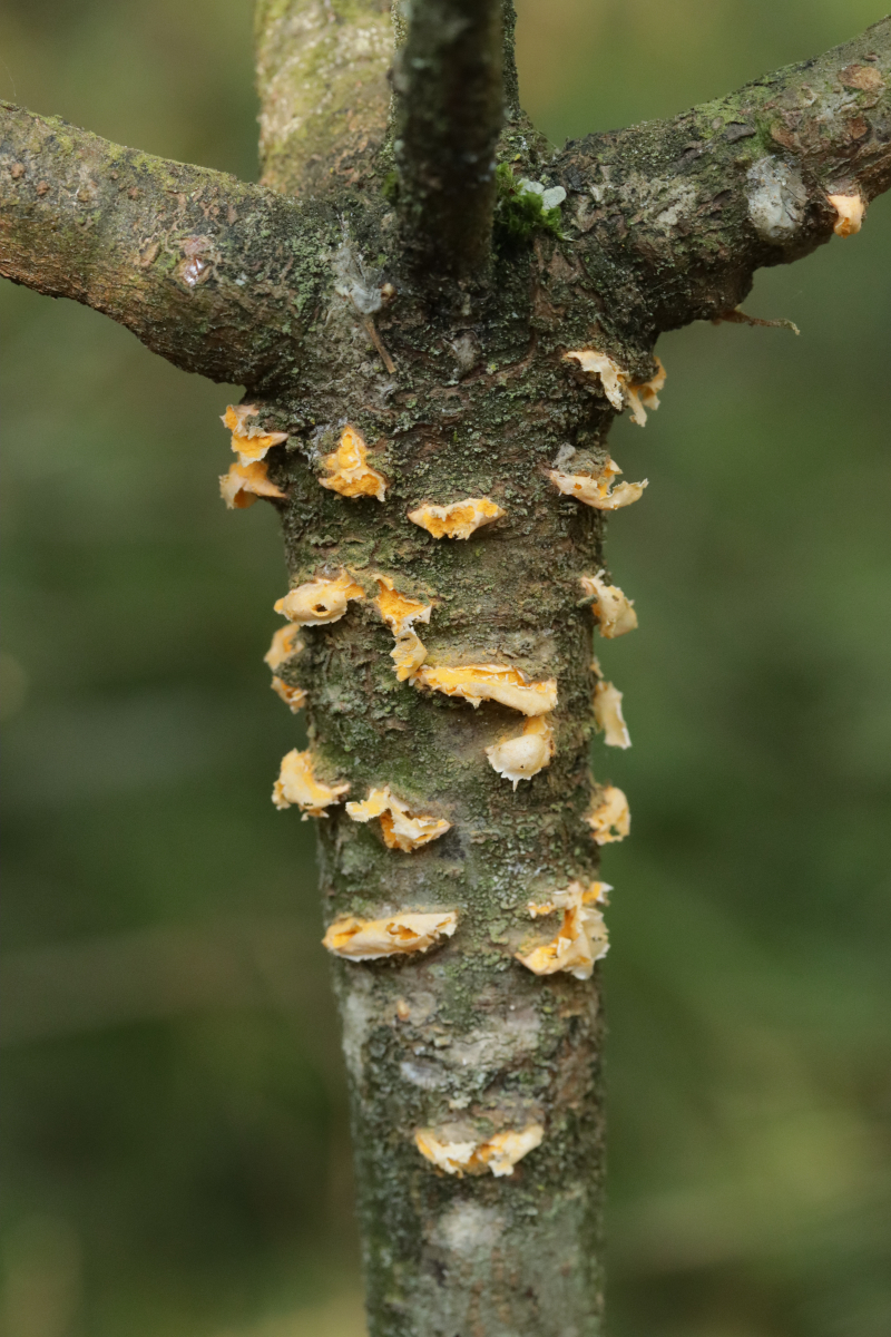 Das dürfte dann in der Tat Exidia saccharina sein. Es gibt bei Neuhoff noch eine Exidia umbrinella, die aber nicht so ausgebreitet und gehirnartig sein sollte.