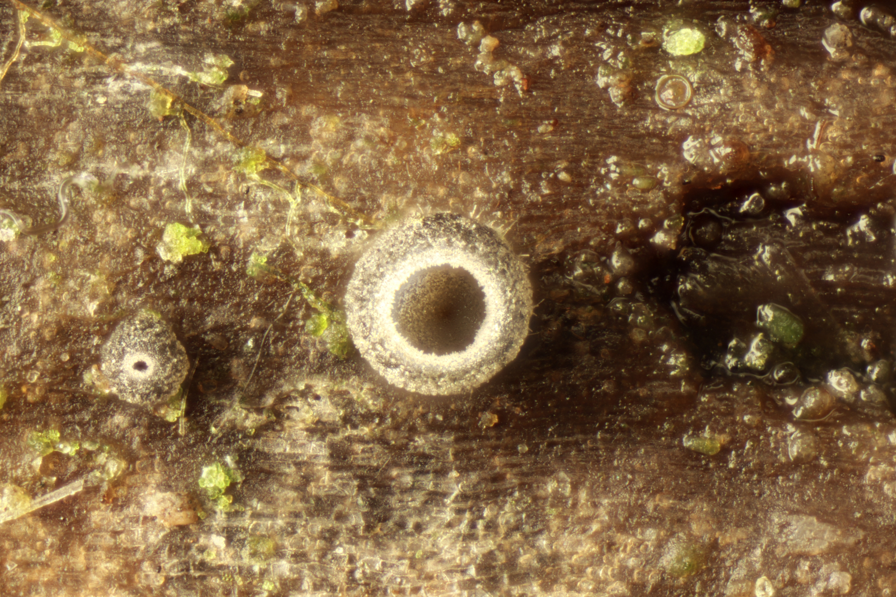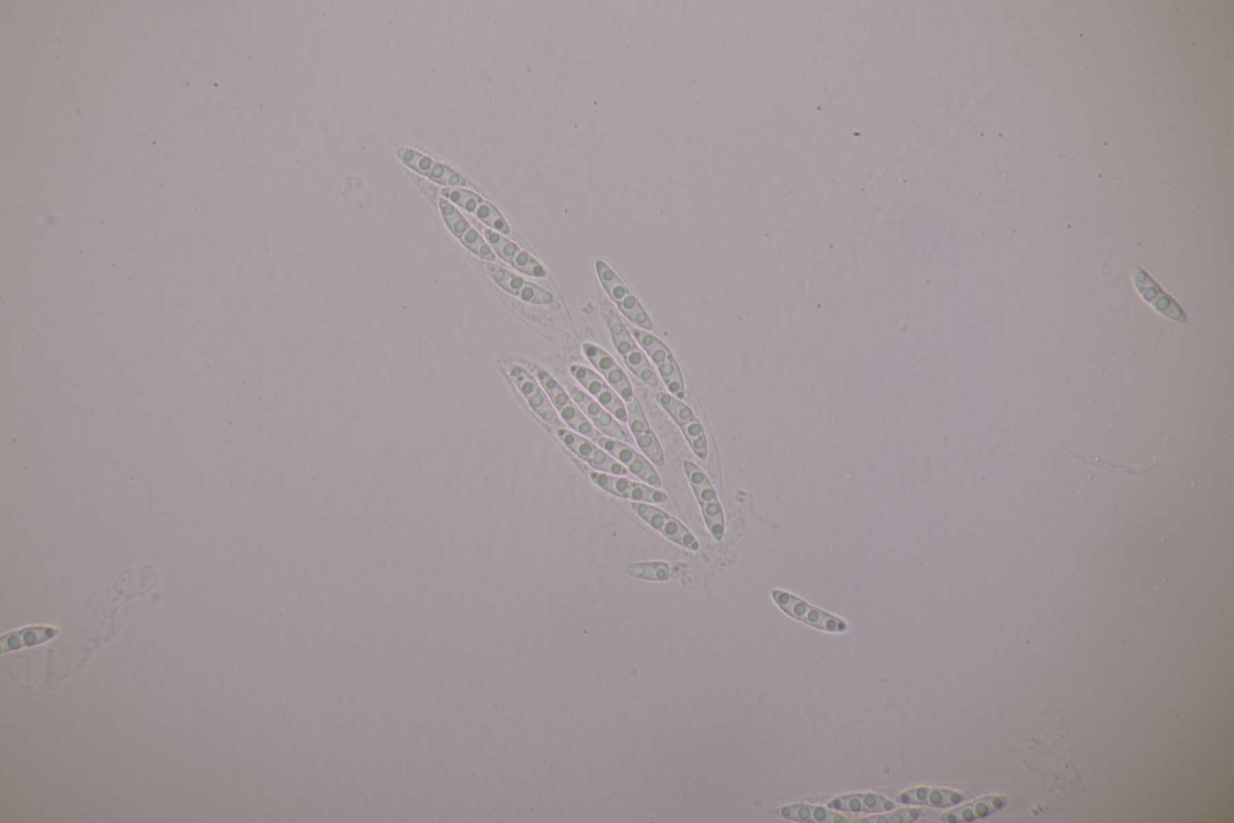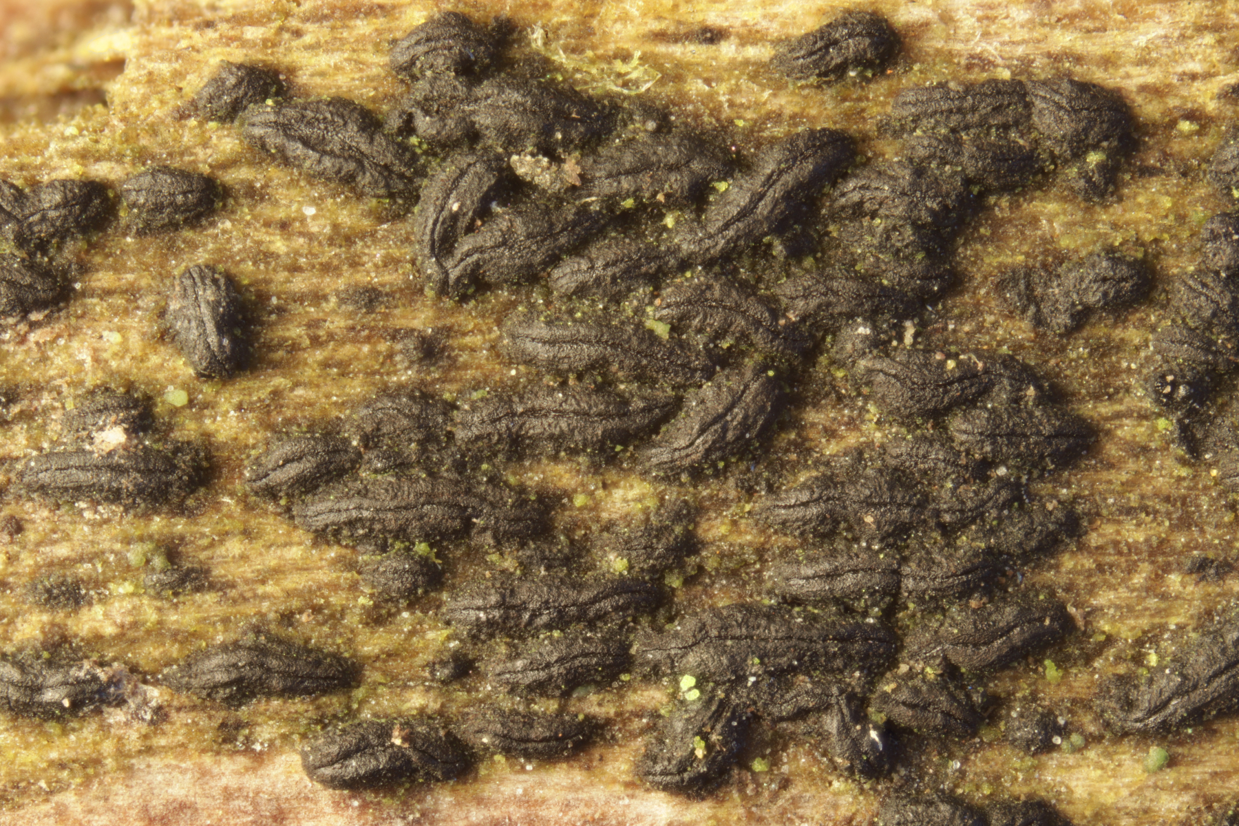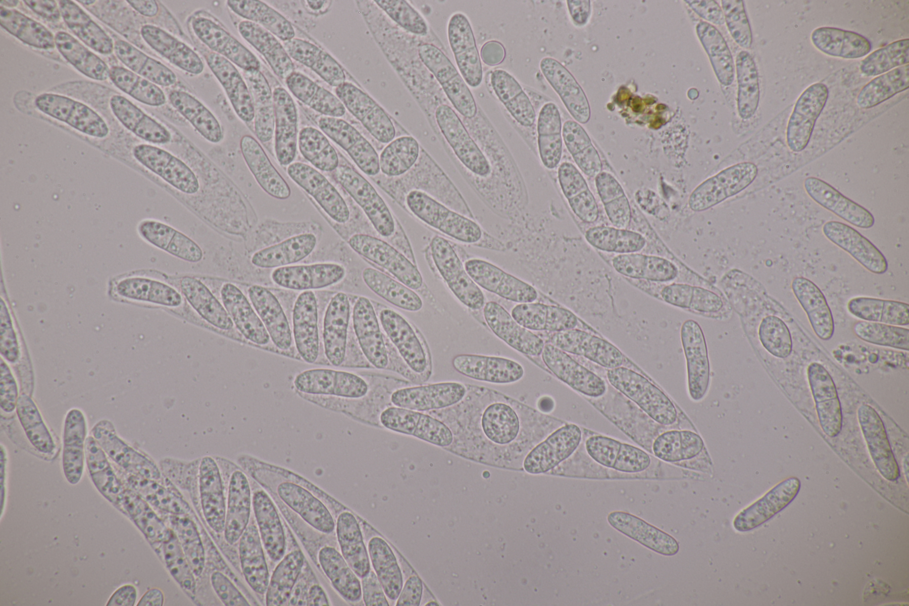 13. An Fraxinus. Mein erster Gedanke war Hysterographium fraxini. Da sollten die Sporen aber braun sein. Liegt das einfach daran, daß die Fruchtkörper noch arg unreif sind? EDIT: Nein, denn es handelt sich um Hysterobrevium smilacis