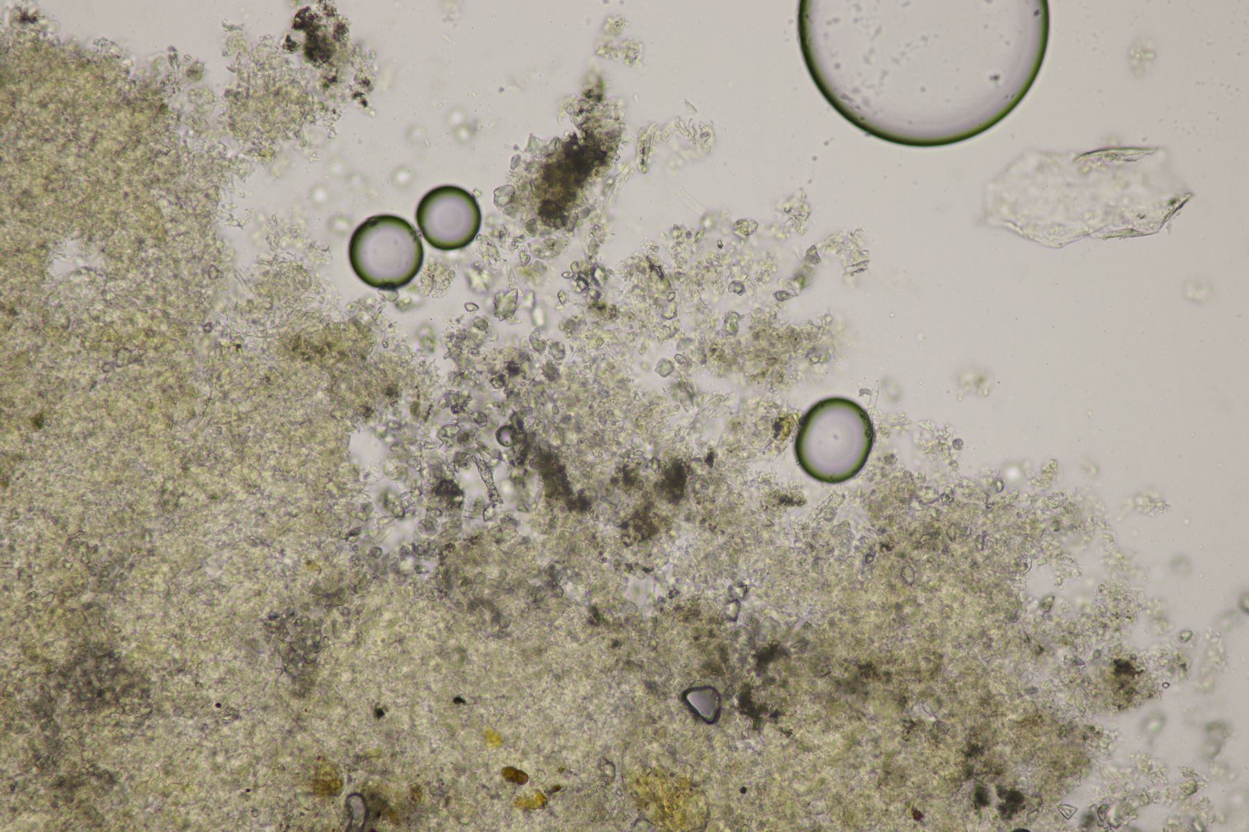 bist du dir sicher, daß die Sporen auf Bild 9 zu den Pilzen gehören? Für mich sehen die stark nach Ascobolussporen aus.