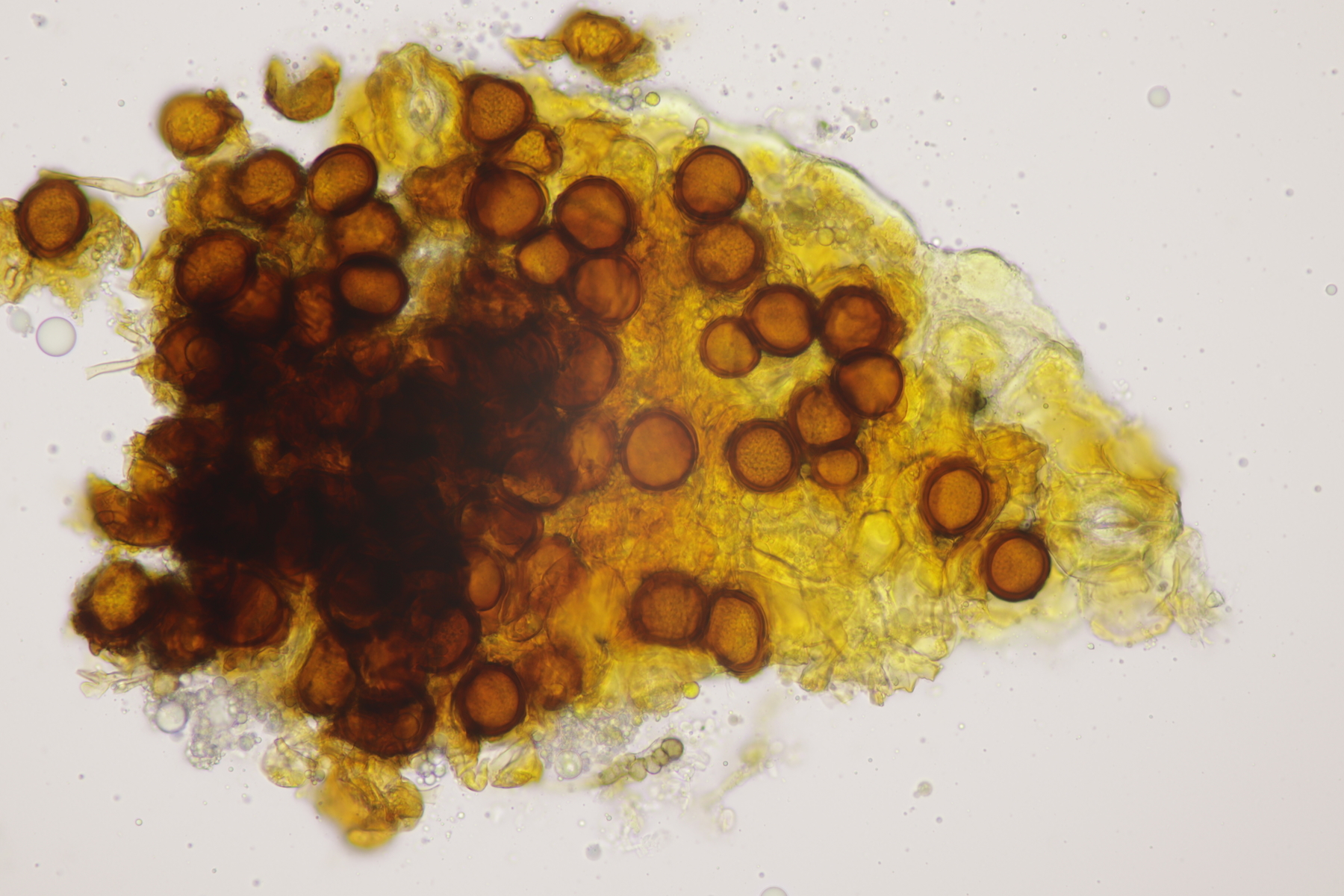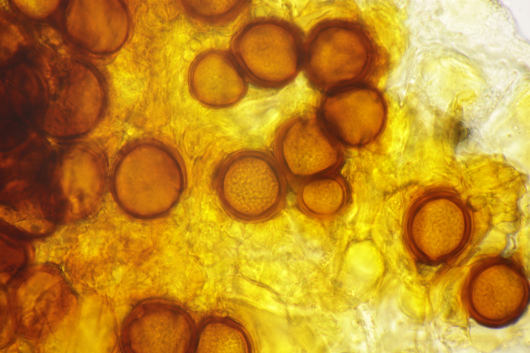 bei der Gallertträne sieht das mikroskopisch tatsächlich eher nach einer Anamorphe aus. Ich meine da Konidien zu erkennen und keine Sporen, die an Basidien wachsen sollten. Ich hatte seinerzeit mal eine D. stillatus Anamorphe mikrokopiert, das sah dann aber irgendwie doch noch mal einen Ticken anders aus...eher wie ein Gewusel von Würsten.