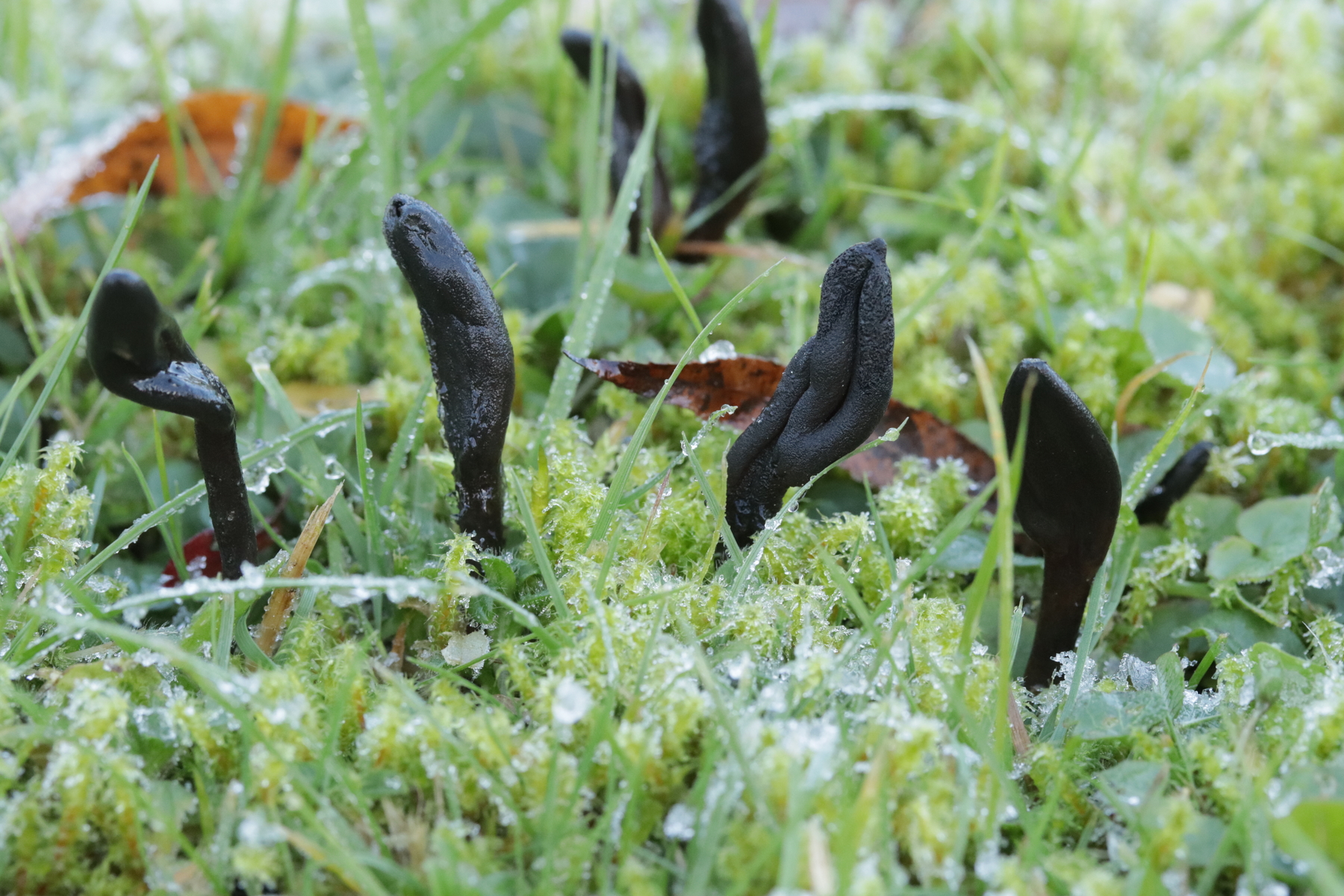12. Und wenn man für die Simocybe niederkniet, kann man ja auch direkt den nächsten Pilz finden, damit sich das auch lohnt: Lamprospora miniata var. ratisbonensis