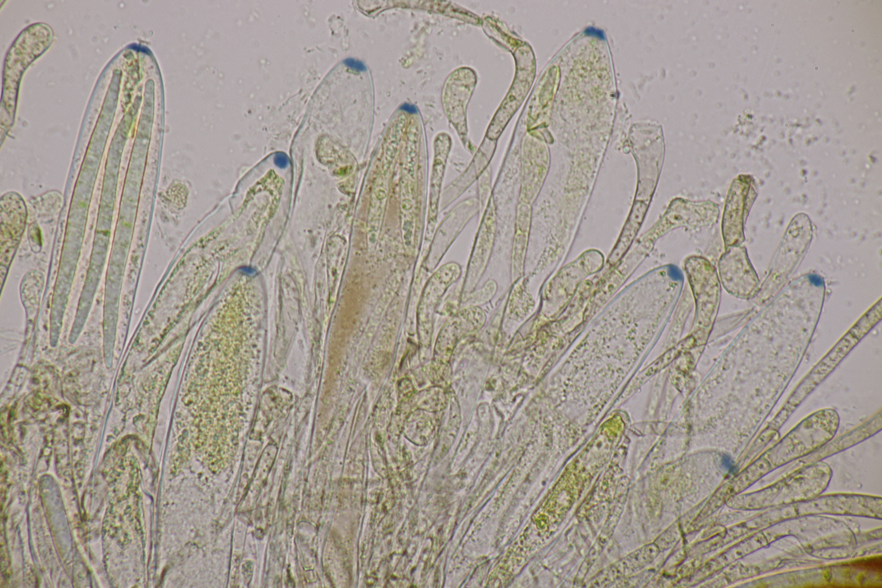 7. Entoloma infula. Sporen messen 8.0+-0.8 x 5.8+-0.4, Q=1.4+-0.1, 6.7-9.4 x 5.4-6.6, Q=1.2-1.6, Basidien 4-sporig mit Basalschnalle