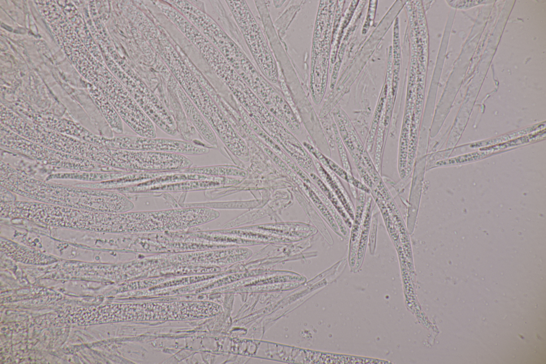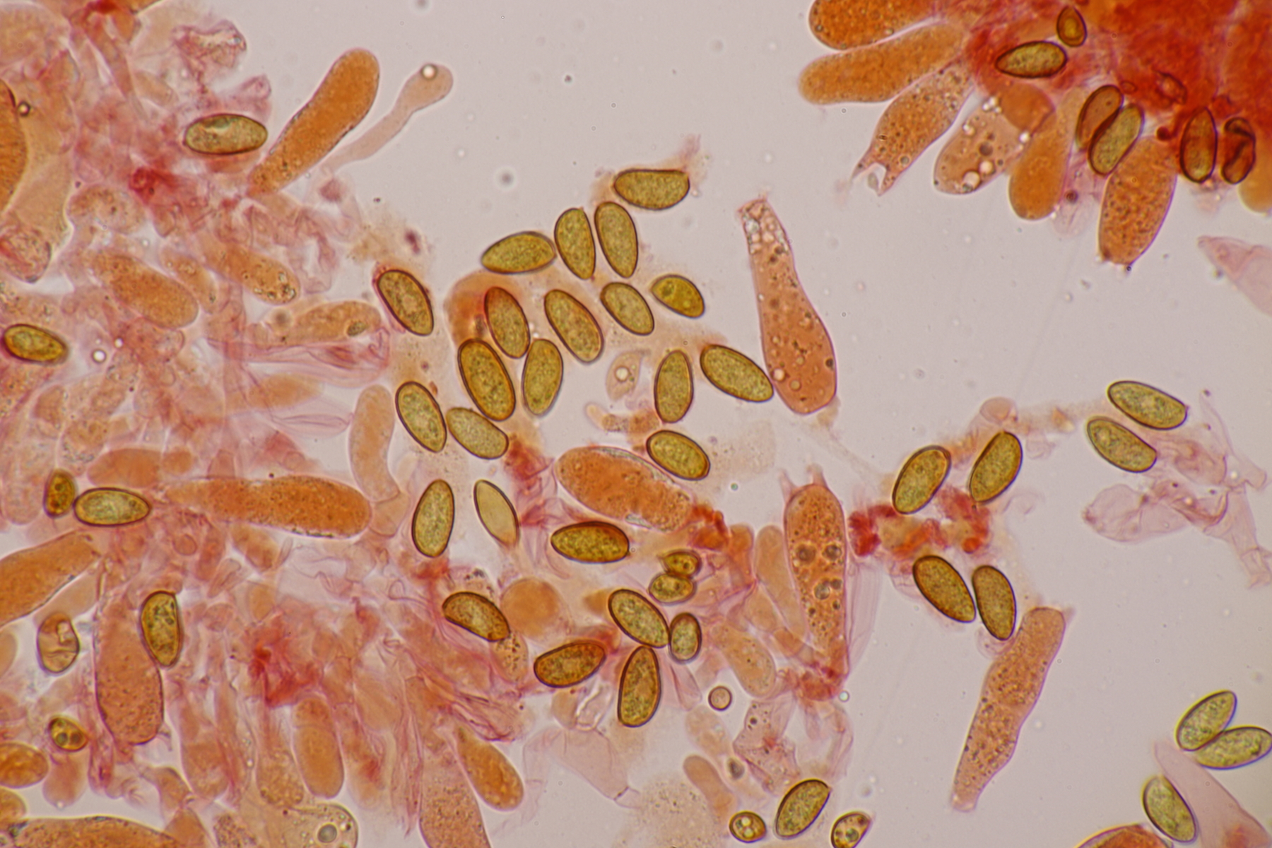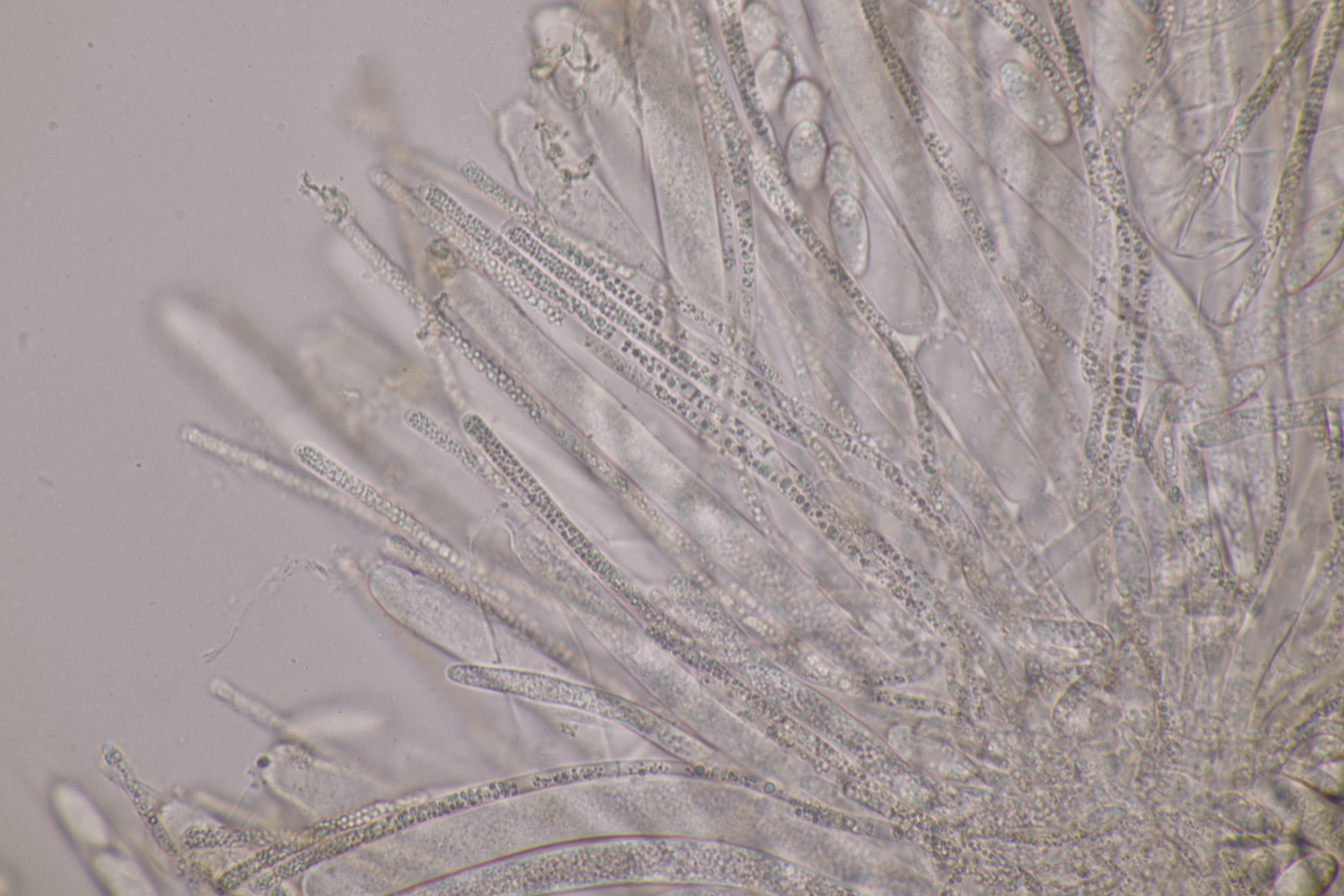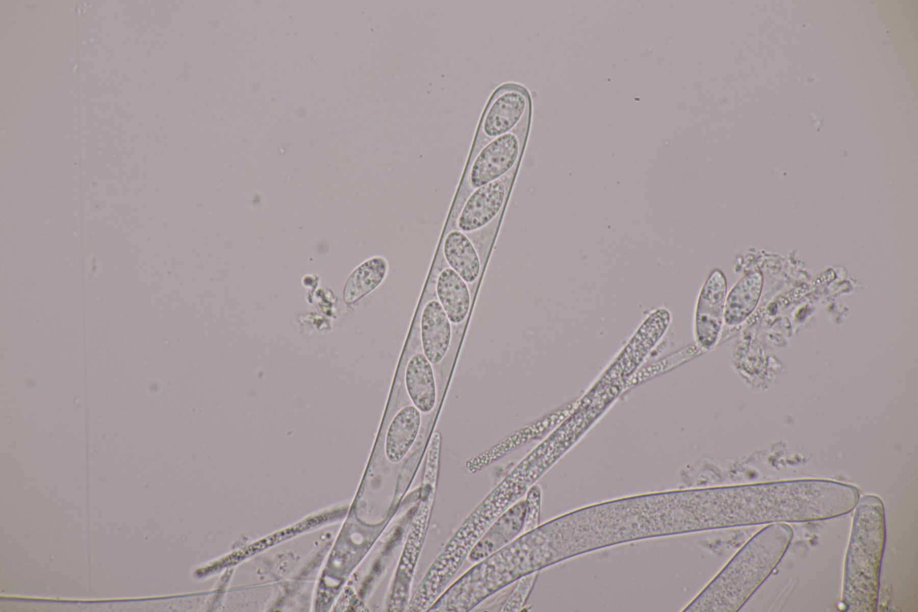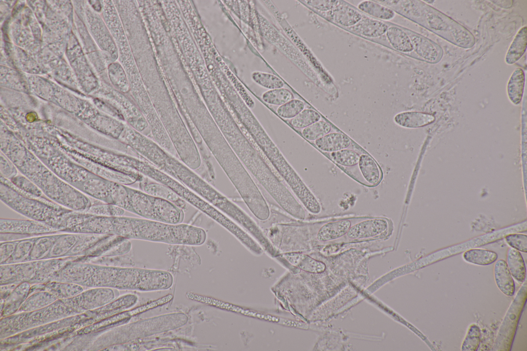 9. Neottiella rutilans. Hier ließ sich das Sporenornament auch mal sehr gut mit BWB in Milchsäure einfärben