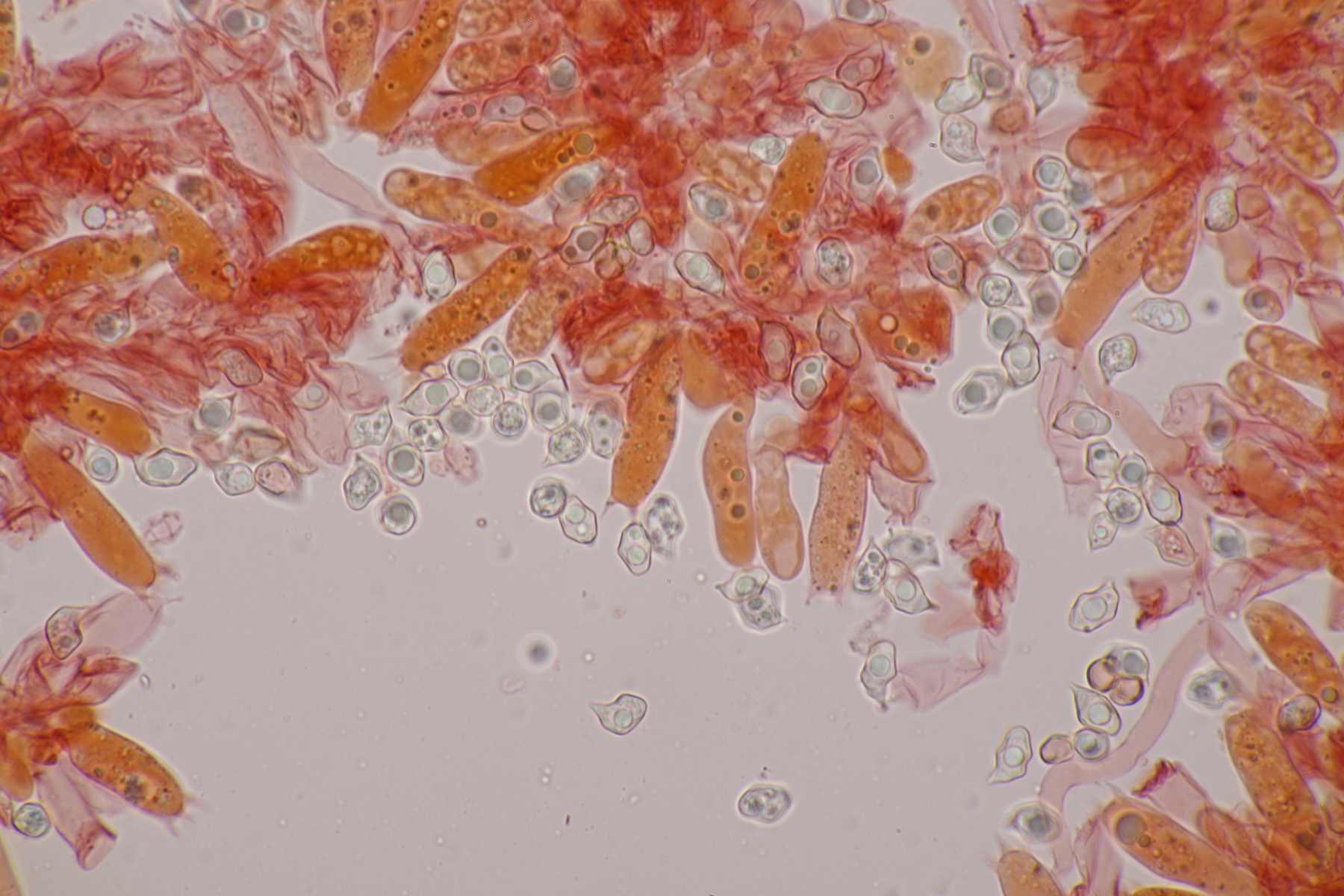 zweisporige Basidien sind mir jetzt zwar nicht unmittelbar ins Auge gefallen, aber ich hatte da natürlich auch nicht gezielt nach gesucht...