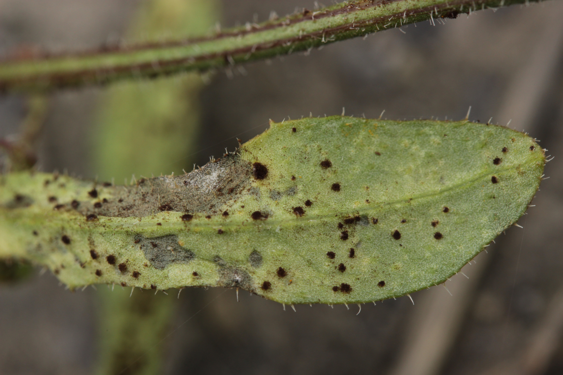 eine Ramularia ist das sicher nicht. Die bildet ja einen weißlichen Pilzrasen aus. Im Brandenburger wird Cercosporidium punctum erwähnt mit spindelförmigen bis zylindrischen Konidien, meist zweizellig und 22-44 µm x 4-6,5 µm Größe.