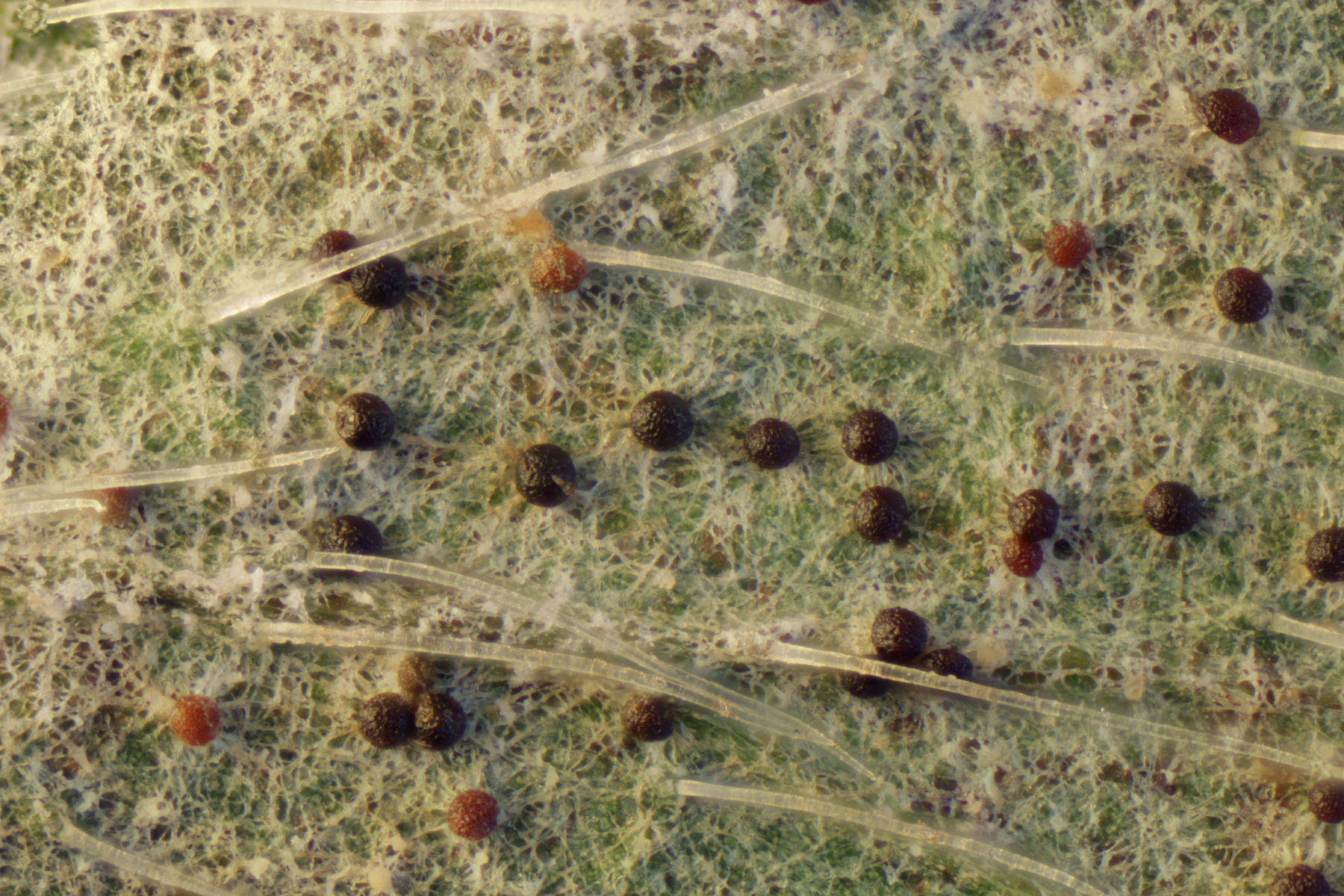 das sind Fruchtkörper von Erysiphe alphitoides.