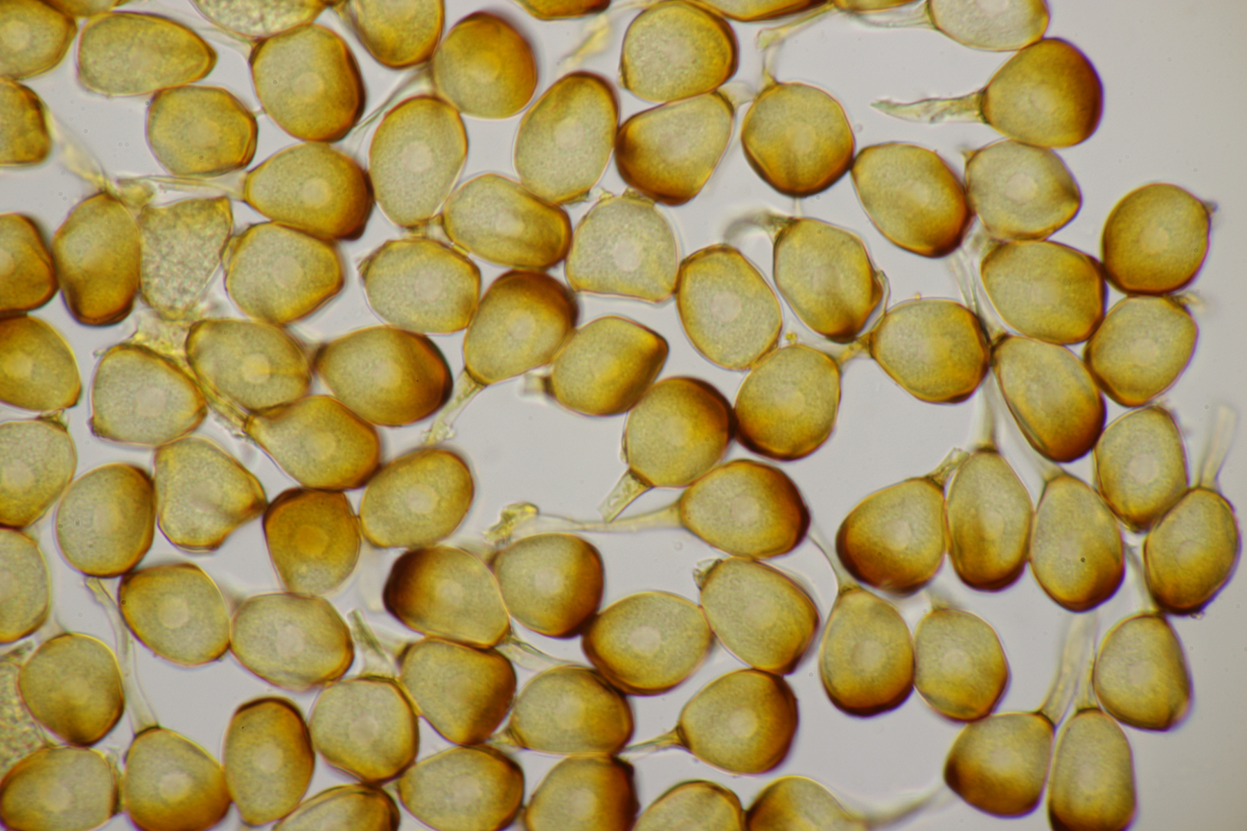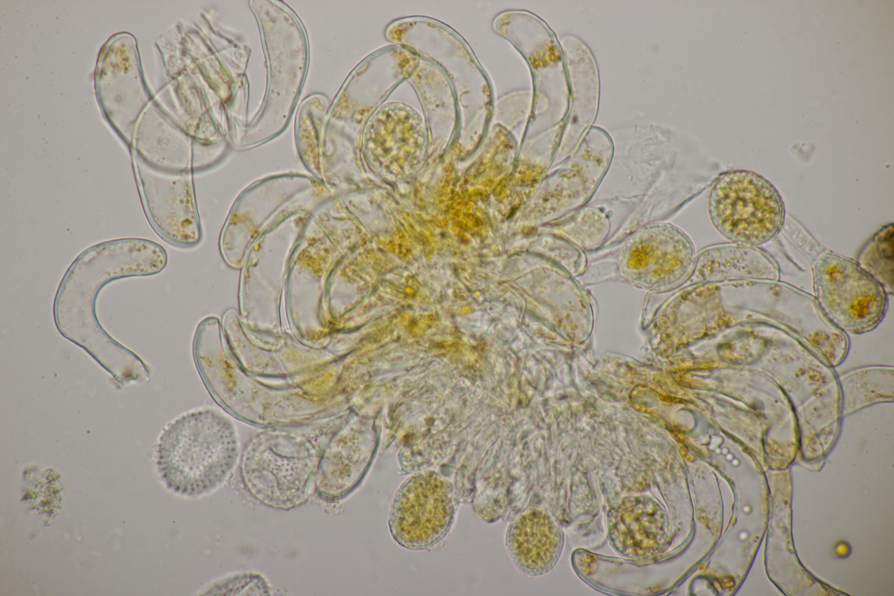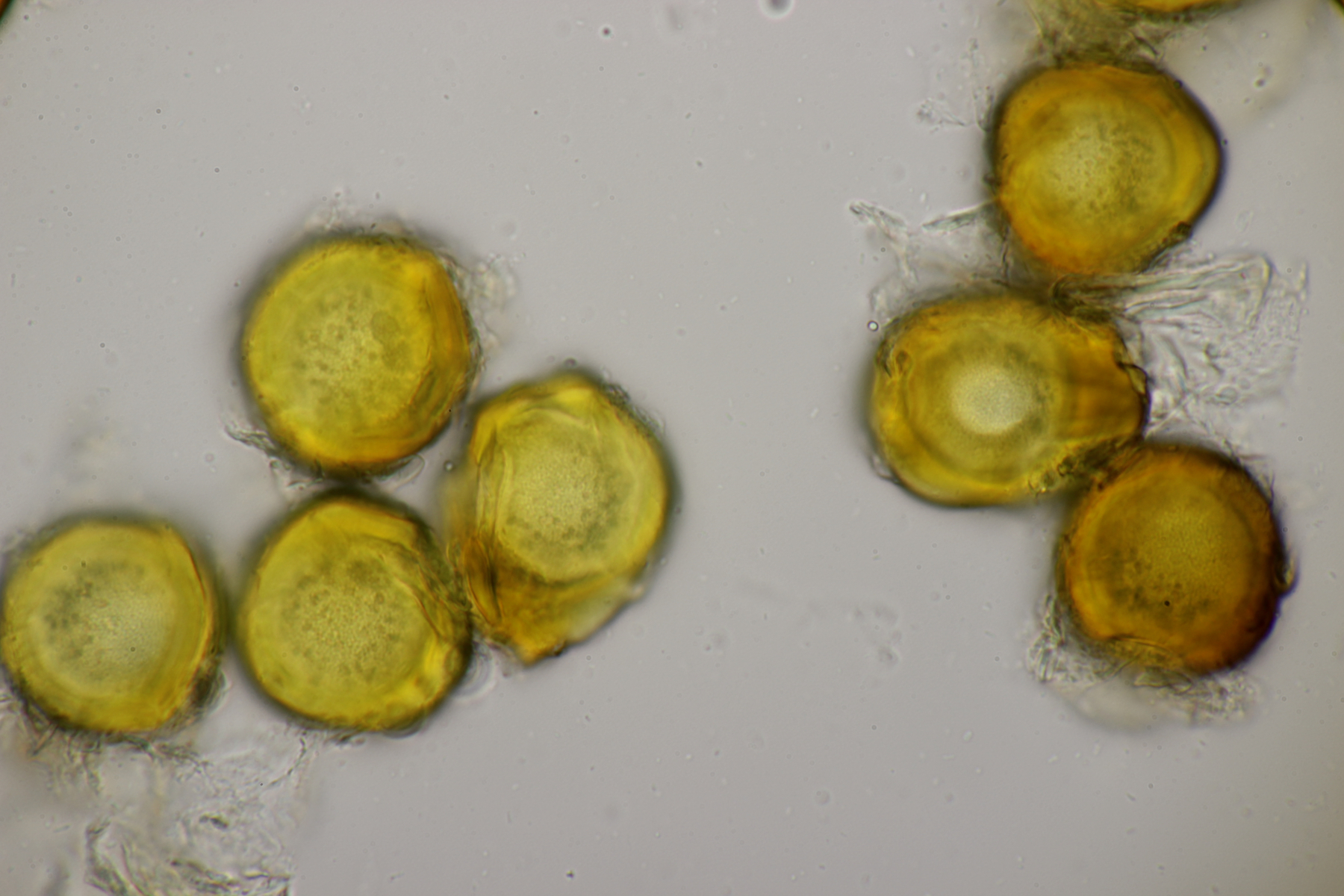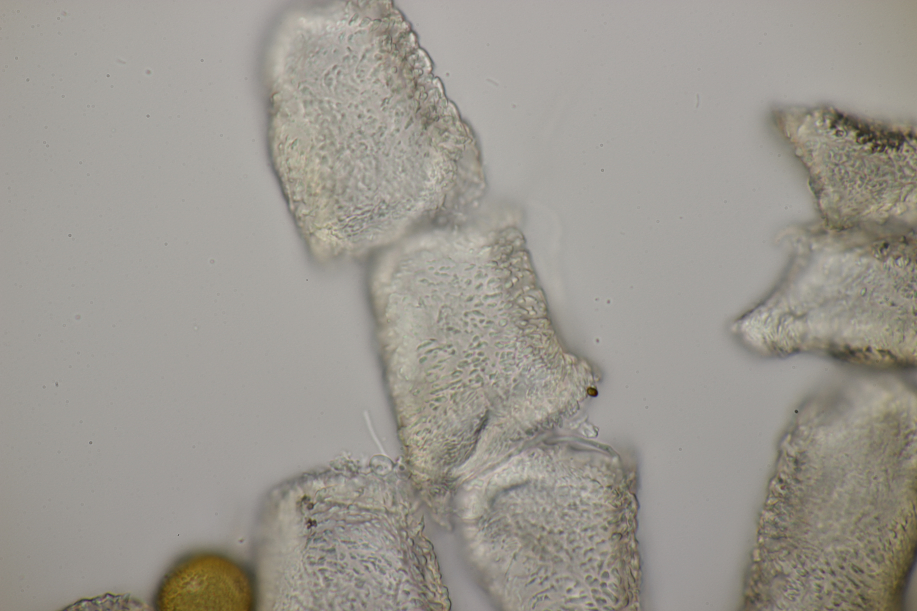 ich war da auch schwer beeindruckt von. Leider war der Sporenabwurf nicht sehr ergiebig (das ist bei Telephorales ja sonst nie ein Problem an Sporen zu kommen), sonst hätte man das sicher auch noch besser ablichten können. Denn die Sporen waren natürlich fast alle so orientiert, daß der Keimporus nicht seitlich oder auf der Oberseite war...