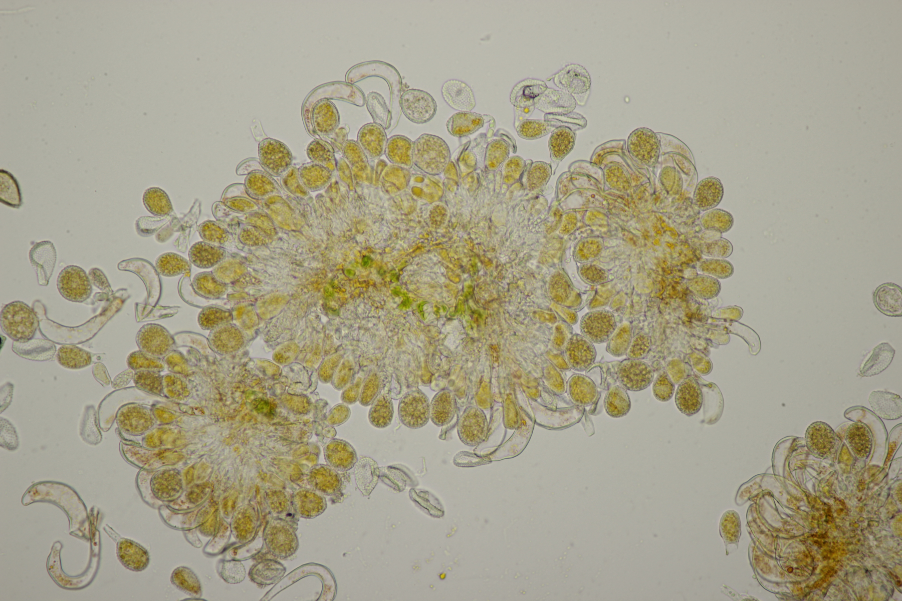 Hier mit Nr. 2: Cladosporium exobasidii var. exobasidii als Hyperparasiten