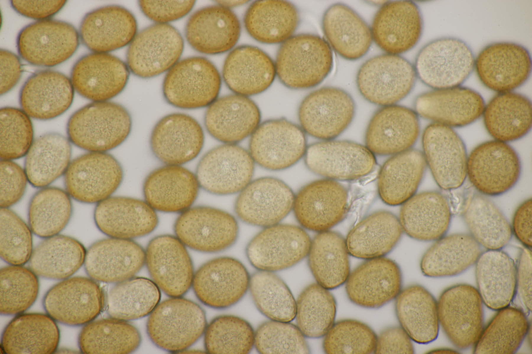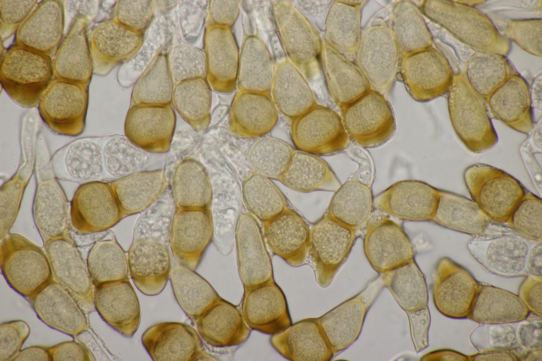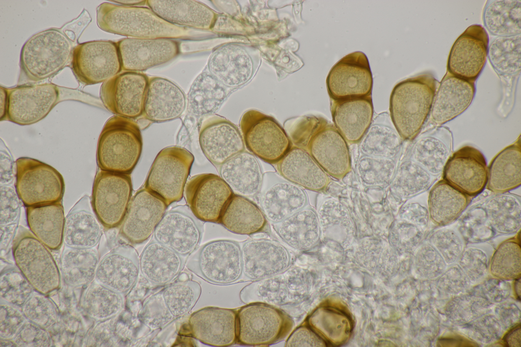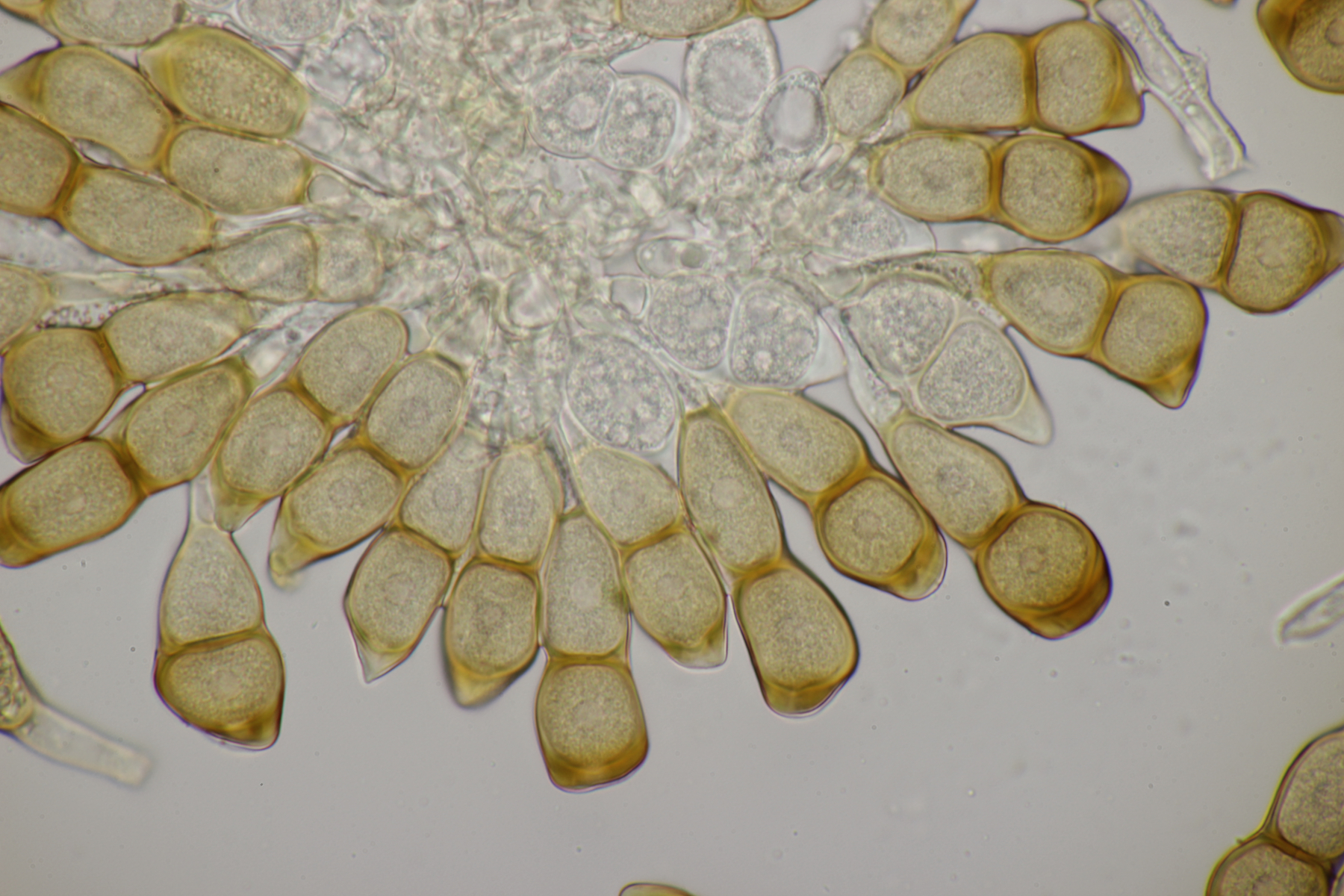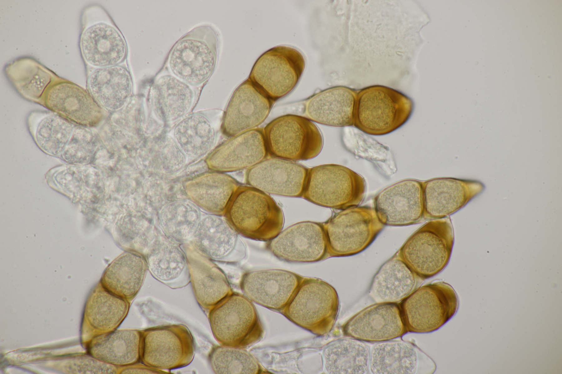 bei der Pulvinula habe ich Sporen von (15-16) µm, allerdings im Ascus gemessen. Ich kann mal schauen, ob ich da noch einen Sporenabwurf hinbekomme. Wenn ich das mit der Literatur vergleiche, ergibt sich ein gemischtes Bild. Medardi gibt Sporen von (15-17) µm an, das paßt gut. Van Vooren hat Sporen von (16-19) µm, da wäre ich schon eher klein unterwegs, würde das aber im Zweifelsfall auf fehlenden Abwurf zurückführen.
