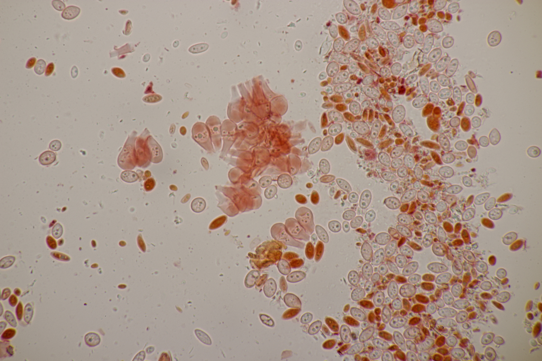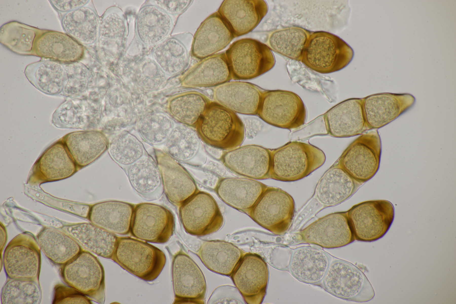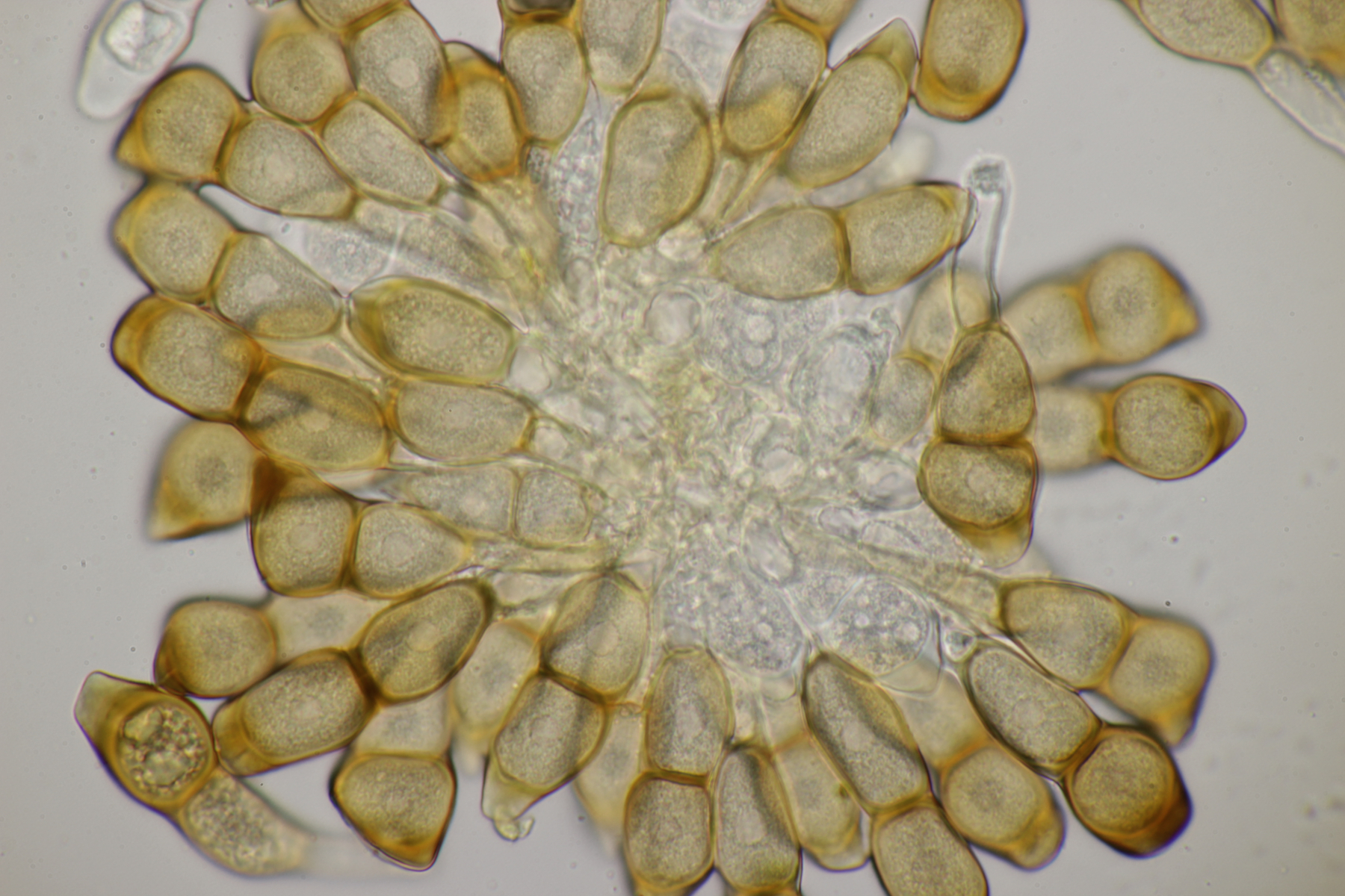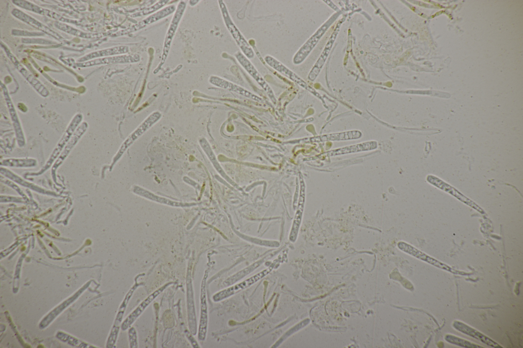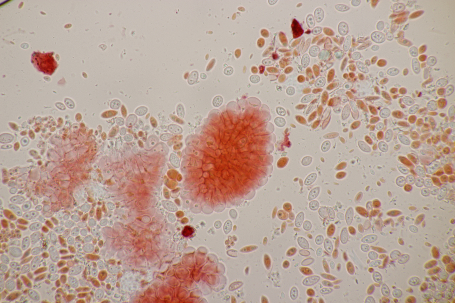 bei der Pulvinula habe ich Sporen von (15-16) µm, allerdings im Ascus gemessen. Ich kann mal schauen, ob ich da noch einen Sporenabwurf hinbekomme. Wenn ich das mit der Literatur vergleiche, ergibt sich ein gemischtes Bild. Medardi gibt Sporen von (15-17) µm an, das paßt gut. Van Vooren hat Sporen von (16-19) µm, da wäre ich schon eher klein unterwegs, würde das aber im Zweifelsfall auf fehlenden Abwurf zurückführen.