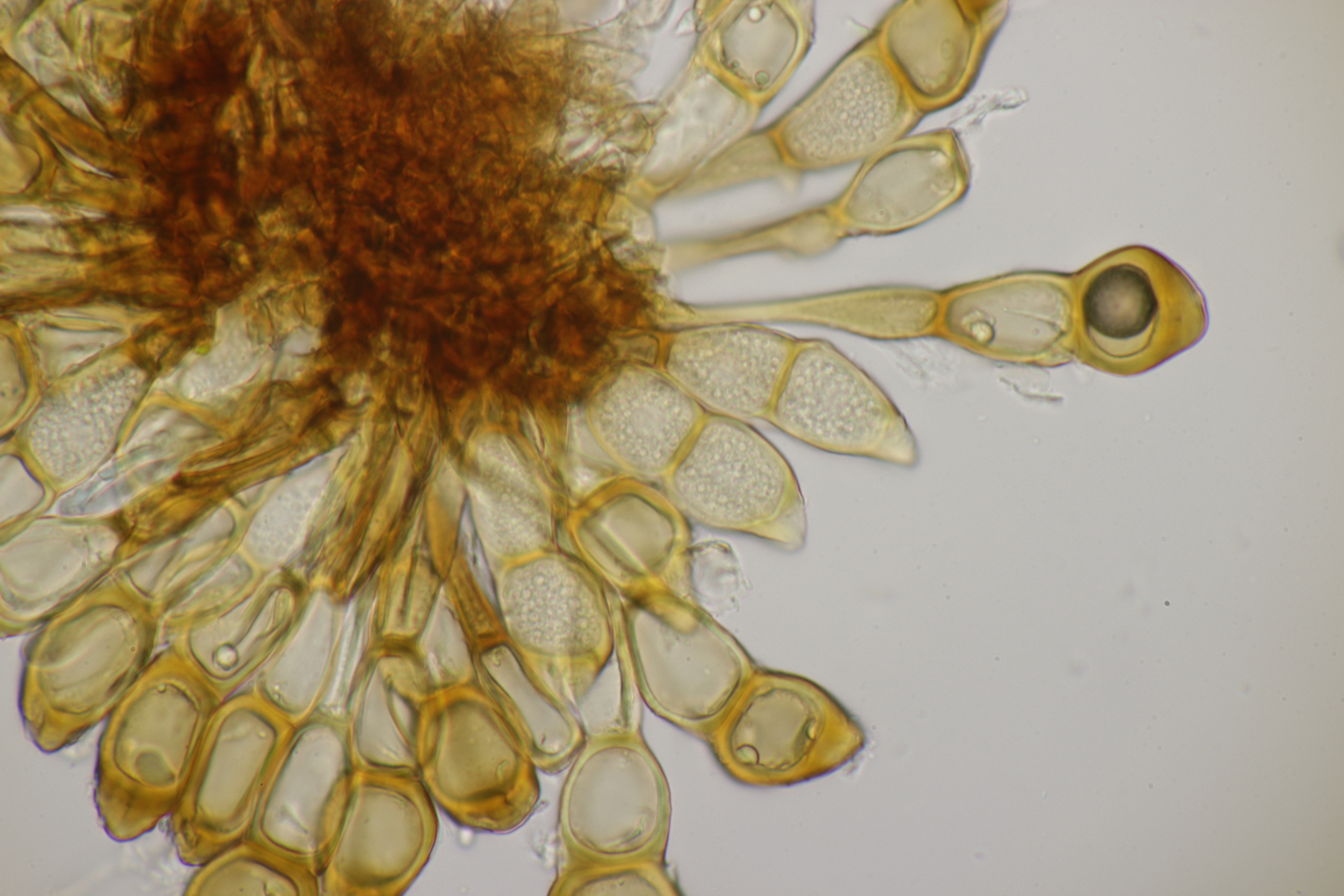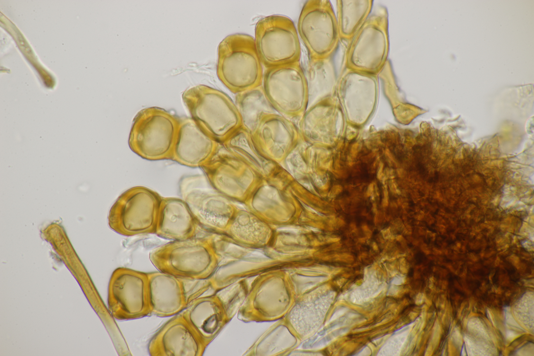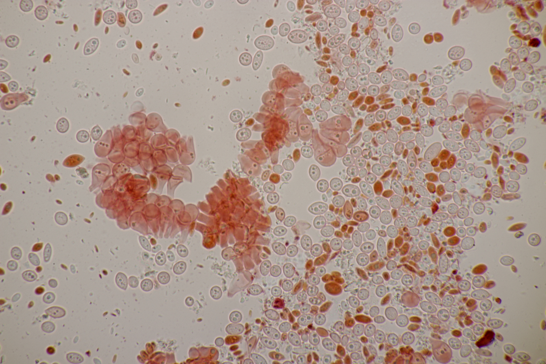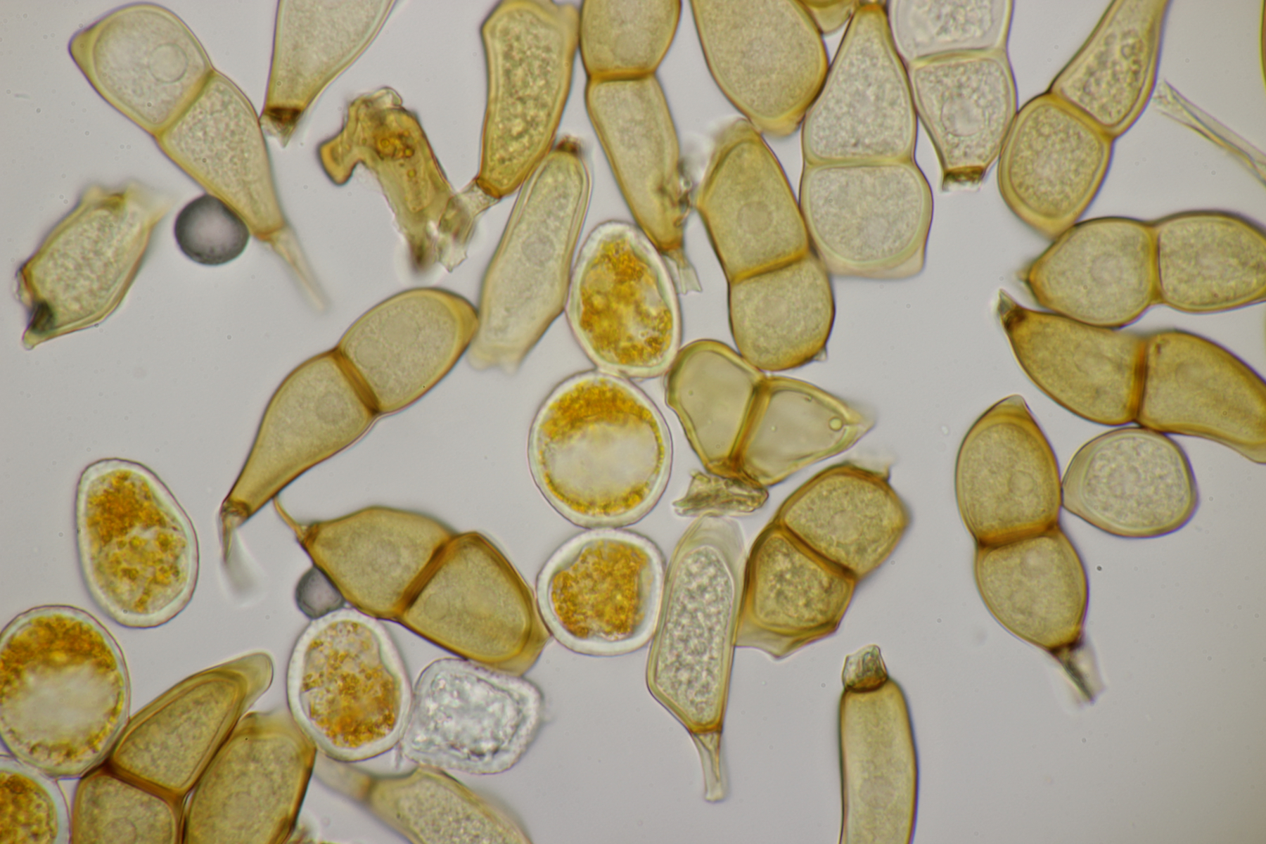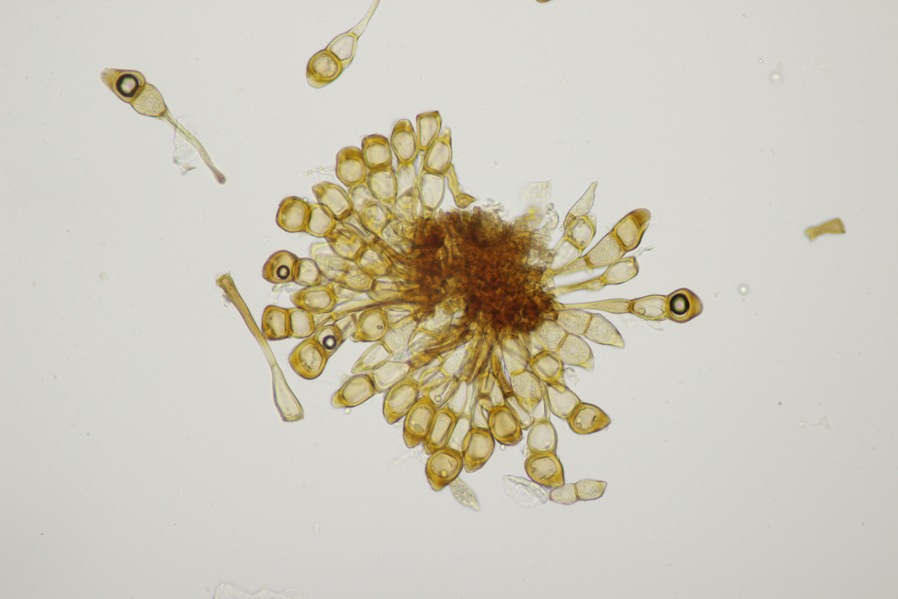 bei der Pulvinula habe ich Sporen von (15-16) µm, allerdings im Ascus gemessen. Ich kann mal schauen, ob ich da noch einen Sporenabwurf hinbekomme. Wenn ich das mit der Literatur vergleiche, ergibt sich ein gemischtes Bild. Medardi gibt Sporen von (15-17) µm an, das paßt gut. Van Vooren hat Sporen von (16-19) µm, da wäre ich schon eher klein unterwegs, würde das aber im Zweifelsfall auf fehlenden Abwurf zurückführen.