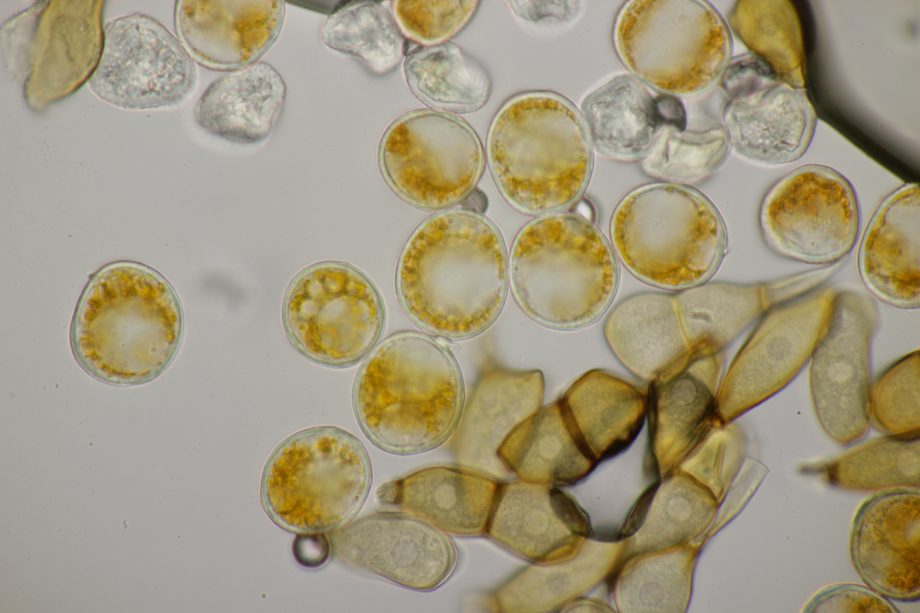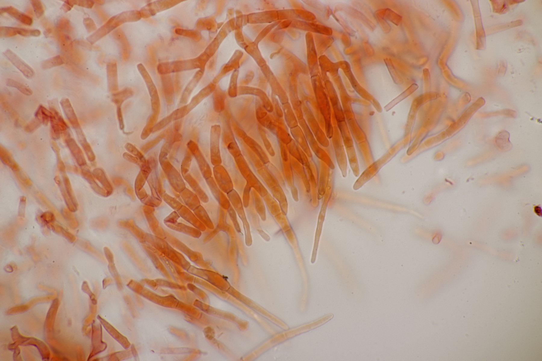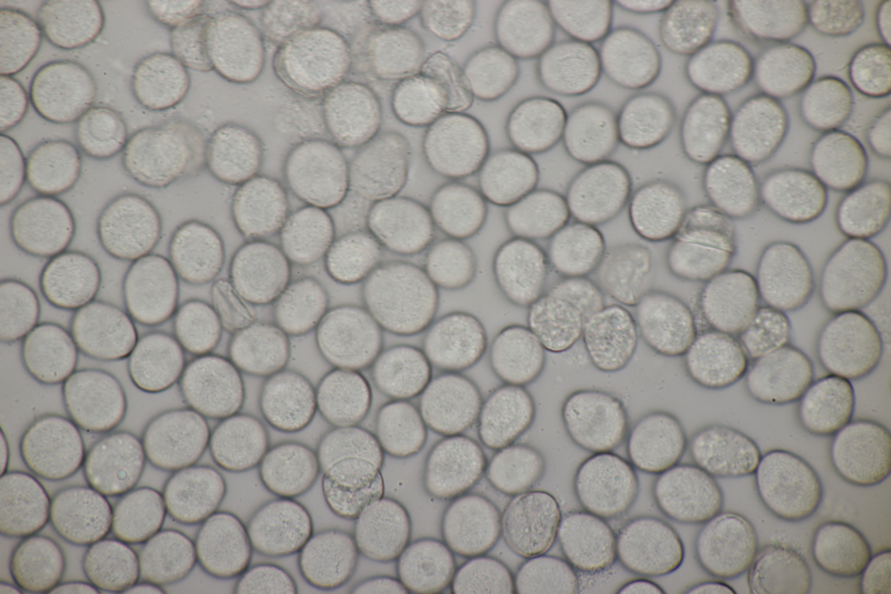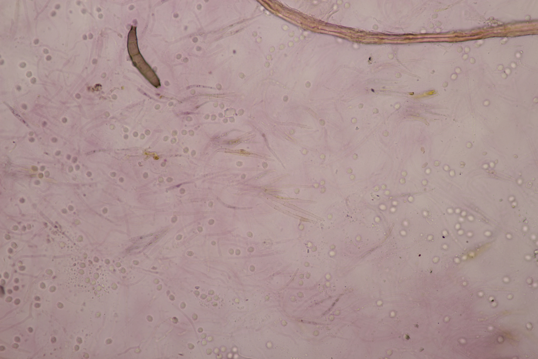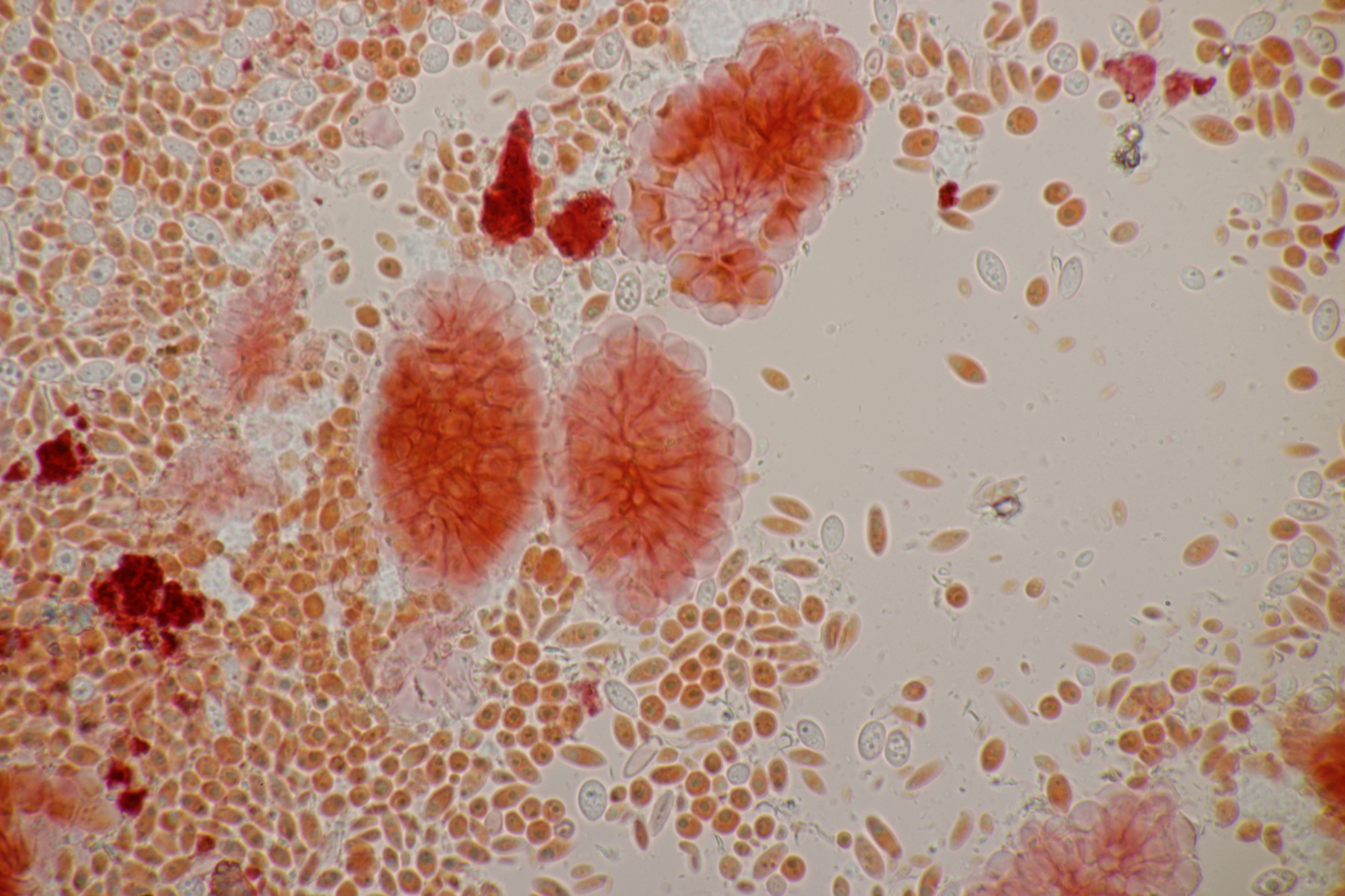 bei der Pulvinula habe ich Sporen von (15-16) µm, allerdings im Ascus gemessen. Ich kann mal schauen, ob ich da noch einen Sporenabwurf hinbekomme. Wenn ich das mit der Literatur vergleiche, ergibt sich ein gemischtes Bild. Medardi gibt Sporen von (15-17) µm an, das paßt gut. Van Vooren hat Sporen von (16-19) µm, da wäre ich schon eher klein unterwegs, würde das aber im Zweifelsfall auf fehlenden Abwurf zurückführen.