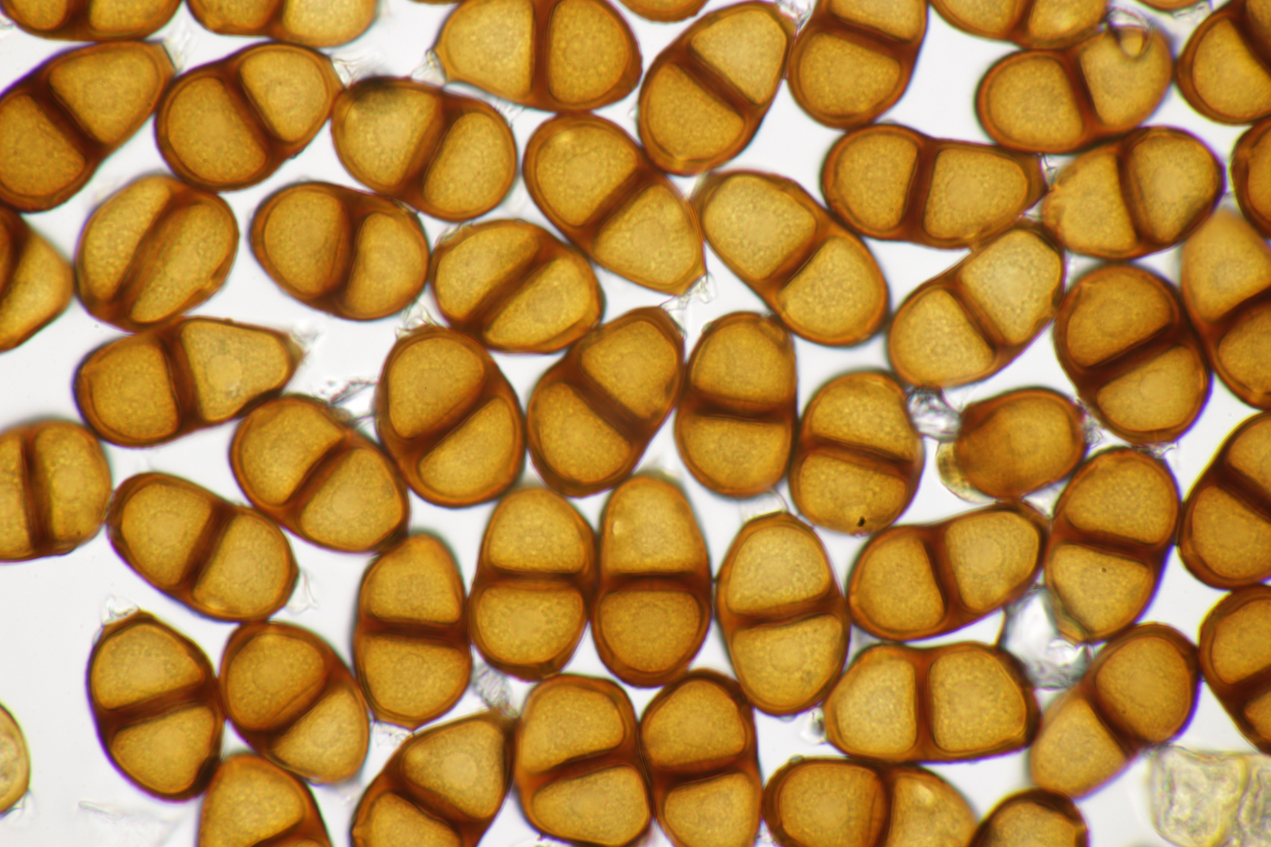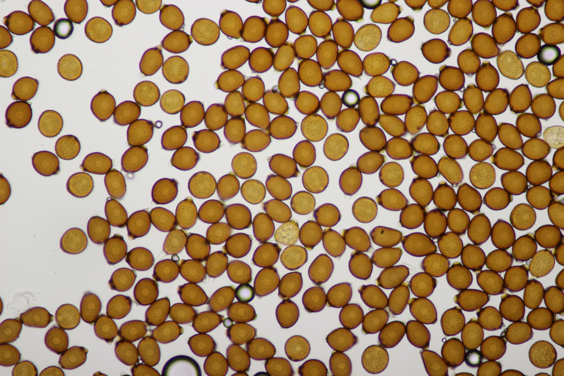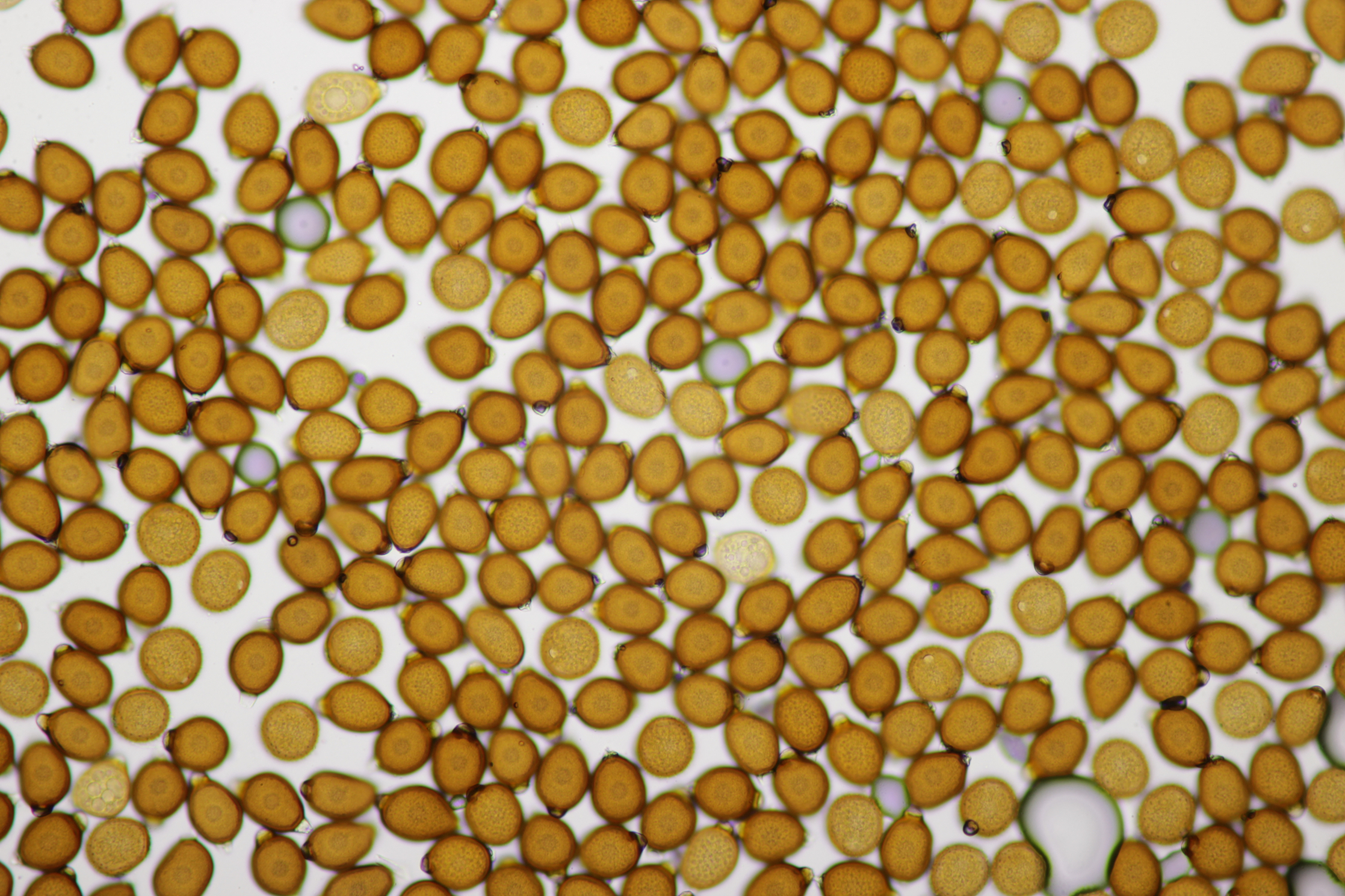 der Wirt ist Glechoma hederacea. Das Messen kann man sich bei den Phytos in der Tat meistens sparen (das war einer der Gründe, warum ich mich anfangs auf die Phytos gestürzt habe, bei meinem alten Mikroskop hatte ich ja Anfangs kein Meßokular). Bei der Puccinia glechomatis, die sehr häufig ist, kannst du auch mal drauf achten, daß es zwei Arten von Telien/Teliosporen gibt. Relativ helle, dünnwandige Sporen, die sofort auskeimen können (manchmal sind die Telien bereift, das sind dann Basidien und Basidiosporen - lassen sich gut mit Kongorot anfärben) und dunkle, dickwandige Sporen, die erstmal überwintern müssen.