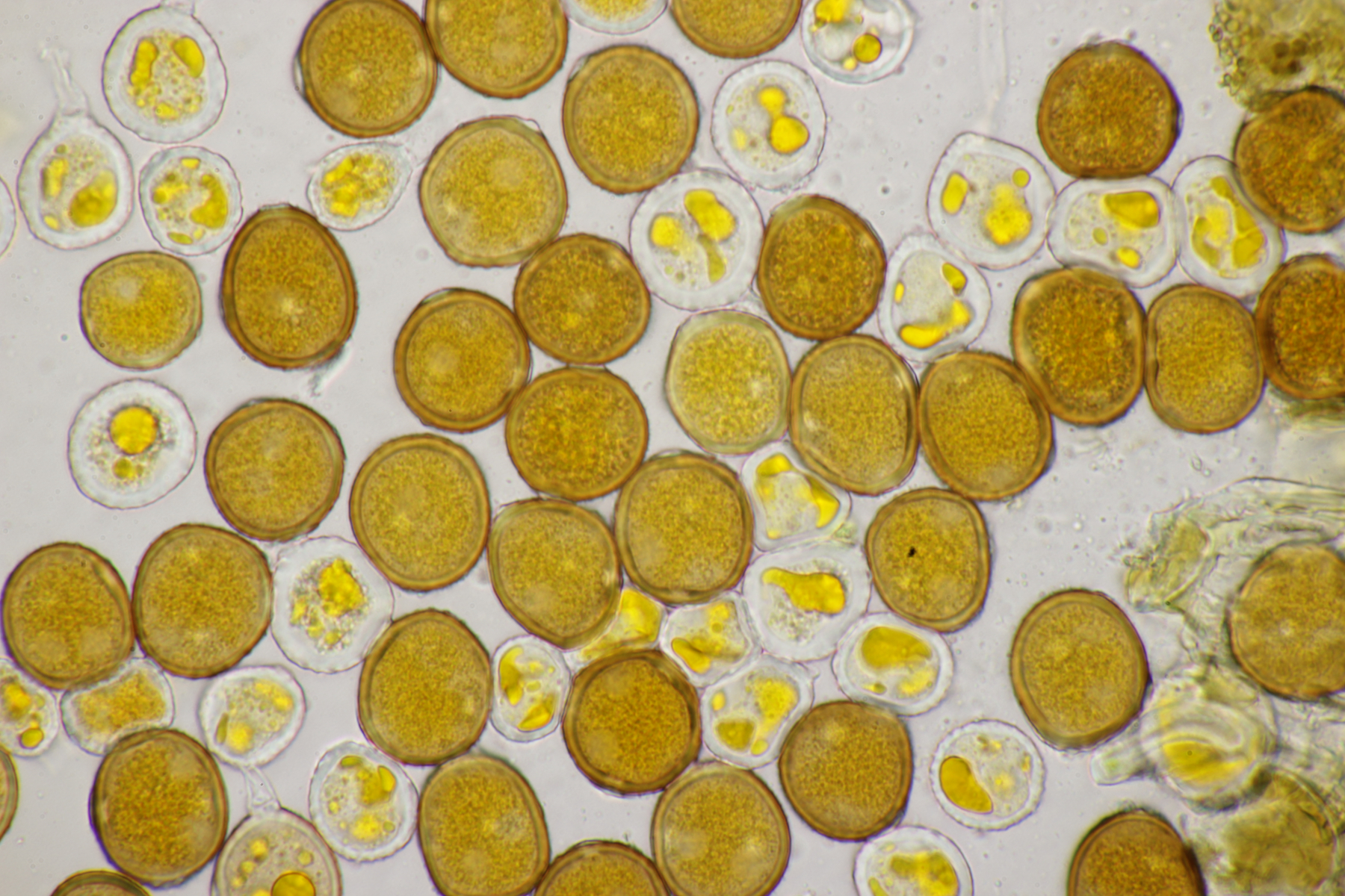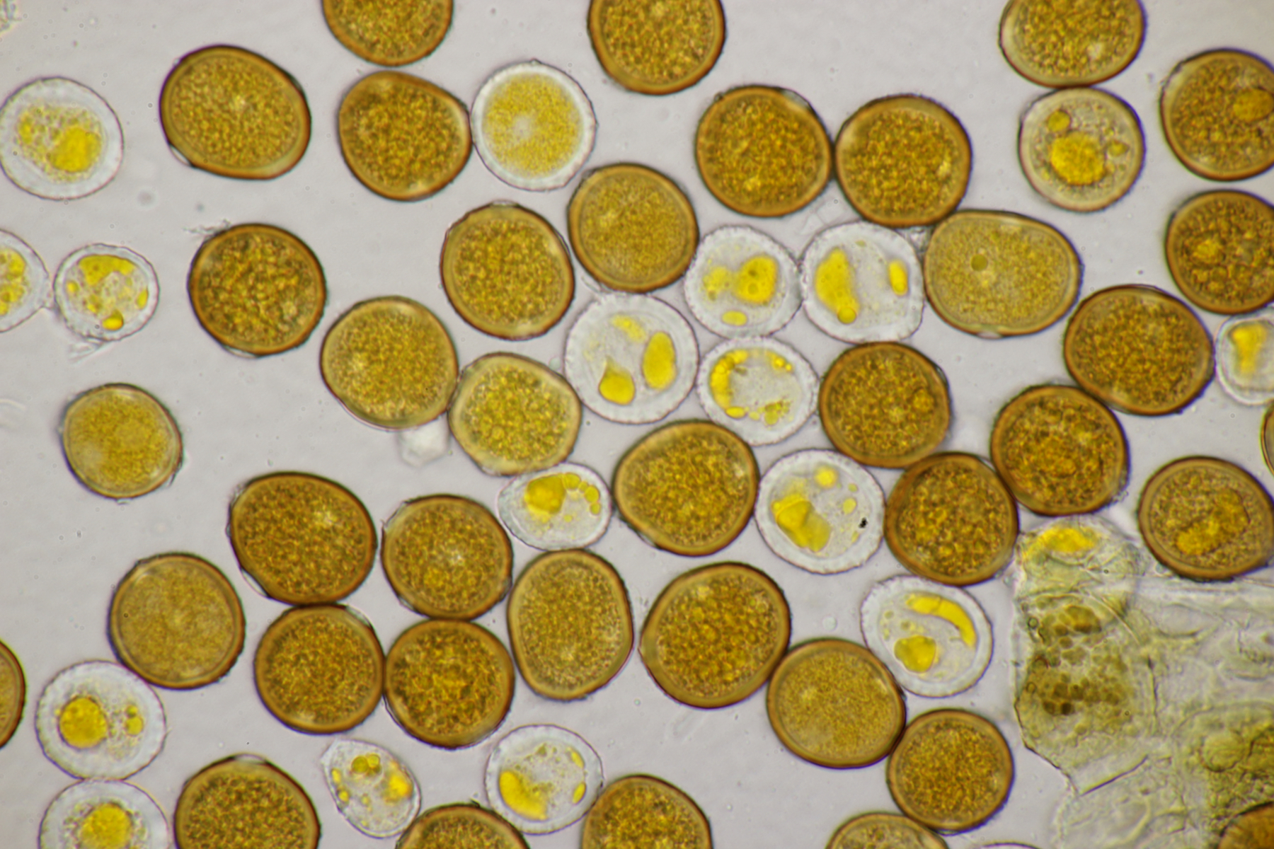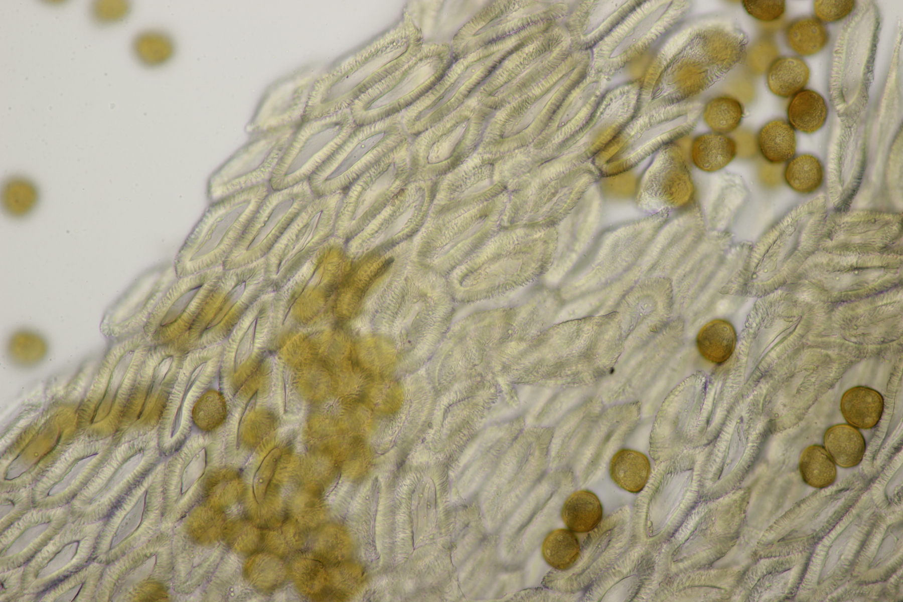 der Wirt ist Glechoma hederacea. Das Messen kann man sich bei den Phytos in der Tat meistens sparen (das war einer der Gründe, warum ich mich anfangs auf die Phytos gestürzt habe, bei meinem alten Mikroskop hatte ich ja Anfangs kein Meßokular). Bei der Puccinia glechomatis, die sehr häufig ist, kannst du auch mal drauf achten, daß es zwei Arten von Telien/Teliosporen gibt. Relativ helle, dünnwandige Sporen, die sofort auskeimen können (manchmal sind die Telien bereift, das sind dann Basidien und Basidiosporen - lassen sich gut mit Kongorot anfärben) und dunkle, dickwandige Sporen, die erstmal überwintern müssen.