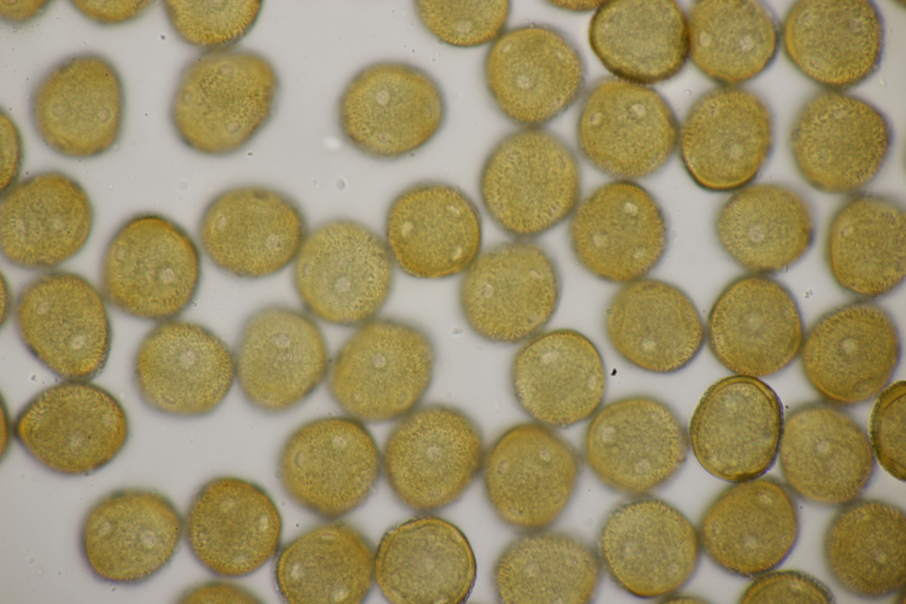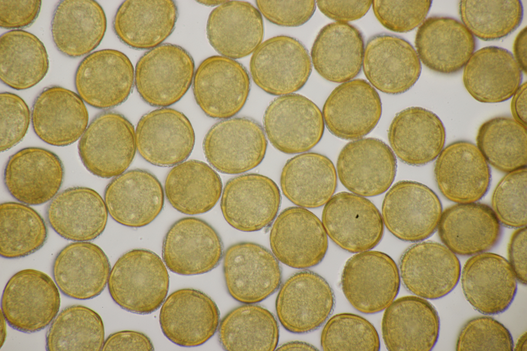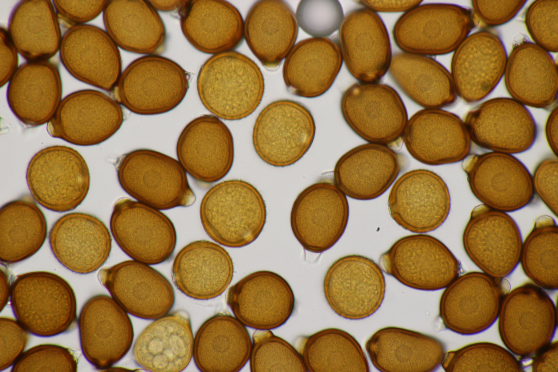 7. Puccinia centaureae ex Centaurea scabiosa, gut erkennbar an den drei äquatorialen Keimporen der Uredosporen