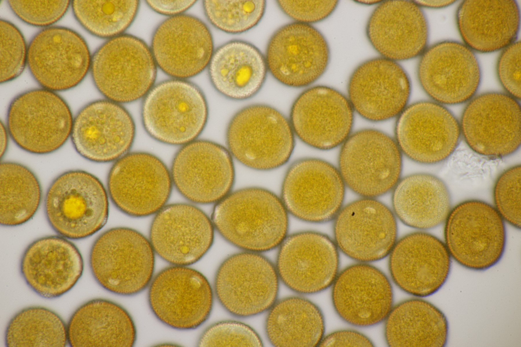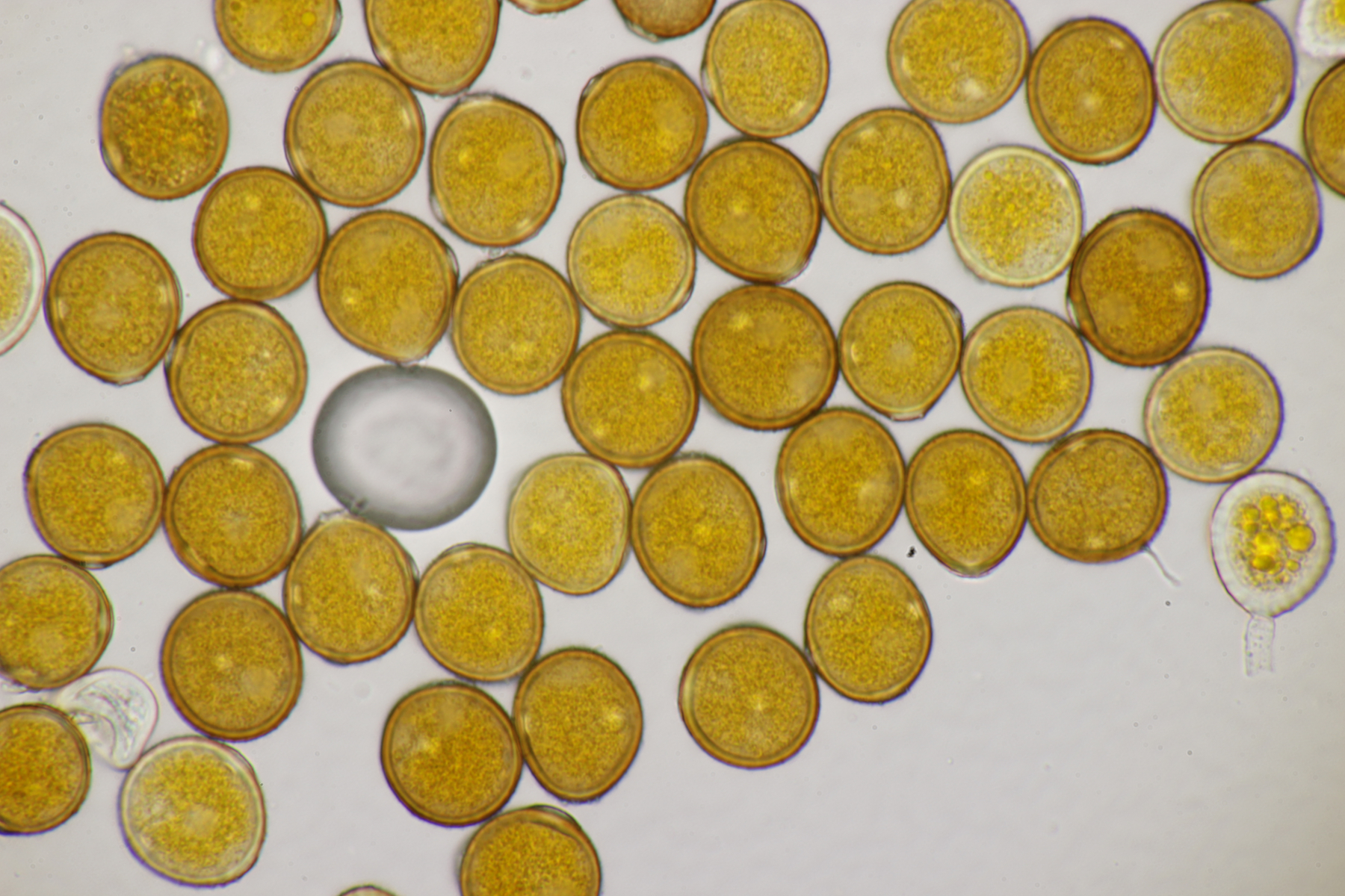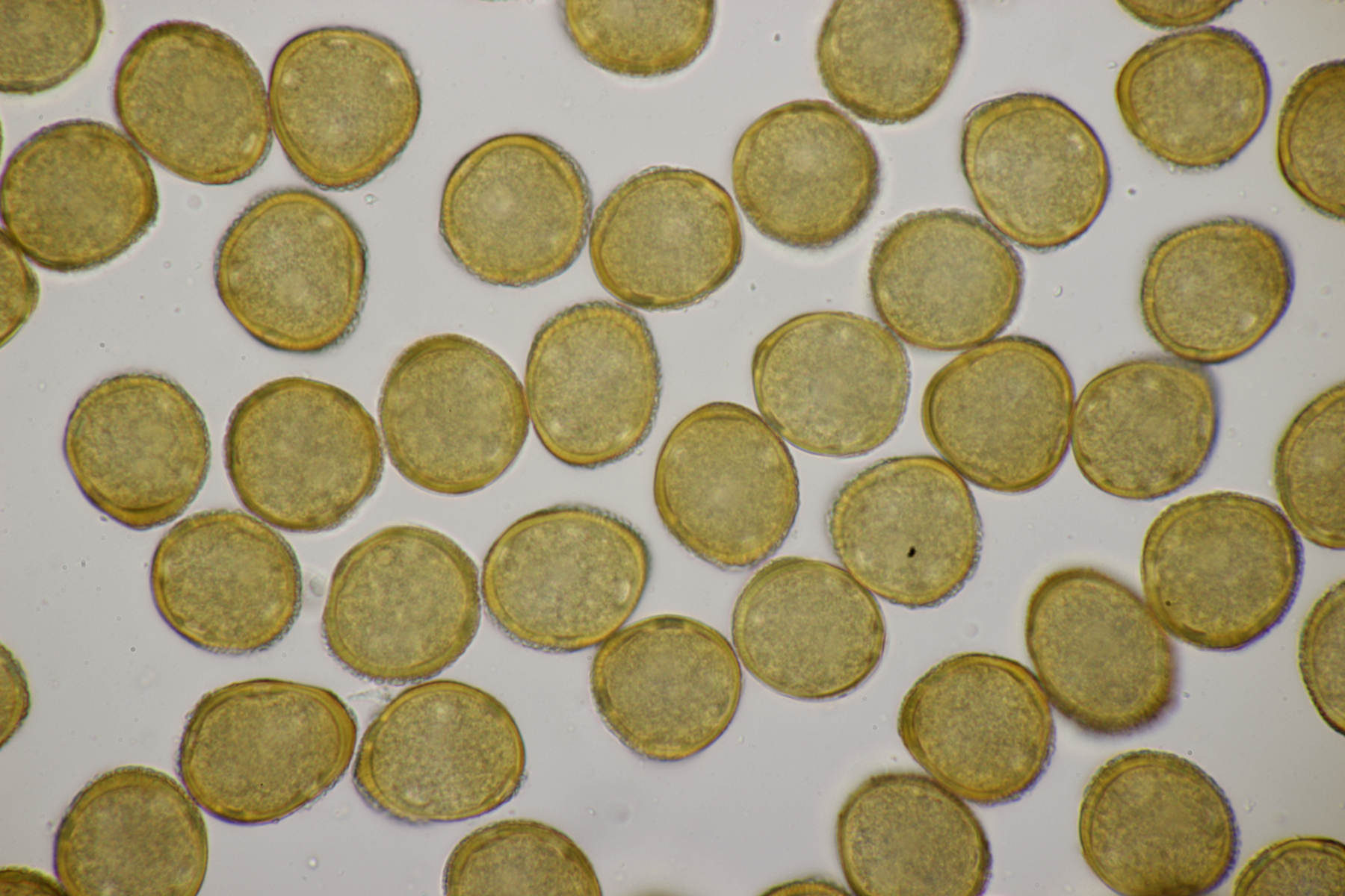 7. Puccinia centaureae ex Centaurea scabiosa, gut erkennbar an den drei äquatorialen Keimporen der Uredosporen