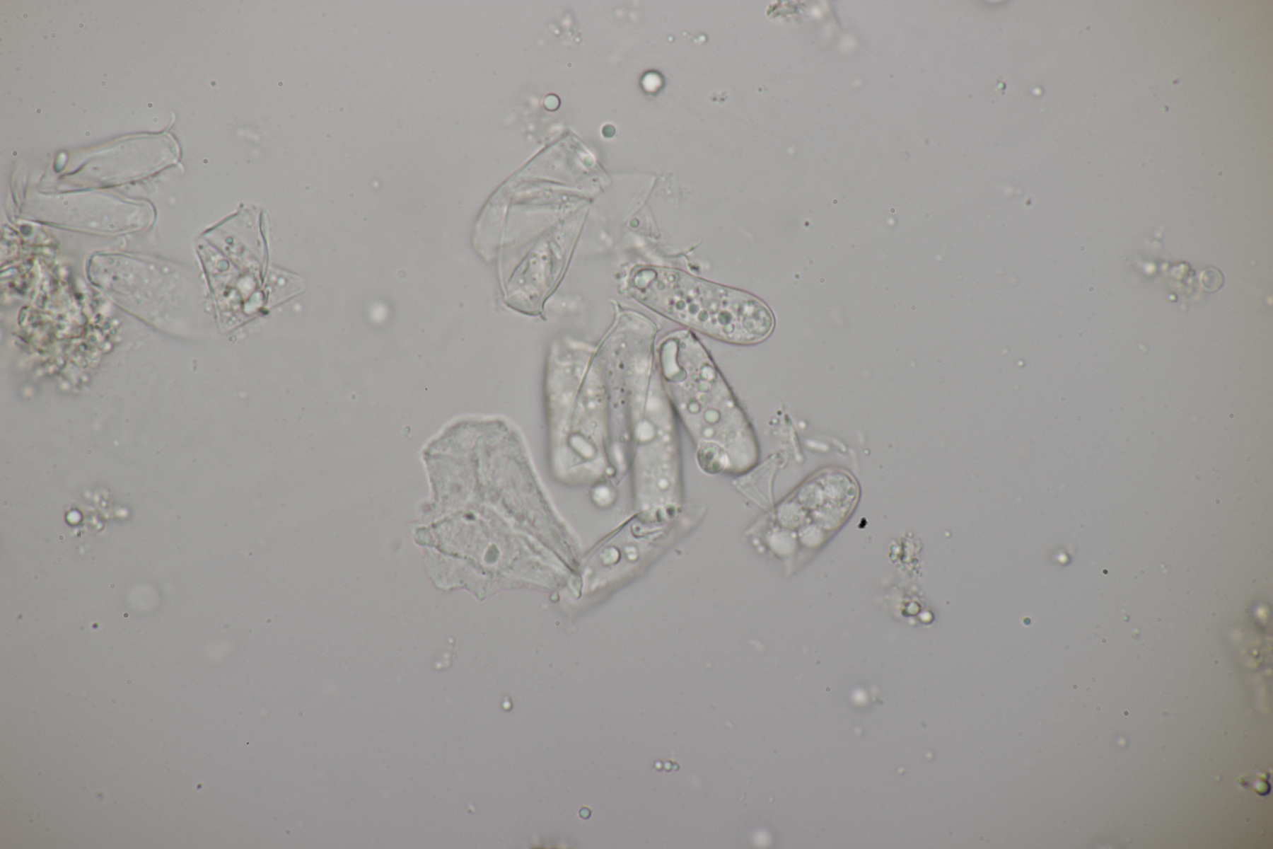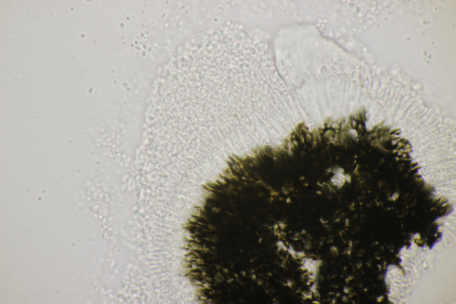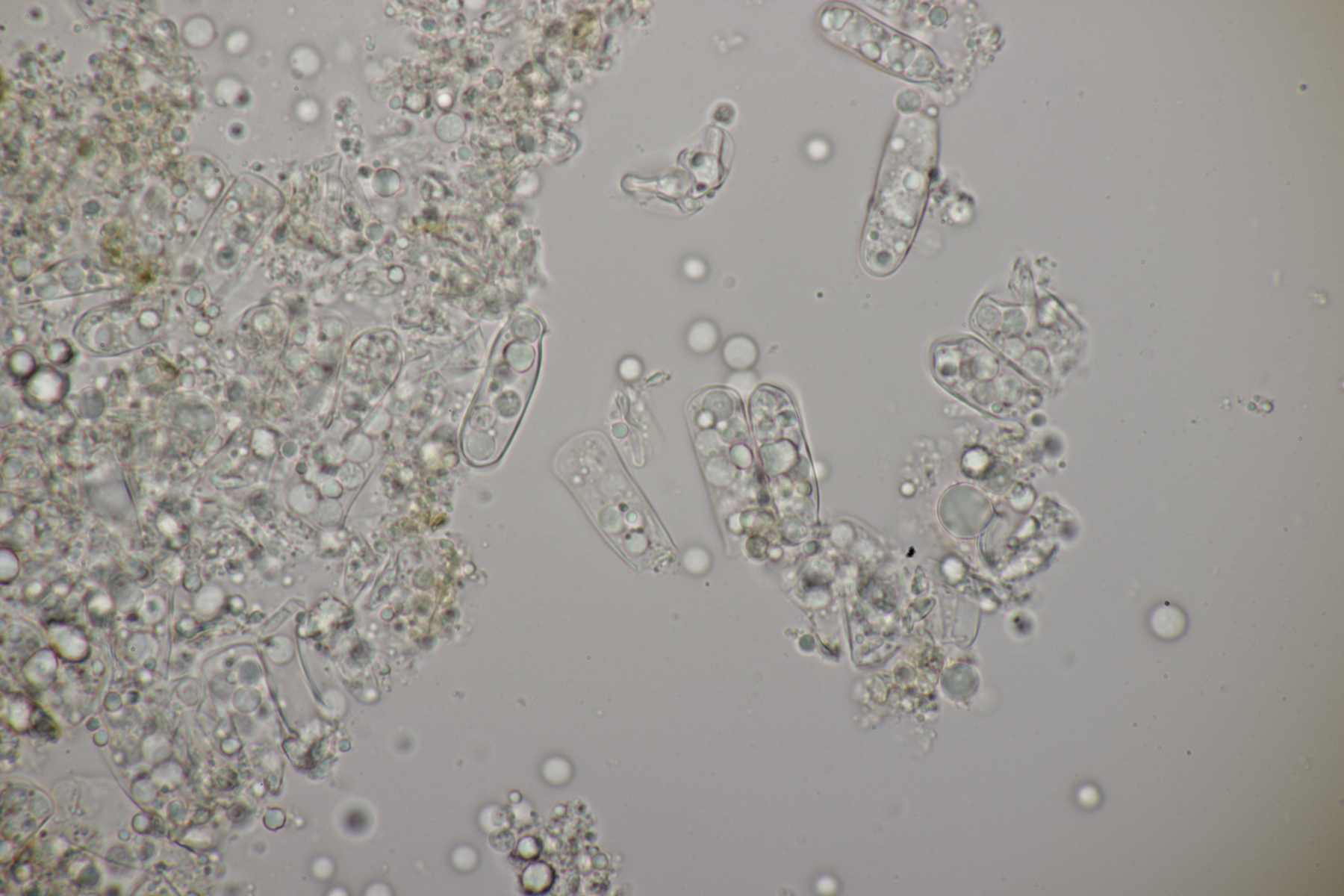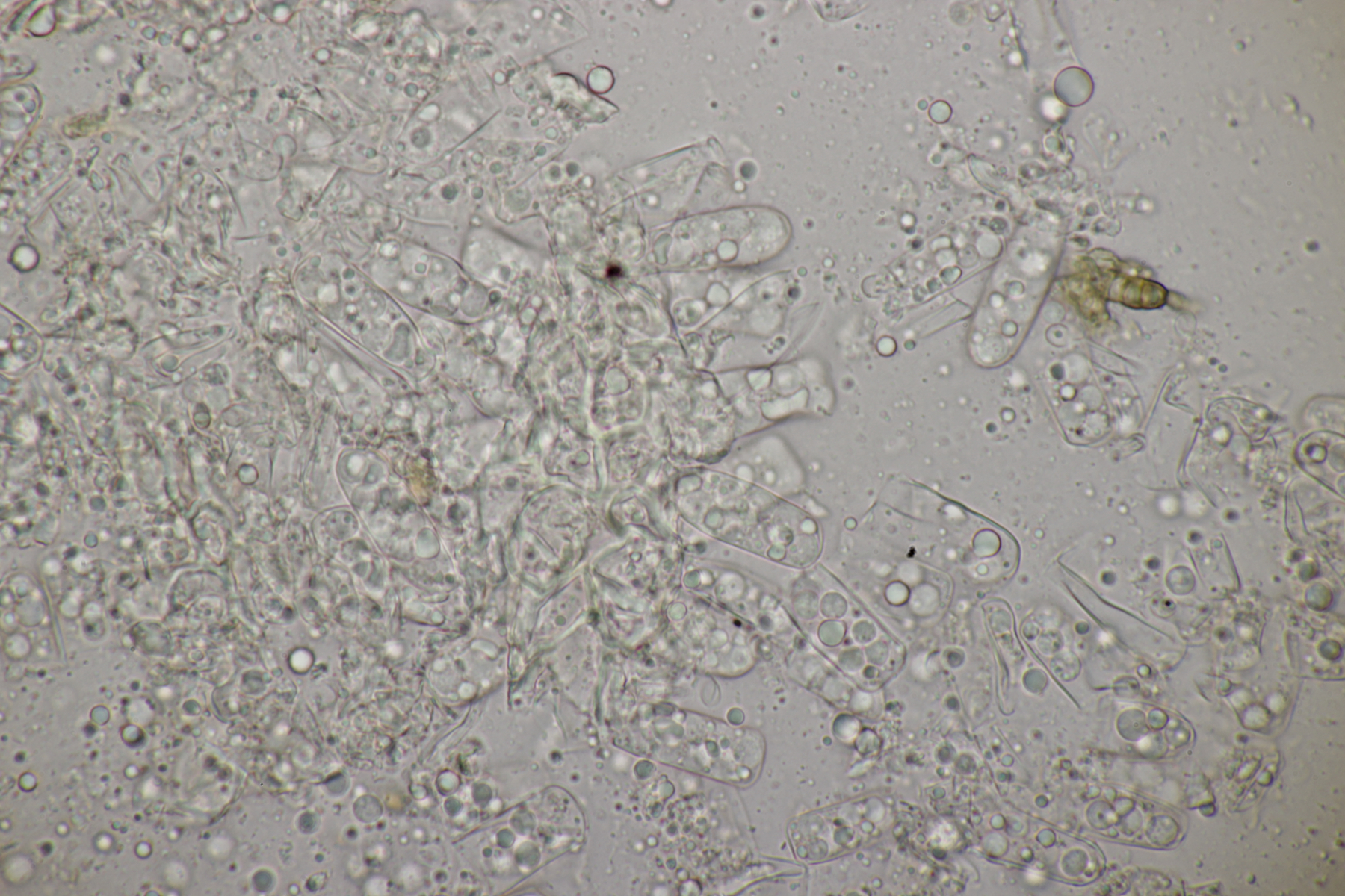 3. Wenn man sich beim Erstellen der Mikropräparate ziemlich nah mit der Nase an den Satansröhrling geklebt hat und dabei den Geruch einer vollen Babywindel wahrnimmt, ist man froh, wenn man anschließend diesen Pilz hier unters Mikro legt. Der Iodgeruch wirkt da direkt angenehm und klinisch rein. Was nicht ganz so angenehm war: Ich hatte mir fürs Mikro eine Hälfte des Pilzes mitgenommen, den Karl schon am Vortag für sein Foto zerschnitten hat. Da war dann bei der Ankunft zu Hause schon einiges an Leben drin erwacht...