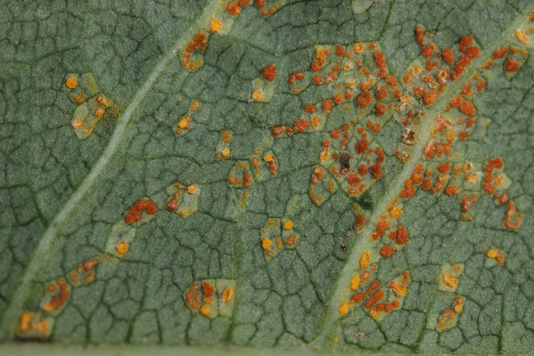 4. Eigentlich gilt ja: Rose, Pappel, Weide, meide! Aber andererseits gilt halt auch: Ist die Pappel schwarz, macht das Schüsseln Spaß! Melampsora laricis-populina ex Populus cf. nigra