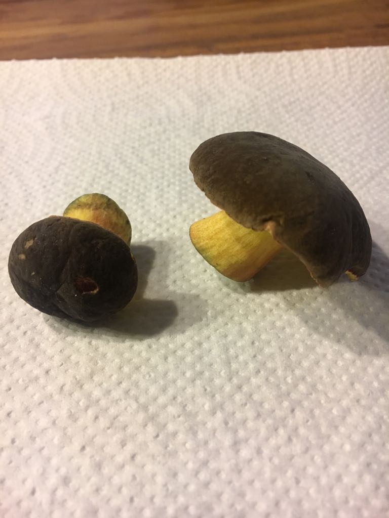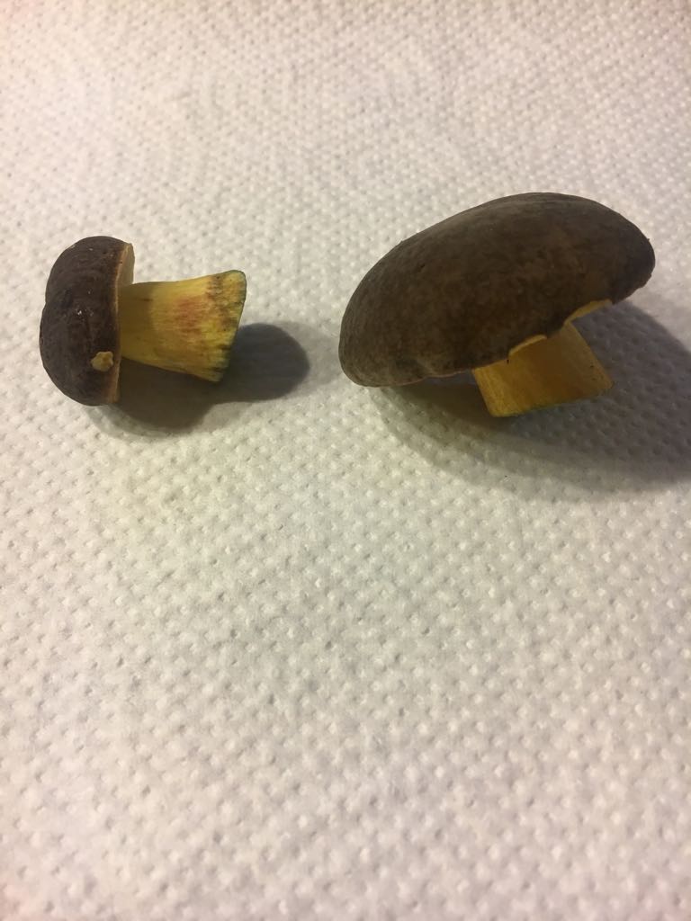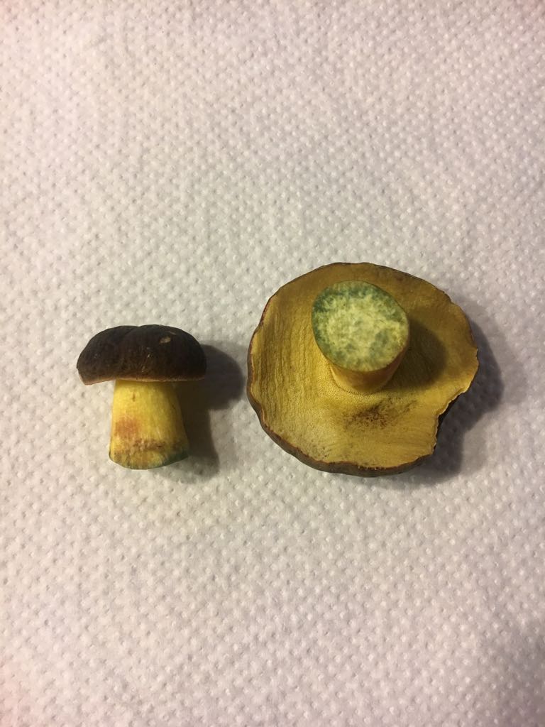 ich finde in letzter Zeit sehr sehr oft diesen Pilz in Nadelwäldern. Er sieht ein bisschen aus wie ein Rotfussröhrling aber ist komplett gelb am Stiel und auch das Fleisch selbst. Der Hut ist oben deutlich dunkler als beim Rotfuss. Bei älteren Pilzen ist der untere Ansatz des Stiels häufig leicht gerötet. Der Steil bläut beim Anschnitt wie auf den Bildern zu sehen. Den Geruch würde ich als nicht unangenehm und pilzig bezeichnen. Mir kam der nur die letzten 30 Jahre nicht unter, deshalb würde es mich schon interessieren. Es gibt ihn zur Zeit Massenhaft bei uns.