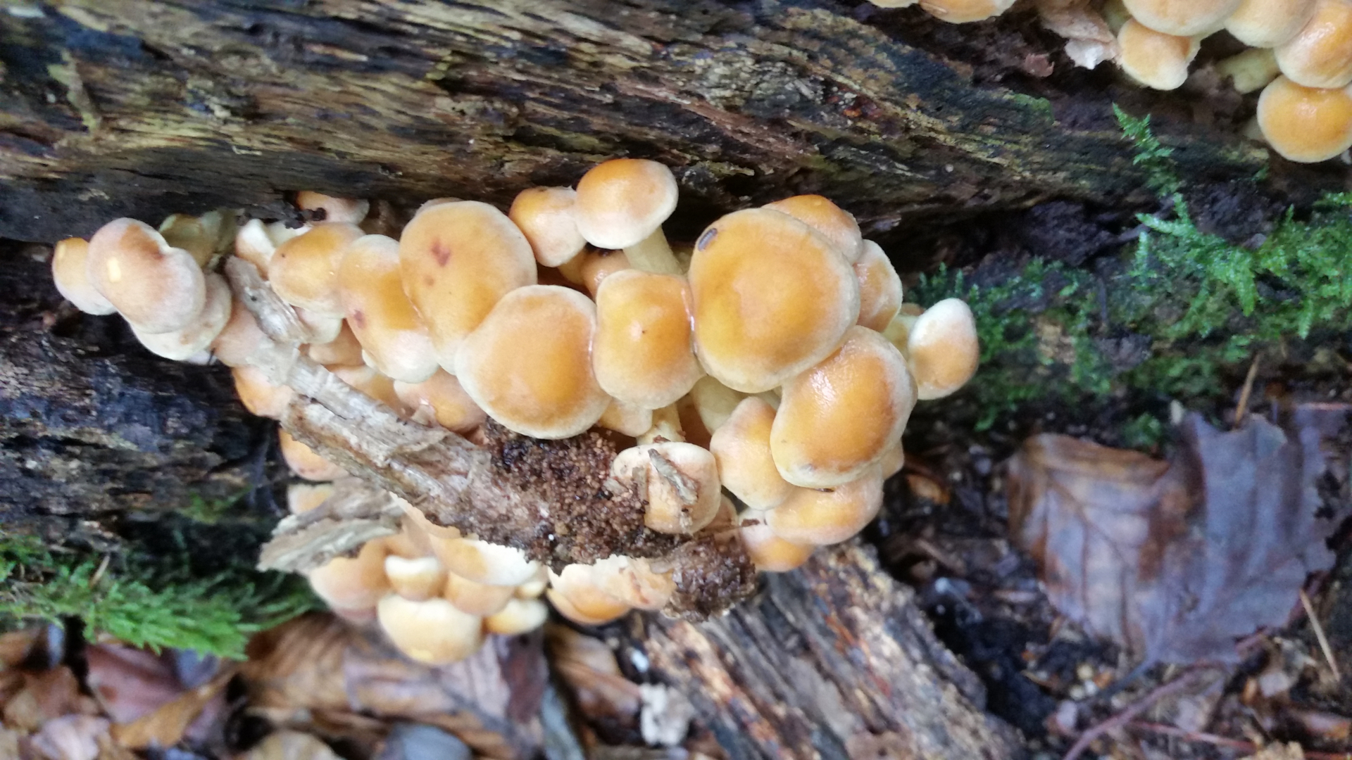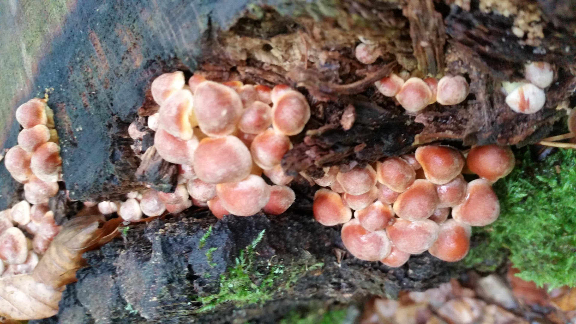 Nachdem ich dann in den Buchenwald weiter gegangen bin, gab es dann nur nur sehr spärlich Pilze. Einzig Schwefelköpfe gab es in Massen. Hier glaube ich sogar den ziegelroten und grünblättrigen auf einem Baumstumpf?