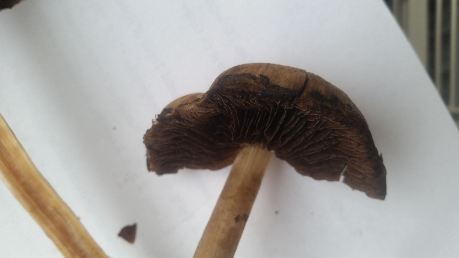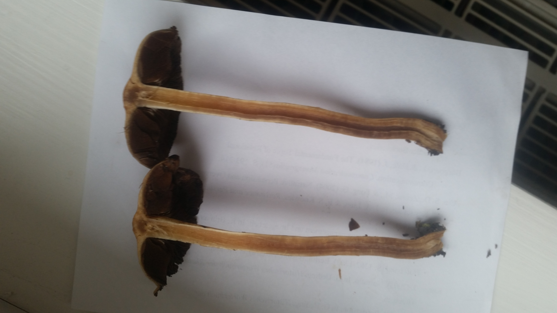 Angenehmer und intensiver pilziger Geruch. Dunkle, silbrig glänzende und freistehende Lamellen. Langer hohler Stiel.