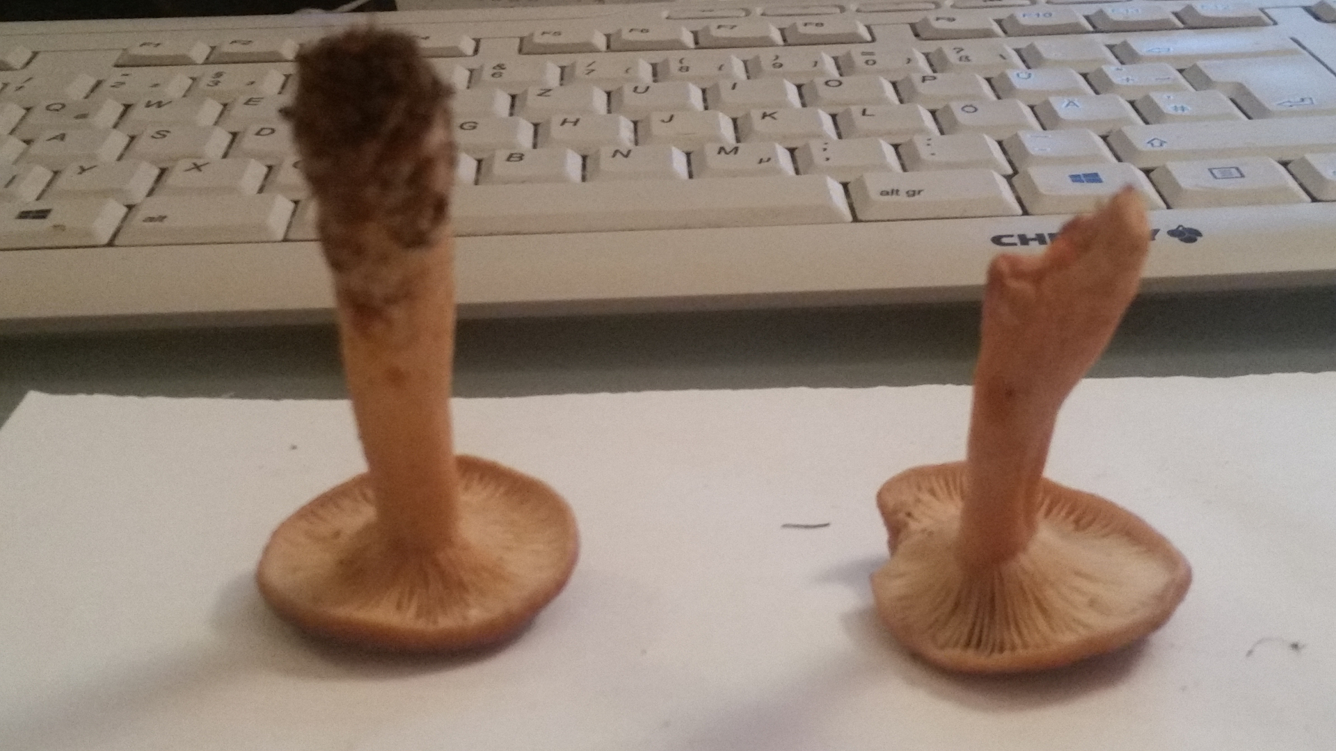 Der weiße, aber sehr rauhe und schuppige Stiel haben mich irritiert. Ein ungewöhnlicher Birkenpilz oder doch eine Marone?