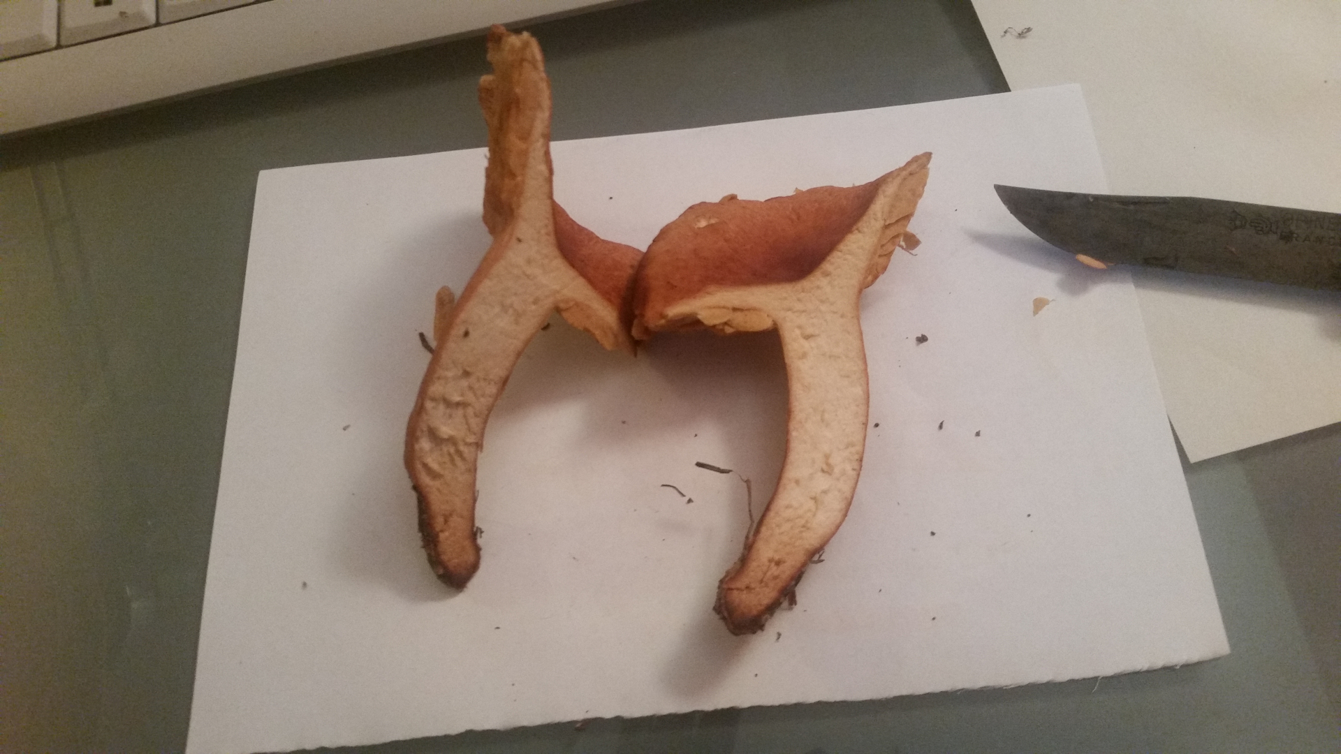 Beim anschnitt blieben Stiel und Hut weiß, nur bei der Knolle zeigte sich ein winziger blauer Fleck.