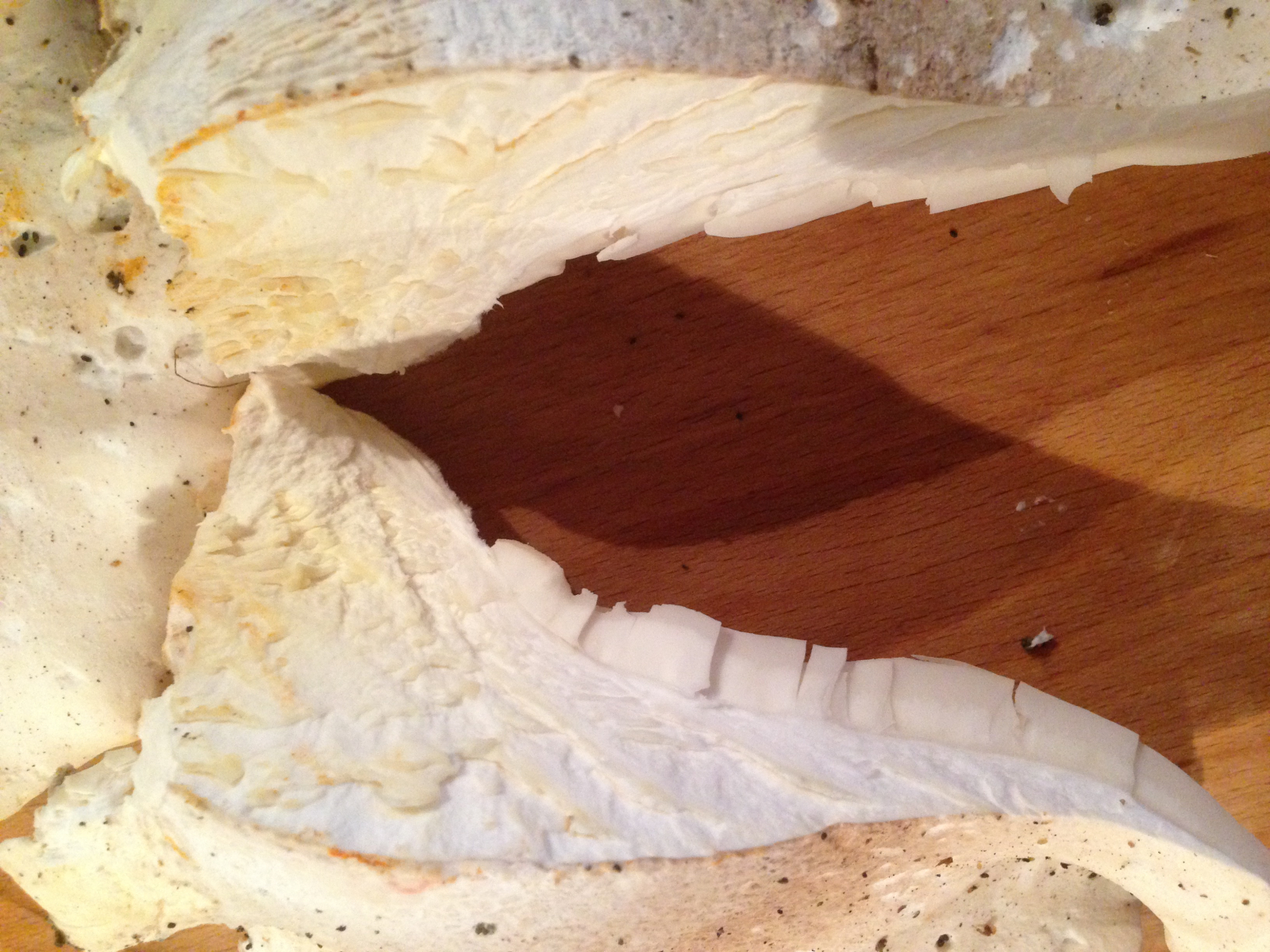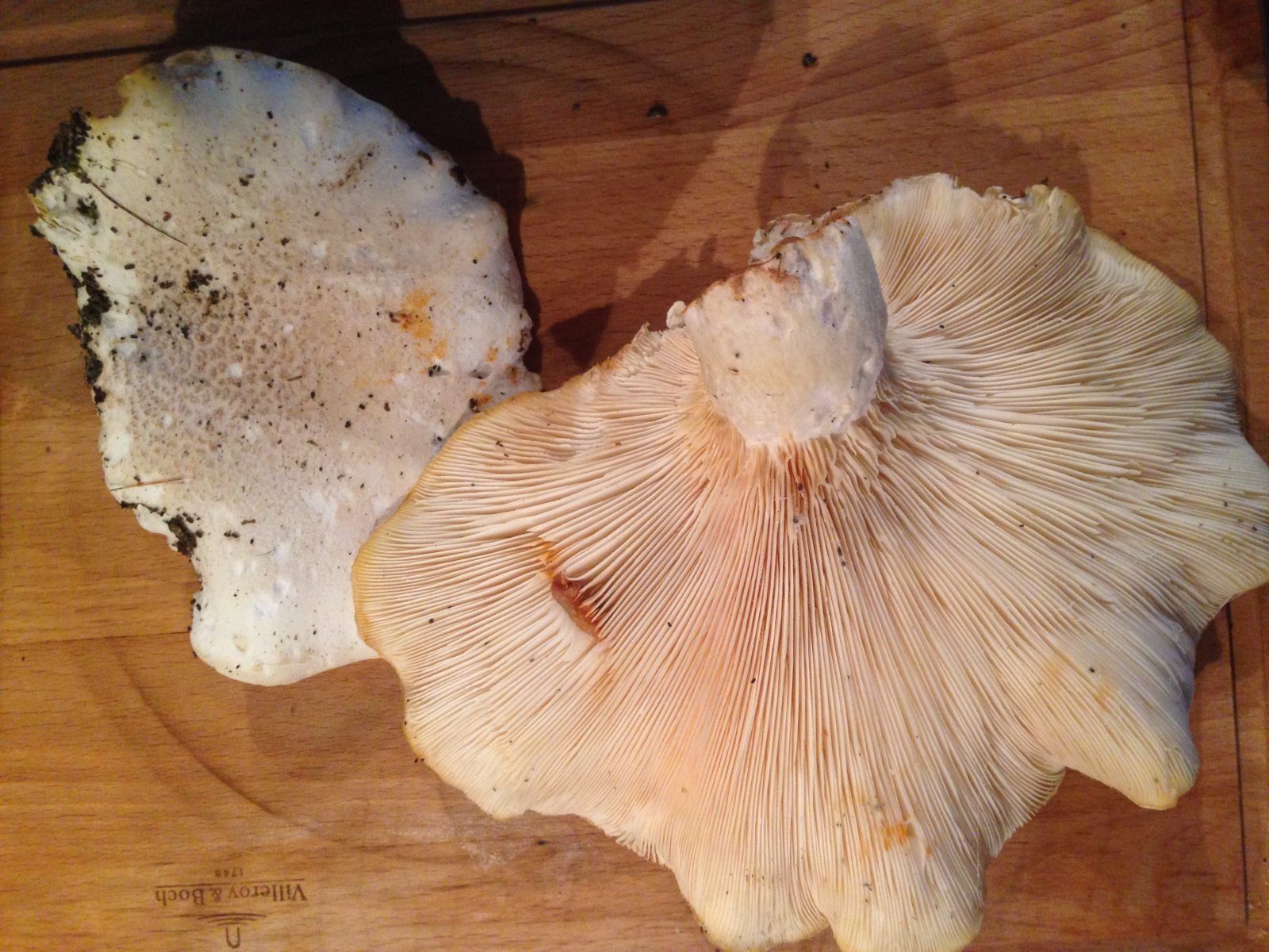 also von der Gesamtoptik würde mir der Berindete Seitling Pleurotus dryinus am besten gefallen. Mich lässt nur der Anisgeruch an dem Zweifeln. Der Ohrförmige ist das keinesfalls. Der hat so gut wie keinen Stiel und ist sehr sünnfeischig...