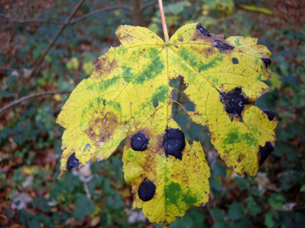 Im Volksmund bezeichnet man sie als Teerfleck-Krankheit. Ein Pilzbefall der insbesondere an den Blättern von Ahornarten zu beobachten ist und zum Teil die Bäume schwächt. Im Spätsommer und Herbst ist dieser Pilz überall in unserem Raum zu beobachten. Es scheint zwei Arten bei uns zu geben. "Rhytisma acerinum" scheint die Art zu sein, die mehrere Ahornarten besiedelt und wohl die häufigere Species ist. "Rhytisma punctatum" scheint selten zu sein, hat kleinere Punkte und kommt wohl nur auf Bergahorn vor. Bei meinem Bild scheint es sich wohl um "Rhytisma acerinum" zu handeln. Was meint ihr?