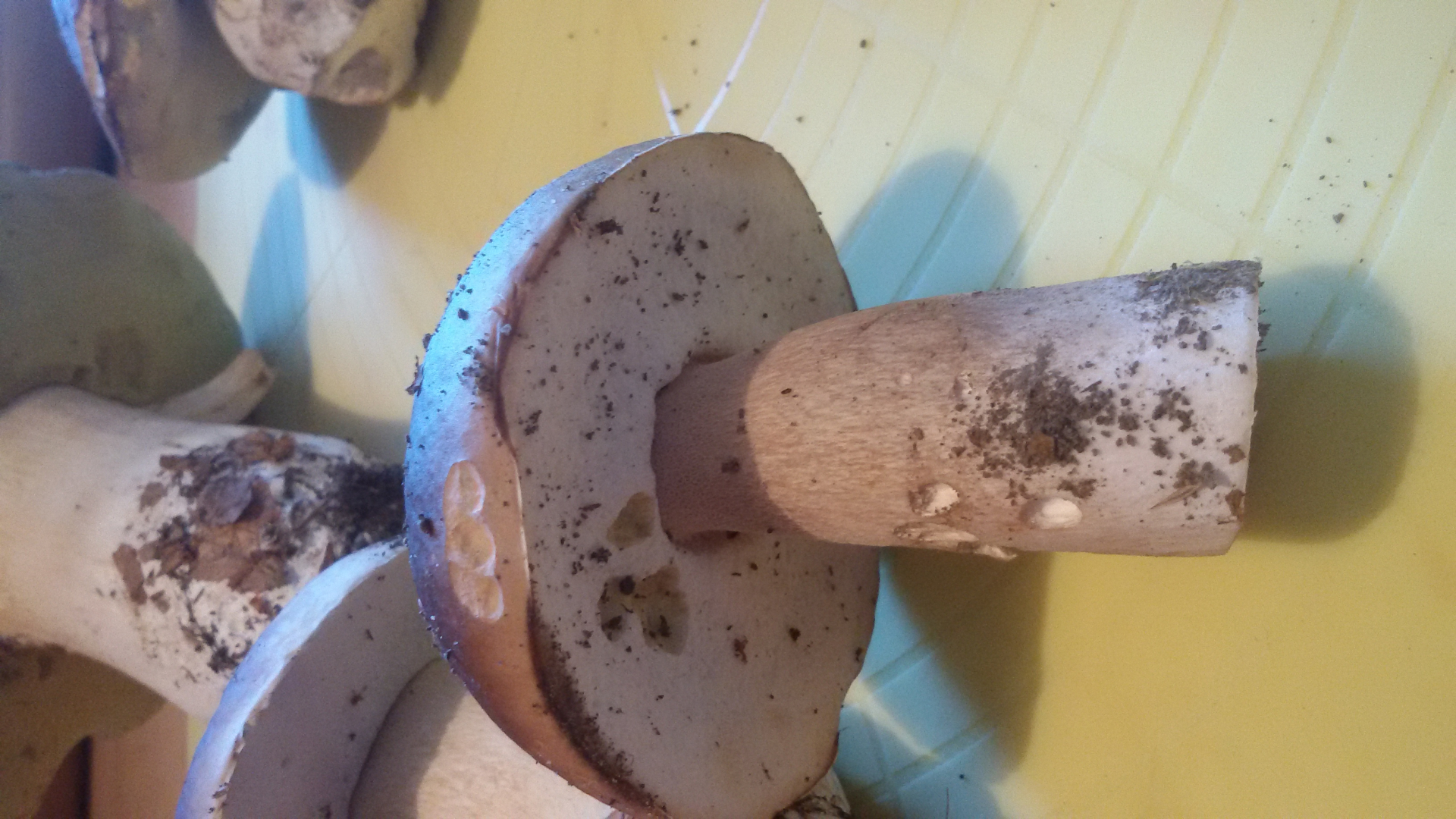 Haben einen Haufen von diesen Pilzen (siehe Bilder) gefunden, alle haben ein festes, gut riechendes Fleisch. Es verfärbt sich nicht beim anschneiden oder bei Druck. Auch kein bitterer oder scharfer Geschmack.