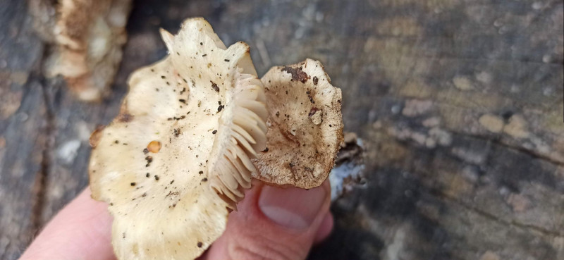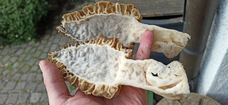 ich könnt mir M. inclinata vorstellen. Dann wär das ein alter Eichenstumpf. Der würd zwar nicht nach Nitrat riechen, müsste aber einen deutlich wahrnehmbaren süßlich-chemischen Geruch haben. Inclinatageruch eben. Typisch wär der zweifabige Stiel und auch das rostige Flecken im Alter. Aber nur von den Fotos her schwer einzuschätzen.