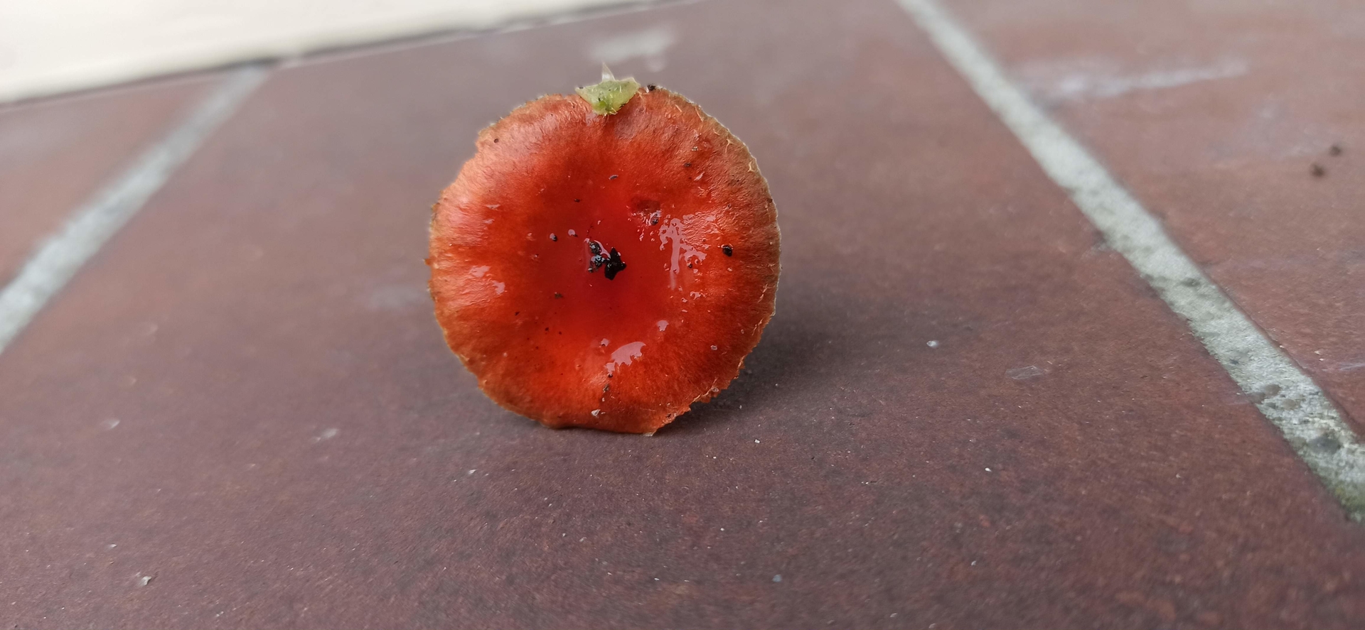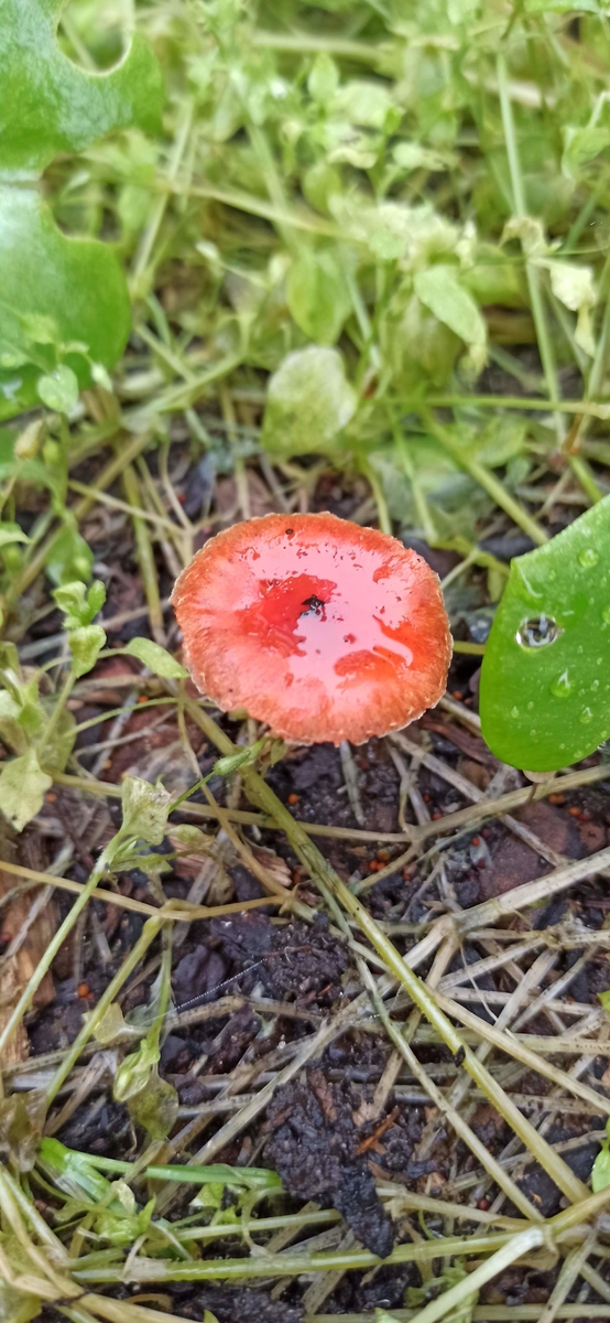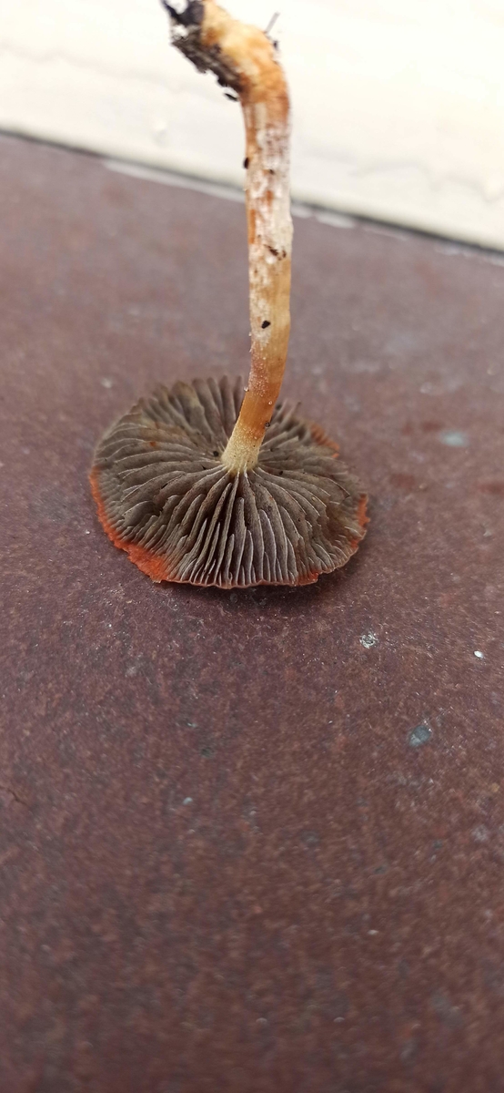 Habe ich hier einen orange roten Träsch Ling gefunden? Sporen dunkel lila, schleimig er Hut, Stiel orange, Fundort Garten/Blumenbeet.Lg Wastl
