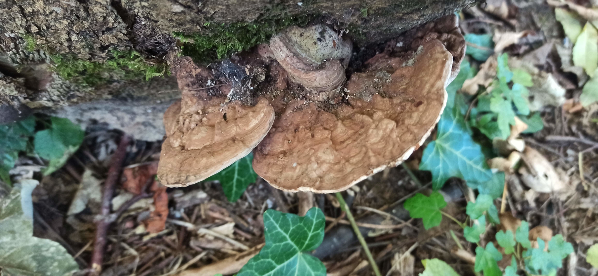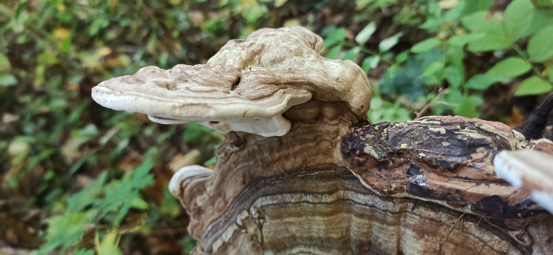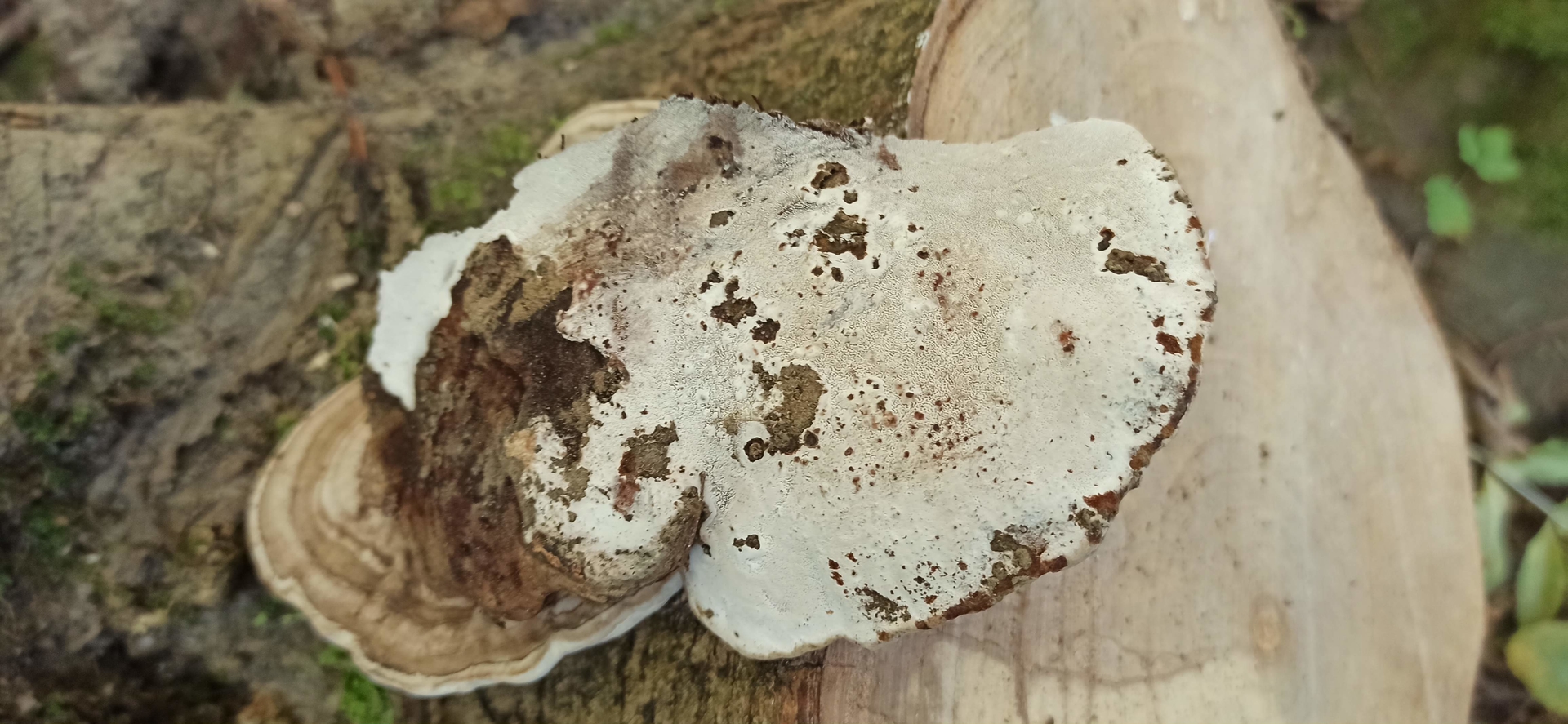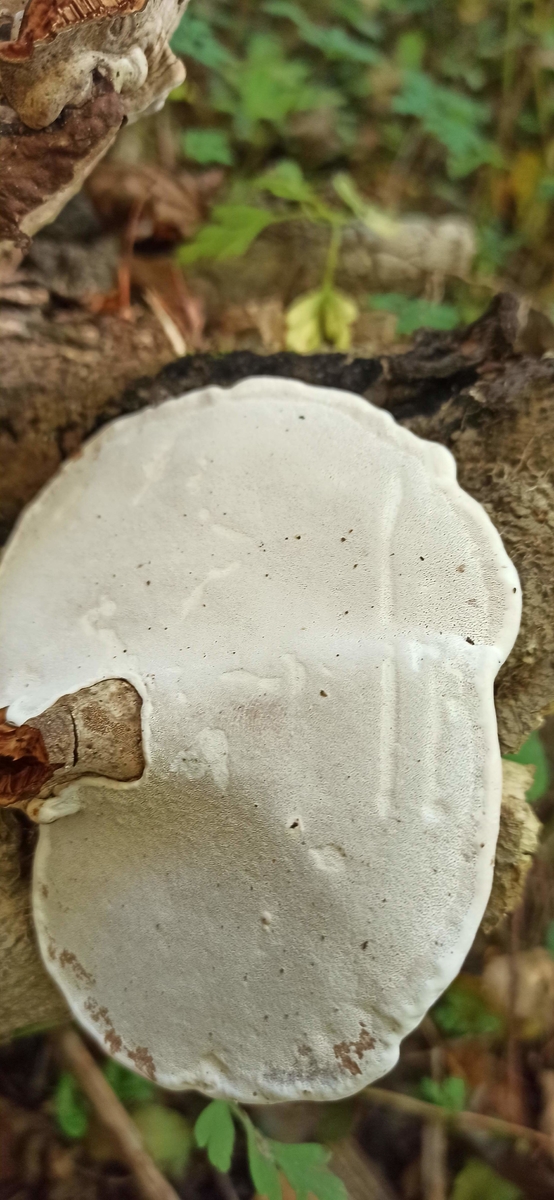 Hab ich da junge Fruchtkörper des Riesenporlings gefunden? Haben schon schwarze Stellen. Fundort Buchen stumpf. LG
