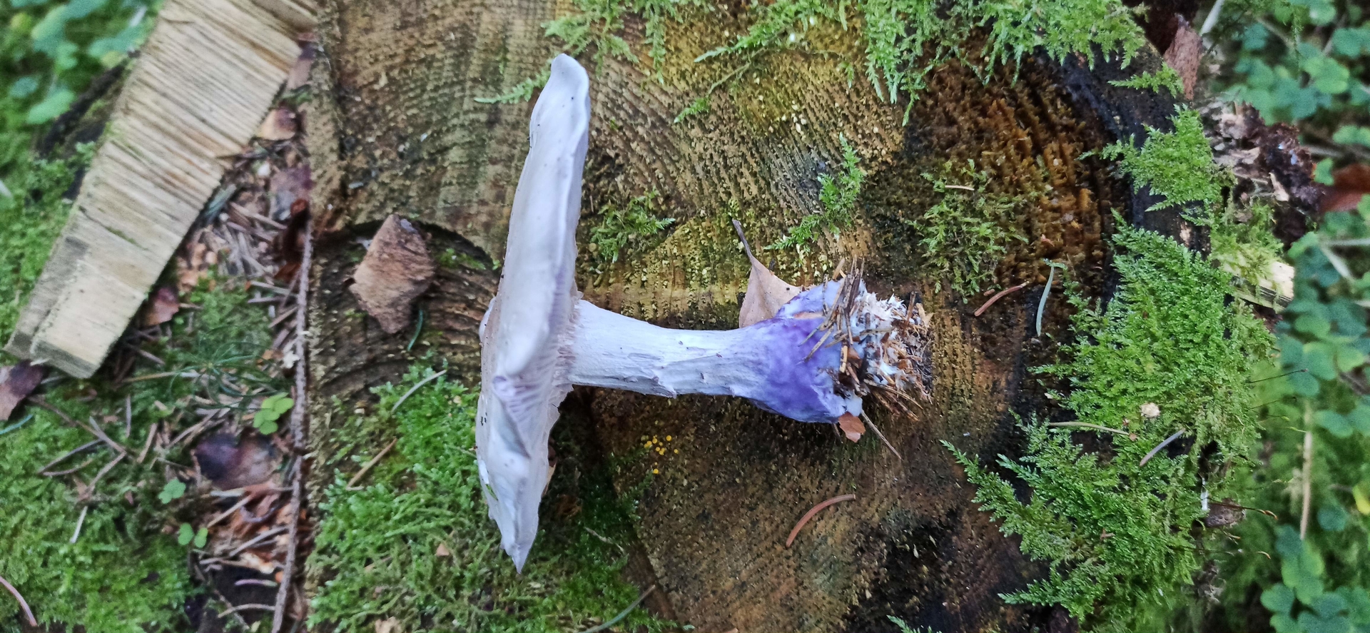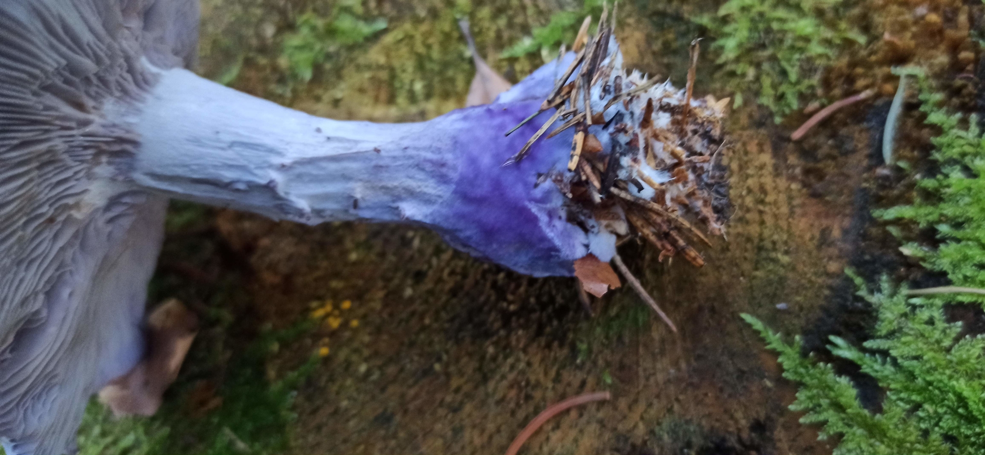Dann einen schönen violetten Rötelritterling mit schoenvioletter Stielbasis. Liegt das daran, dass die nicht viel Sonne abbekommen? Oder hat die jemand vorher in Tinte getunkt? LG