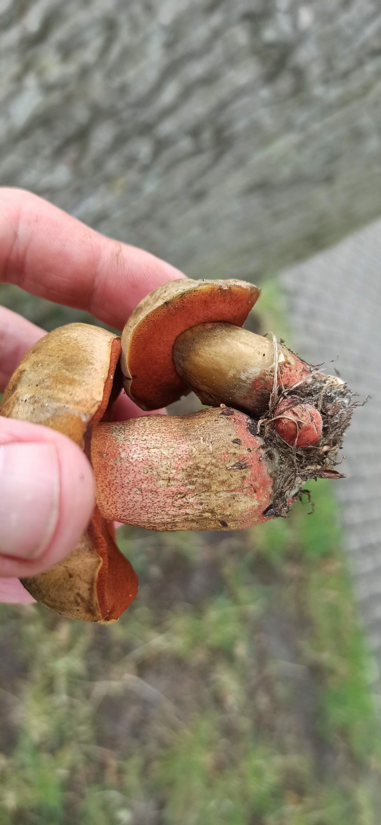 Habe in Oldenburg unter Eiche Netzstielige gefunden. Der braune Stiel irritiert mich etwas. Sind das Netzstielige Hexenroehrlinge? Man koennte auch ein Bereich mit Flocken ausmachen. Blauen etwas langsam. Regentropfen auf dem Hut. Lg Wastl