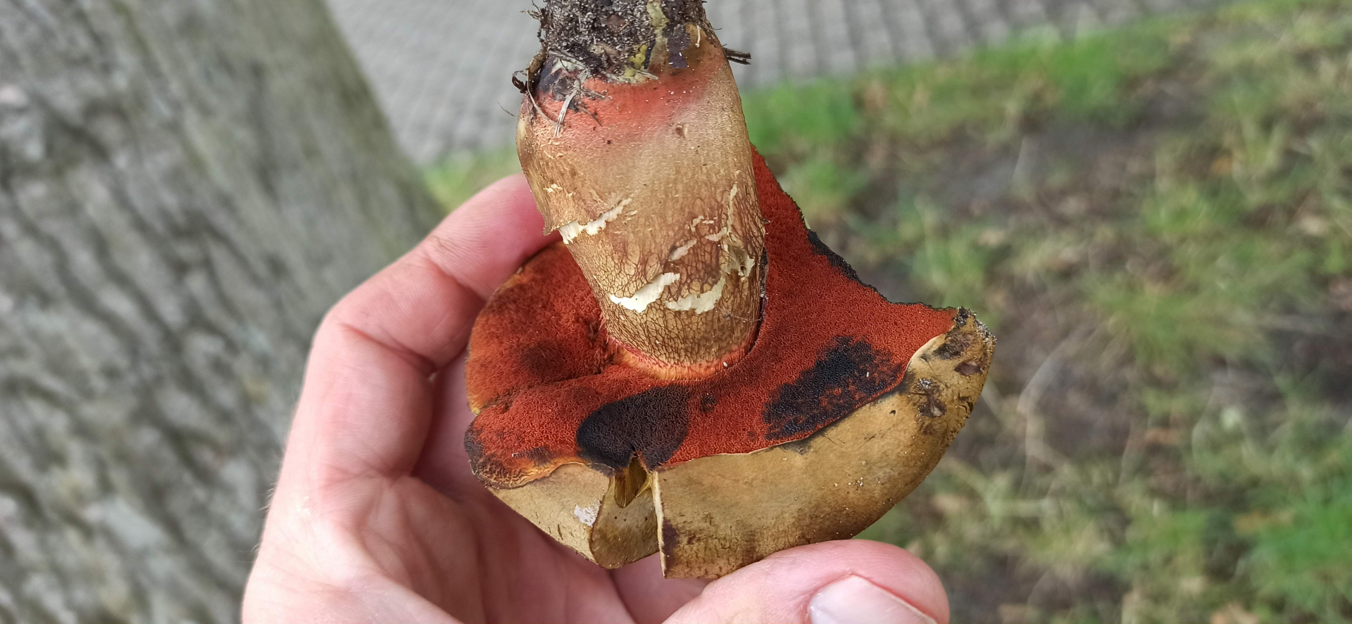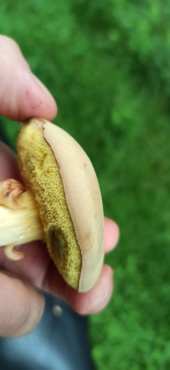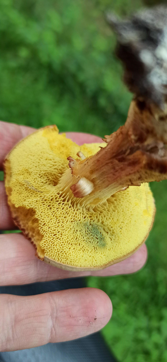 Habe heute im Mischwald einen Röhrling gefunden. Ich dachte an die Ziegenlippe, aber die Röhren strahlen nicht so wie sie sollten, oder? Viele Eichen rundherum, Birken und Kiefer auch dabei. Samerrott/Niedersachsen