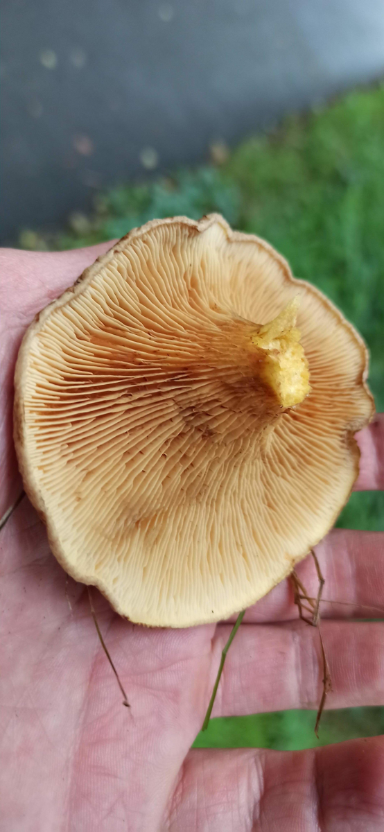 Auf dem Rad im Samerrott ist mir am Wegesrand ein gelber, beschuppter Pilz aufgefallen, der Rückseitig wie ein Krempling aussah. Denkt ihr auch an den ErlenKrempling? Geruch nicht auszumachen. An der Stiel Bruchstelle war er deutlich gelber als an der Stiel Oberfläche. Lg Wastl