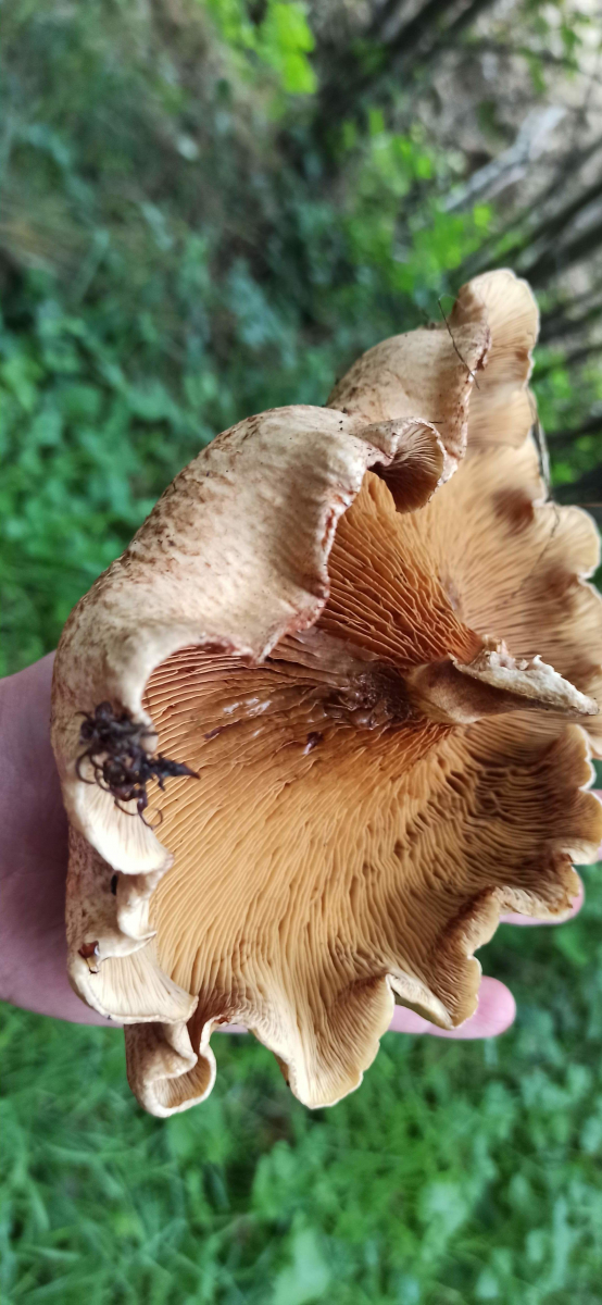 Wieder Samerrott: am Wegesrand vom Laubwald denke ich Braune Rasling entdeckt zu haben. Was meint Ihr? Sporenpulver weiß, Stiel-Spitze weiß (denke von Sporen), laengsfaserig, Hut dünn, Haut leicht knorpelig, lasst sich tortenstückartig fast bis Mitte abziehen. Büschel IG wachsend, gerne mit Schleimschneckenbehang. Liege ich richtig? Lg