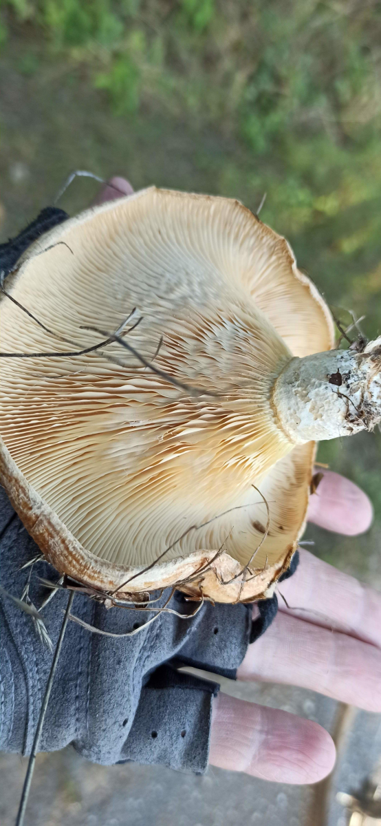 Ich habe heute in Veldhausen unter Eichen auf der Wiese einen Seidigen Egerlingsschirmling gefunden, oder? Riecht lecker und ich meine eine sehr feine Gilbung ausfindig zu machen. Sporen wirft er gerade ab. Und ein Stadtegerling war nicht mit dabei. Was koennte das sein?