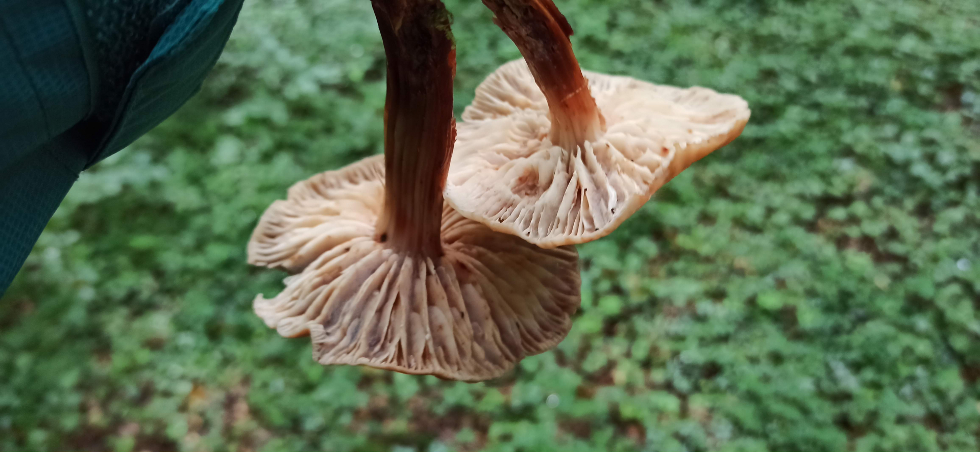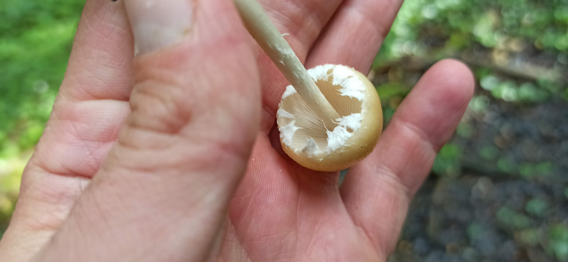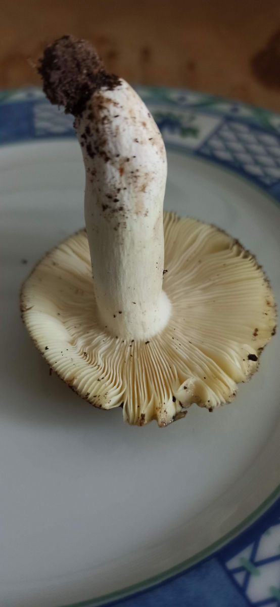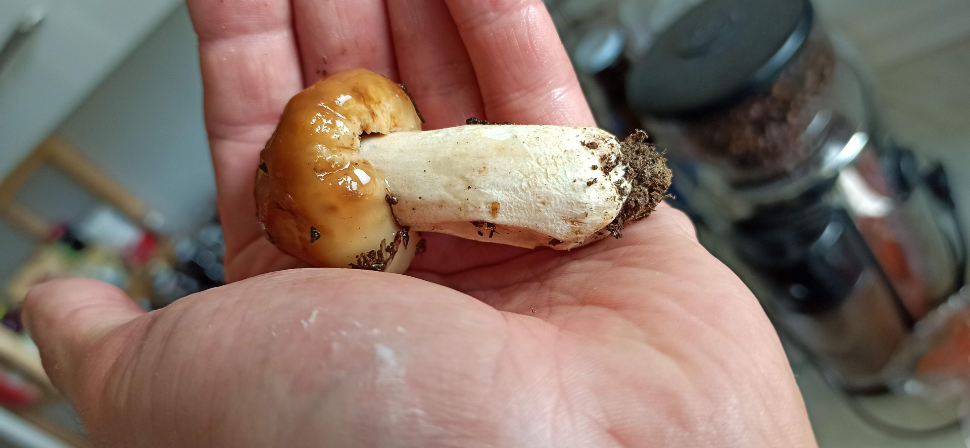 Ich war gerade im Fichtenwald mit vereinzeltem Laub. Neben meinem ersten Parasol dieses Jahr habe ich Taeublinge gefunden, die sich gerade aus dem Erdreich schuben. Die Huthaut erinnerte mich bei dem düsteren Regenwetter an Amanita phalloides. Bei genauerer Betrachtung hatte er auch rötliche Flecken am Stiel. Also ein Hauch. Milder Geschmack, leicht abziehbare Huthaut, wattig voller Stiel. Geruch ganz mild Obst artig, pilzig. Ich denke an violettstieligen Pfirsich Taeubling. Sporen Abwurf findet gerade neben meinemVollkornbrot (Weizen Vollkornbrot, Sauerteig, self made) in der Küche statt. Was denkt ihr? LG