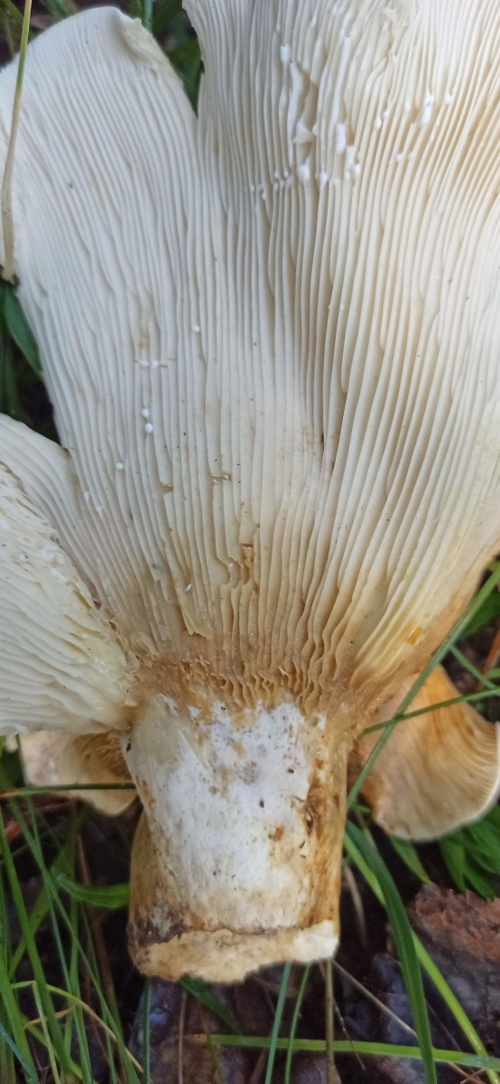 Der Milchling könnte etwas aus der Gruppe Pfeffermilchling/Wolliger Milchling sein. Verfärbt sich die Milch nach einiger Zeit?