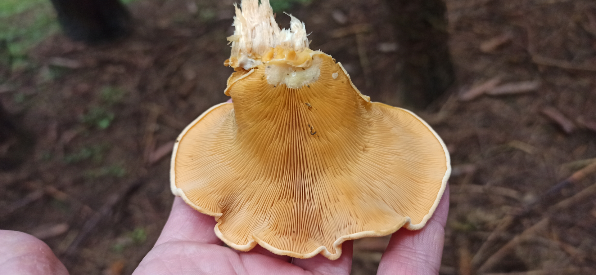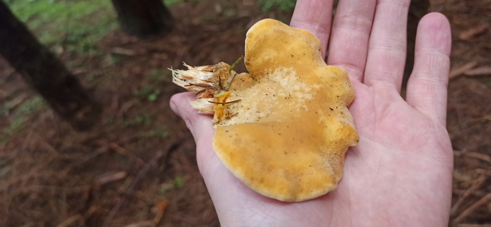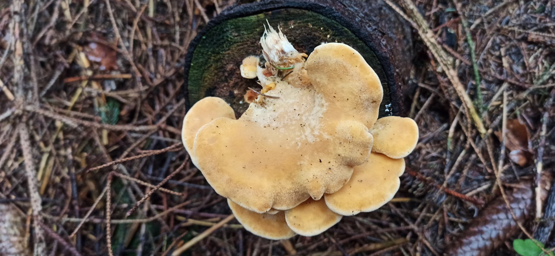 Habe ich heute einen blassen orangenseitling auf Nadelholz gefunden? LG Wastl