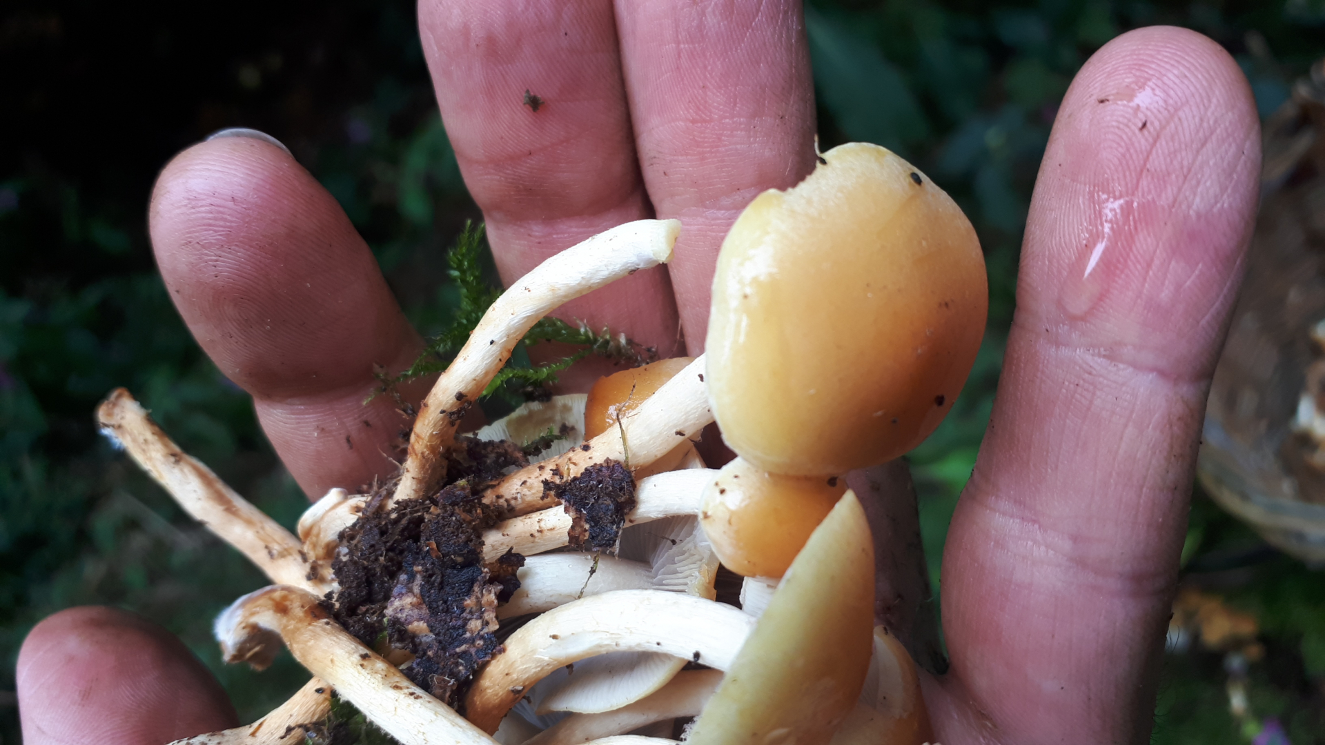 Ob die andere Hälfte der Fruchtkörper auch dazu passt, kann ich aber nicht beurteilen, denn auf den Bildern ist ja nur die eine Hälfte der Pilze zu sehen.
