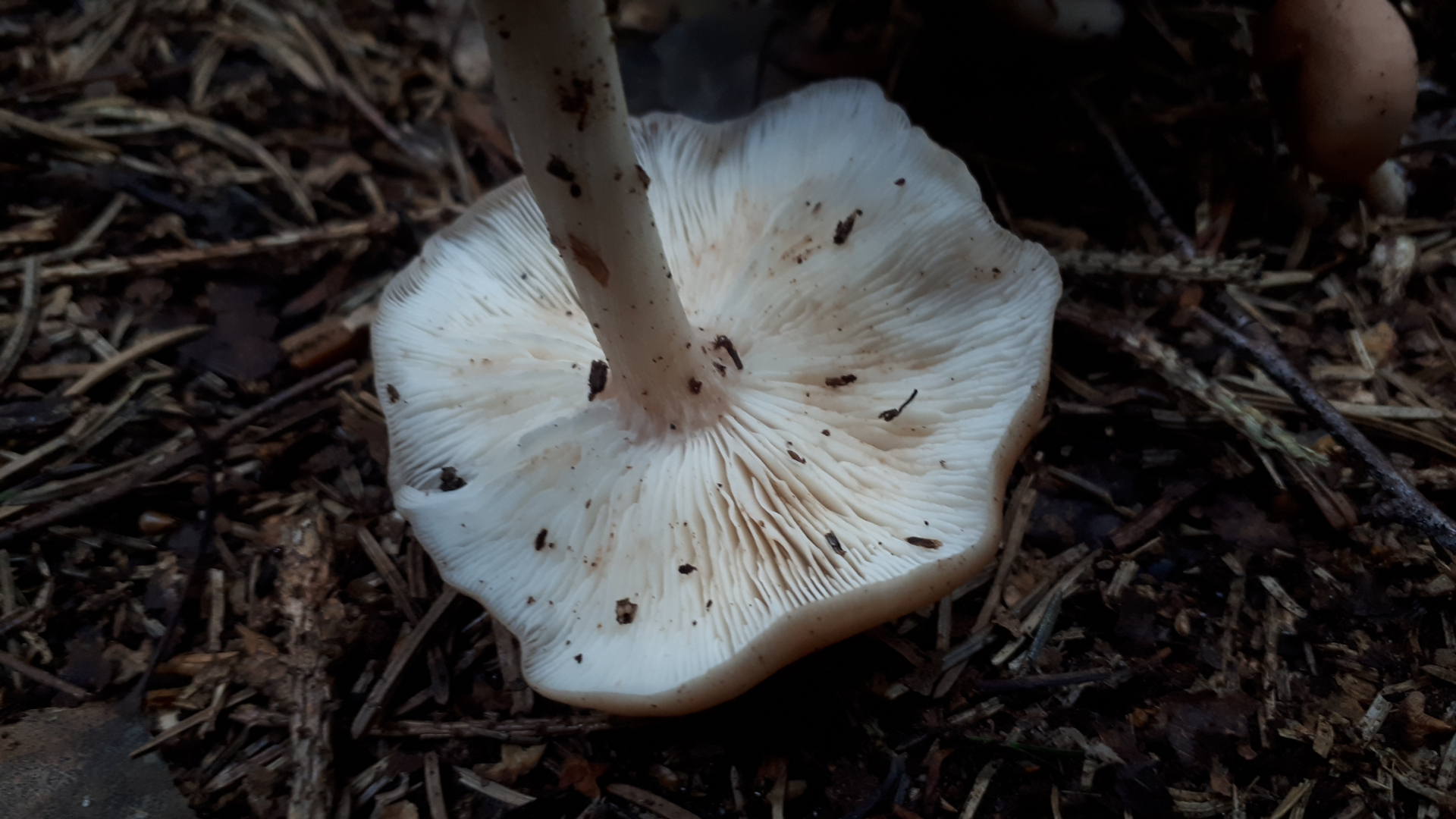 fundort Fichte, Wuchs in Reihe, nahezu in Massen, lamellen weiß. Lg