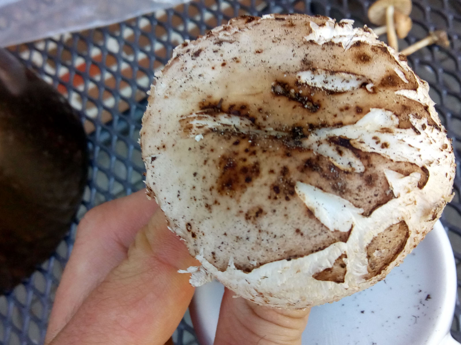 Kurz zum Geruch: Nein, "muffig, unangenehm" ist kein charakteristisches merkmal von Chlorophyllum brunneum.