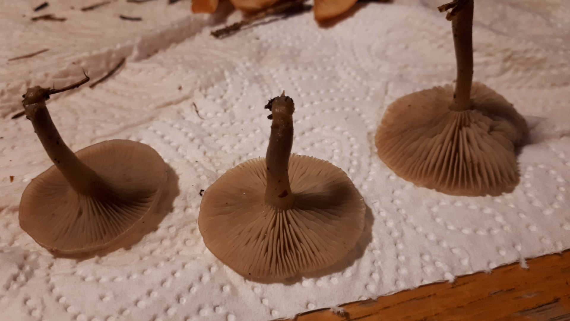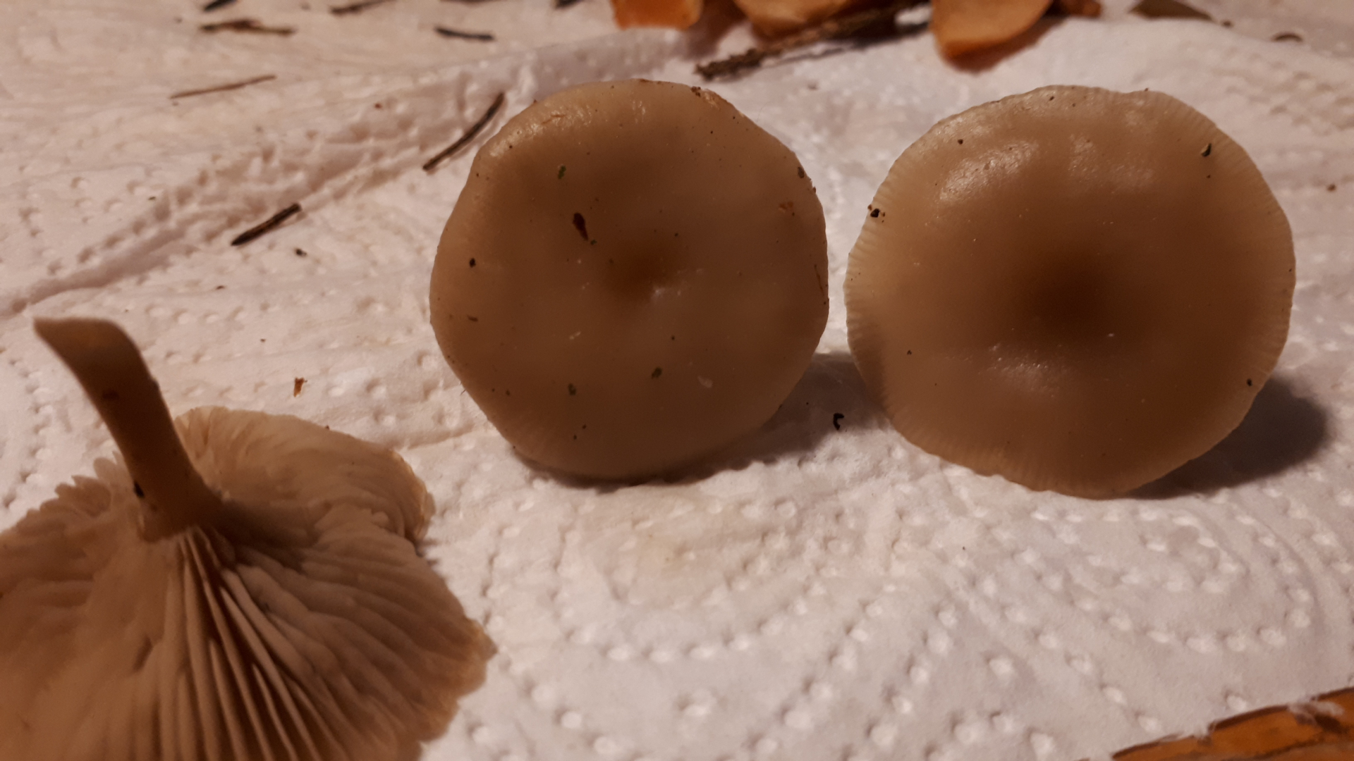 hi! Ich war ja aif der Suche nach Winterpilzen und habe diesen hier gefunden. Ich denke ein Trichterling... Farbe zwischen grau und braun... geruch säuerlich... Fundort Fichtenwald. Stil hohl, faserig. Lamellen herablaufend, gegabelt. Lg